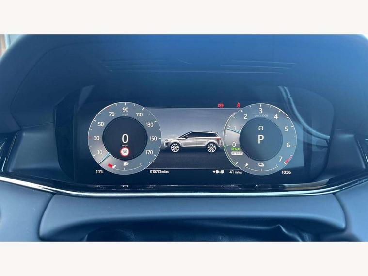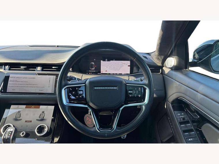 10" deployable touchscreen with lower touchscreen, Adaptive cruise control, Android Auto, Apple car play, Blind spot assist, Bluetooth connectivity, Brake pad wear indicator warning light, Driver condition monitor, eCall emergency system, Electronic power assisted steering (EPAS), Front and rear parking aid, InControl remote, Land Rover InControl apps, Lane keep assist, Pivi pro connected includes upgraded infotainment, connected navigation pro, Nuance speech licence, Powered gesture tailgate/boot lid, Push button starter, Rear collision monitor, Rear traffic monitor, Traffic sign recognition with adaptive speed limiter, Voice control system, 7 kW onboard charger, All terrain progress control, Configurable dynamics, Electric rear axle drive, Home charging cable, Large fuel tank, Passive suspension, Public charging cable, Terrain Response 2 Auto, Digital Audio Broadcast radio-DAB, Meridian surround sound system with 650W subwoofer and 14 speakers, Steering wheel mounted controls, Auto headlights, Autobiography badge, Automatic headlight levelling, ClearSight interior rear view mirror, Electric windows with one touch open/close and anti trap, Evoque and R-Dynamic badge, Flush deployable exterior door handles, Heated rear window with timer, Heated washer jets, Heated windscreen, Matrix LED headlights with signature DRL, intelligent high beam assist, signature Hi-Line tail lights and animated directional indicators, Power fold, auto-dimming, heated door mirrors with approach lights and auto dimming driver side, R-Dynamic branding illuminated metal tread plates in loadspace and row 1 with brand name script and non illuminated metal in row 2, Rain sensing windscreen wipers, Rear fog lights, Rear side wing doors, Rear wiper, Tailgate spoiler, Third brake light, 14 way electric heated/cooled front and rear seats with driver memory, 2 way man headrest, electric 4 way lumbar support, bolsters + headrest adj, 40:20:40 split folding rear seats with centre headrest and armrest, Ambient interior lighting, Bright metal pedals, Electrically adjustable steering column with memory function and easy entry/exit, Full extended leather upgrade, Heated steering wheel, Isofix system on outer rear seats, Overhead lighting console, Overhead stowage for sunglasses, Passive front head restraints, Perforated full leather steering wheel, Premium cabin lighting, Premium carpet mats, Rear air vents, Rear centre headrest, Rear head restraints, Satin chrome gearshift paddles, Single passenger seat, Sunvisors with illuminated vanity mirrors, Twin sliding front centre armrest, 3 rear 3 point seatbelts, Anti-lock braking system (ABS), Customer configurable autolock, DSC - Dynamic Stability Control, Electronic brake force distribution, Electronic parking brake, Electronic traction control, Emergency braking, Front and rear seatbelt reminder, Hill descent control, Hill launch assist, Low traction launch, Power operated child locks, Red brake calipers, Roll stability control, Six airbags - Driver and passenger airbags/driver knee airbag/front side airbag and curtain airbags, Torque vectoring brake, Tyre pressure monitoring system, Alarm, Immobiliser, Intrusion sensor, Keyless entry, Locking wheel nuts,
