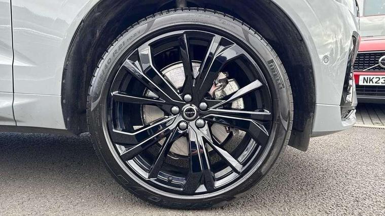 11.2" centre console touch screen, 12.3" Progressive Driver Display, 360 degree surround view parking camera with side proximity sensors, Adaptive cruise control, Adjustable steering wheel force, Android auto (Wired), Apple carplay (wired), Bluetooth handsfree system, Driver alert control with lane keeping aid, Emergency services call system, Front and rear park assist, Google Automotive Services, Intelligent speed assistance, Oncoming Lane Mitigation, PAS, Power operated tailgate with handsfree opening and closing, Service interval indicator, Speed limiter, Speed sensitive steering, Trip computer, Volvo cars services with app, Volvo on call with App, Wireless/Inductive Mobile Phone Charging, 8 speed automatic transmission with start/stop + manual change functions, DAB Digital radio, Premium Sound by Harman Kardon, dirac unison, dolby pro logic II surround sound, 13 speakers/600W output and fresh air subwoofer, Steering wheel remote infotainment controls, Adaptive brake lights with high level LED brake lights, Auto dimming interior + exterior mirrors, Automatic headlight levelling system, Automatic LED Headlights + Active high beam incorporating daytime running lights, Dark tinted windows for rear side windows and cargo area, Electric adjustable/heated/auto power folding door mirrors, Electric front+rear windows, Front aluminium tread plates, Heated front windscreen, High gloss black door mirrors and window surround, High gloss black front and rear bumper decoratives, High gloss black front grille, Surround, Strikethrough and Ironmark, High gloss black rear model, engine and volvo logo badges, Home safe and approach lighting, Integrated roof rails in high gloss black, Puddle lights, Rain sensor with automatic windscreen wiper activation, Rear side wing doors, Rear wiper, Roof antenna, Roof spoiler, Tinted windscreen, Visible VIN plate, 12V socket in front tunnel console and luggage compartment, 3 seat bench in 2nd row, 3 Spoke tailored steering wheel with chrome trim, 4 Zone electronic climate control, A-pillar parking ticket holder, Air purifier particulate matter (PM) 2.5 filter, B Pillar ventilation, Bright metal luggage scuff plate, Centre console cupholders and storage, Charcoal floor mats, Contour sports seats with nappa soft leather/textile upholstery, Front and rear courtesy lights, Front and rear door pocket illumination, Front cupholder illumination, Front footwell illumination, Front reading lights, Front seat cushion extensions, Glovebox compartment with illumination, Head restraints for all seats, Heated front seats, Heated steering wheel, Height/reach adjustable steering column, Illuminated luggage compartment, Illuminated vanity mirrors + ticket holder, Inner door release handle illumination, ISOFIX attachment on outer rear seats, Load cover, Load protection net, Multi directional lumbar support, Power driver seat with memory + exterior mirrors memory, Power height adjustable passenger seat, Power passenger seat with memory, Rear armrest with cupholder, Rear footwell and front and rear side step illumination, Rear reading lights, Rear seat concealed storage, Single front passenger seat, Tailgate illumination and ambient door lighting, Underfloor stowage compartment, Versatile split folding rear seat - 60/40, Driver assist pack without Adaptive cruise control - XC60, 5 three point seatbelts, City safety with steering support with Pedestrian + cyclist + front collision warning with full auto brake and rear auto brake, Drivers knee airbag, Dual stage driver/passenger airbags, Electronic parking brake with auto hold, First aid kit, Front seats SIPS airbags, Hill descent control - Off-road drive mode, Hill start assist, IC (Inflatable Curtains) - Full Length, Passenger airbag cut-off device, Power child locks on rear doors, Road sign information display, Run off Road Mitigation, Run off Road Protection, Seatbelt reminder and pretensioners, SIPS (Side Impact Protection System), Slippery road and hazard light alert, Stability and Traction Control with Spin control, Engine Drag Control and Corner Traction Control, Tyre pressure monitoring system, Vehicle deceleration control with Anti-lock Brake System, Electronic Brake Distribution and Emergency Brake Assist, Warning triangle, WHIPS whiplash protection system - front, Anti-theft alarm including immobiliser/volume sensor + level sensor, Key integrated remote control central locking + fuel flap with deadlocking system and auto open/close power windows, Keyless Drive (includes Keyless Entry and Keyless Start), Locking wheel nuts, Private locking for tailgate, 21" 5 Double spoke high gloss black alloy wheels, Summer tyres,