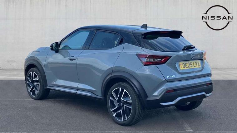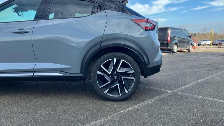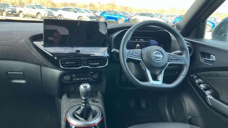12.3" full colour TFT screen combimeter, Drive modes select (Eco, normal and sport), Emergency and breakdown call, Front parking sensor, Idle start/stop system, Intelligent driver alert system, Intelligent lane intervention, Lane departure warning system, Nissan connect 12.3" touch screen entertainment system, Nissan connect nav with TomTom traffic, Nissan connect services, Outside temperature sensor, Power Steering, Rear parking sensor, Stop/start button, Traffic sign recognition, Trip computer, Voice recognition, WiFi connectivity, Wireless Apple CarPlay and Google Android auto, Wireless Smartphone charger, 10 Bose speakers 6 speakers and 2 headrest speakers for driver/passenger seats, 2 X Rear console USB port, Bluetooth system, USB, Aux-in and 12V socket, Bose personal sound stage control, DAB Digital radio, Auto dimming frameless rear view mirror, Automatic hazard signal with emergency stop signal, Body colour door handles, Electrically adjustable door mirrors with integrated indicators, Follow me home headlights, Front and rear electric window with one touch driver window, Heated and auto folding door mirrors, High beam assist, LED 3rd brake light, LED daytime running lights, LED front fog lights, LED headlamps, LED rear fog lamp, LED rear lamps, One touch passenger window, Rain sensor windscreen wipers, Rear privacy glass, Rear side wing doors, Rear wiper, Roof spoiler, Shark fin roof antenna in solid Black, Three blink turn signal, 3 height adjustable rear headrests, 3 seat bench in 2nd row, 60/40 split folding rear seat, Automatic climate control, Card holder on driver sunvisor, Door ambient lighting, Driver seat back pocket, Driver side rear coat hanger, Driver/passenger sunvisors and vanity mirrors, Front and rear cabin lights, Front armrest, Front door pockets with bottle holders, Front head restraints, Front/rear passenger grab handles, Gear console ambient circle lighting, Height adjustable driver's seat, Internal chrome door handles, Leather gearshift knob, Luggage board, Luggage space lighting, Monoform sporty seats, Multifunction steering wheel, Passenger seat back pocket, Rear door bottle holders, Single front passenger seat, Smooth synthetic leather steering wheel, Synthetic leather kneepad, Telescopic steering wheel adjustment, Two cupholders in front centre console, Two rear isofix child seat anchorage points with top tether, Welcome light and console tray ambient lighting, Advanced safety shield pack - Juke Manual, Heat pack with height adjustable passenger seats - Juke, Interior personalisation pack - Juke, Satin grey exterior personalisation pack - Juke, ABS with EBD and brake assist, Active ride control, Active Trace Control, Driver and passenger airbags, Driver and passenger side airbags, Electric handbrake with auto hold function, Electronic Stability Programme (ESP), Front and rear curtain airbags, Height adjustable seatbelts, Hill start assist, Intelligent emergency braking with pedestrian and cyclist recognition, Rear door child safety locks, Seatbelt reminder for driver/front passenger and rear seats, Three 3 point rear seatbelts, Traction control, Tyre pressure monitoring system, VDC Dynamic Vehicle Control, Alarm, Immobiliser, Intelligent key and start push button with walk away lock and approach unlock functions, Remote central locking, 19" Alloy wheels with deep 3D effect, Tyre puncture repair kit,