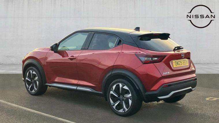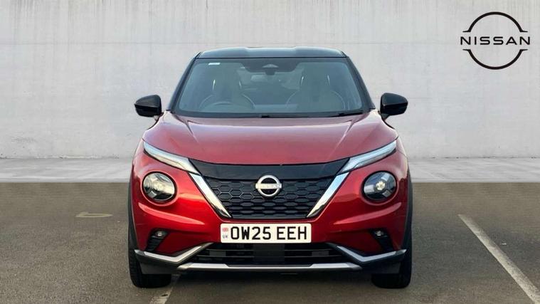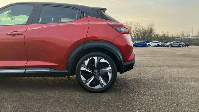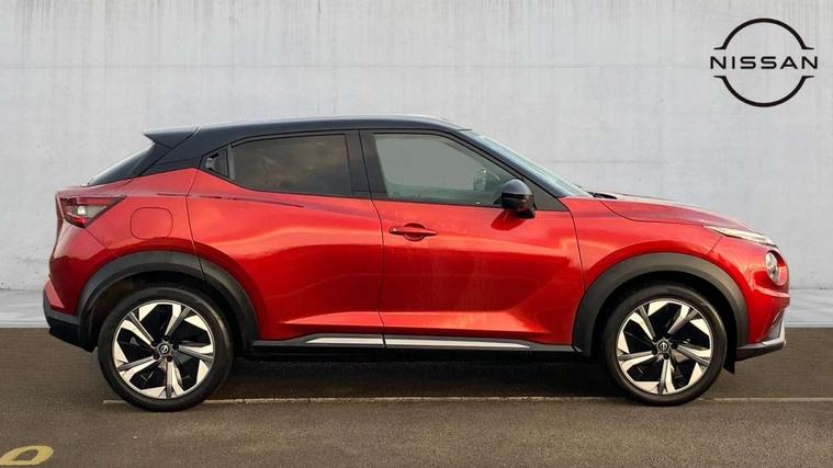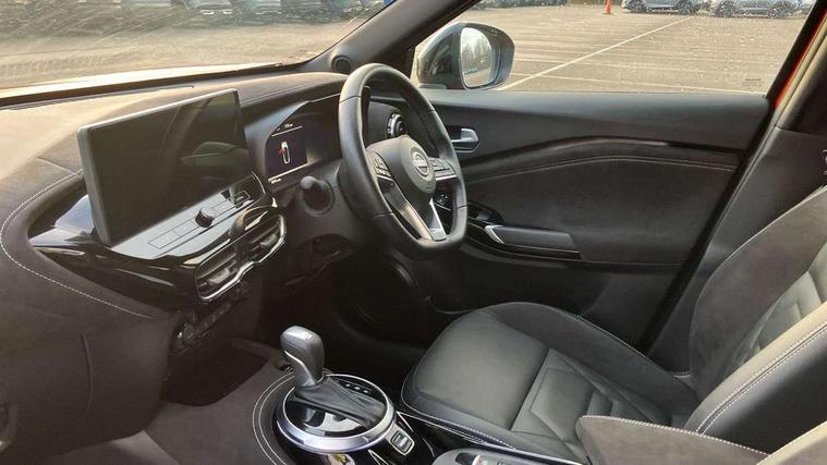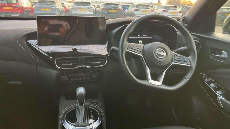 12.3" full colour TFT screen combimeter, Drive modes select (Eco, normal and sport), e-Pedal step, Emergency and breakdown call, EV mode switch, Front parking sensor, Intelligent driver alert system, Intelligent lane intervention, Lane departure warning system, Nissan connect 12.3" touch screen entertainment system, Nissan connect nav with TomTom traffic, Nissan connect services, Outside temperature sensor, Power Steering, Rear parking sensor, Stop/start button, Traffic sign recognition, Trip computer, Voice recognition, WiFi connectivity, Wireless Apple CarPlay and Google Android auto, Wireless Smartphone charger, 10 Bose speakers 8 speakers and 2 headrest speakers for driver/passenger seats, 2 X Rear console USB port, Bluetooth system, USB, Aux-in and 12V socket, Bose personal plus audio system, DAB Digital radio, Auto dimming frameless rear view mirror, Automatic hazard signal with emergency stop signal, Body colour door handles, Electrically adjustable door mirrors with integrated indicators, Follow me home headlights, Front and rear electric window with one touch driver window, High beam assist, LED 3rd brake light, LED daytime running lights, LED front fog lights, LED headlamps, LED rear fog lamp, LED rear lamps, One touch passenger window, Rear privacy glass, Rear side wing doors, Rear wiper, Roof spoiler, Shark fin roof antenna in solid Black, Solid black door mirrors, Solid black front bumper/rear bumper and side skirts inserts, Three blink turn signal, 3 height adjustable rear headrests, 3 seat bench in 2nd row, 60/40 split folding rear seat, Card holder on driver sunvisor, Door ambient lighting, Driver seat back pocket, Driver side rear coat hanger, Driver/passenger sunvisors and vanity mirrors, Front and rear cabin lights, Front armrest, Front door pockets with bottle holders, Front head restraints, Front/rear passenger grab handles, Gear console ambient circle lighting, Height adjustable driver's seat, Internal chrome door handles, Luggage board, Luggage space lighting, Monoform sporty seats, Multifunction steering wheel, Passenger seat back pocket, Rear door bottle holders, Single front passenger seat, Smooth synthetic leather steering wheel, Synthetic leather kneepad, Synthetic leather shift knob, Telescopic steering wheel adjustment, Two cupholders in front centre console, Two rear isofix child seat anchorage points with top tether, Welcome light and console tray ambient lighting, Comfort pack - Juke, Heat pack with height adjustable passenger seats - Juke, Interior personalisation pack - Juke, ProPilot pack - Juke Auto, Satin grey exterior personalisation pack - Juke, ABS with EBD and brake assist, Active ride control, Active Trace Control, Driver and passenger airbags, Driver and passenger side airbags, Electric handbrake with auto hold function, Electronic Stability Programme (ESP), Front and rear curtain airbags, Height adjustable seatbelts, Hill start assist, Intelligent emergency braking with pedestrian and cyclist recognition, Rear door child safety locks, Seatbelt reminder for driver/front passenger and rear seats, Three 3 point rear seatbelts, Traction control, Tyre pressure monitoring system, VDC Dynamic Vehicle Control, Alarm, Immobiliser, Intelligent key and start push button with walk away lock and approach unlock functions, Remote central locking, 19" Aero alloy wheels, Tyre puncture repair kit,