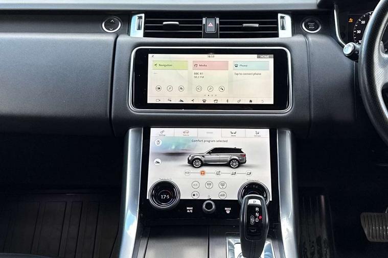 Bluetooth telephone connection, Electric gesture tailgate/boot lid, InControl secure, Mist sensor, Navigation pro system with 10" touch screen, app interface and media storage, Pro services and wifi hotspot, Push button starter, Rear park distance control, Speed sensitive power steering, TFT Virtual Instrument Panel, Trip computer, Adaptive dynamics, Engine cover, Bluetooth audio streaming, DAB Digital radio, InControl protect, USB/aux input socket, Adaptive brake lights, Auto dimming rear view mirror, Automatic headlights, Body coloured bumpers, Body coloured door mirrors, Electric heated, adjustable, folding door mirrors with memory + approach lamp, Follow me home headlights, Front fog lights, Heated rear window, LED rear lamps, Rear wash/wipe, Remote window closing, Sport Badge in silver, Trailer stability assist, 2 way active front head restraints, 2 way rear head restraints, 60/40 Split fold rear seat/load through facility, Auto air recirculation, Climate control memory, Driver's footrest, Electric 3rd row seats, Front and rear cupholders, Front door storage bin, Front map lights, Front seat back map pockets, Front stowage pocket, Front/rear passenger grab handles, Glovebox, Isofix child seat preparation, Leather steering wheel, Luggage compartment lighting, Multifunction steering wheel, Pollen filter, Reach/rake electric adjustable steering column + entry/exit tilt away, Rear centre armrest, Roller blind loadspace cover, Three 12V accessory power outlets, InControl connect Pack - Range Rover Sport, 3 point seatbelts on all seats, ABS + EBD + EBA, Auto lock system when vehicle in motion, Auto locking differential, CBC - (Cornering brake control), Curtain airbags, DSC - Dynamic Stability Control, Dual stage driver/passenger airbags, Electric child locks, Electronic parking brake, Electronic traction control, Front seatbelt pretensioners, Front side airbags, Height adjustable front seatbelts, Hill descent control, Low traction launch, Roll stability control, Seatbelt warning, Tyre pressure monitoring system, Immobiliser, Intrusion sensor, Keyless entry, Locking wheel nuts, Perimetric and volumetric anti theft alarm, Remote locking, Tyre repair kit,