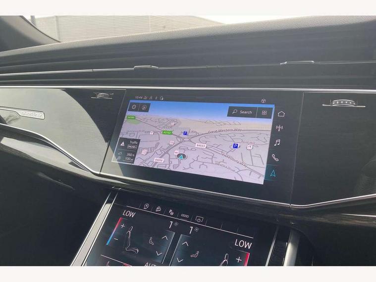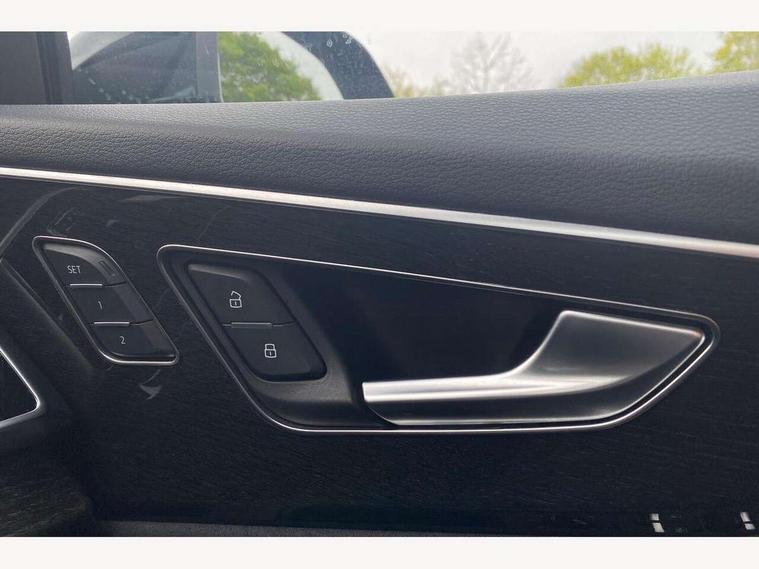 10.1" and 8.6" Dual colour touchscreens, Audi connect safety and service (e-call), Audi connect with Amazon Alexa Integration, Audi drive select, Audi parking system plus includes 360 degree display with front and rear sensors, Audi phone box light with wireless charging, Audi smartphone interface includes wireless Apple carplay/Android Auto, Audi virtual cockpit - 12.3" high resolution LCD display with fully customisable instrument cluster, Automatic start/stop system, Electro-mechanical PAS, Low washer fluid indicator, MMI - Multi Media Interface control system, MMI navigation plus with MMI touch, Natural voice recognition, On board computer, Operating buttons in black, glass look with haptic feedback, Power operated tailgate, Rear view camera, Service interval indicator, 48V Mild hybrid technology, Adaptive sport air suspension, Diesel particulate filter, Quattro all wheel drive with self locking centre differential, Audi music interface with 2 USB ports with charge and data functions, Audi sound system with 6 channel amplifier, 180 watt amplifying capacity and 10 loudspeakers including subwoofer, Aux-in socket, DAB Digital radio, 3rd brake light, Acoustic windscreen, Aluminium window trim, Audi beam, Audi HD Matrix LED headlights with dynamic front and rear indicators, Auto dimming frameless rear view mirror, Black Audi rings and black badging, Coming/leaving home lighting function, Electric front+rear windows, Electrically folding auto dimming/adjustable/heated door mirrors with memory function, LED side indicators and kerb view function for passenger side, Headlight washers, Heat insulating glass in windshield, LED signature daytime running lights, Platinum grey front spoiler lip and diffuser insert with honeycomb grille in black, Privacy glass - dark tinted rear and rear side windows from B-pillar backwards, Rain and light sensors, Rear side wing doors, Rear wiper, 2 zone automatic climate control, 3 bench rear seats in 2nd row, 4-way lumbar support for front seats, 40:20:40 split folding rear bench seat, Audi phone box light, Black cloth headlining, Comfort front centre armrest, Driver seat memory function, Electrically adjustable front seats, Front head restraints, Front/rear floor mats, Heated front seats, ISOFIX child seat mounting for front passenger seat and 2 outer rear seats with top tether child seat mounting for all 3 rear seats, LED interior ambient lighting, Luggage compartment sill protection in stainless steel, Rear centre armrest with 2 cupholders, Rear headrests, Seat cushion displaceable by 100mm in the ratio 60:40, Single front passenger seat, Stainless steel pedals, Sunvisors with illuminated vanity mirrors, Tool kit, 3 point seatbelts on all seats, Audi pre sense front, Child locks on rear doors, Driver and front passenger, front side and curtain airbags, Electromechanical parking brake, Electronic Stability Control (ESC) including ABS, ASR and EDL, Front passenger airbag deactivation, Hill descent control, Hill hold assist, Predictive pedestrian protection, Seatbelt monitoring, Traction control, Tyre pressure loss indicator, Warning triangle and first aid kit, Anti theft alarm with tow away protection, Anti-theft wheel bolts and wheel loosening detection, Immobiliser, Keyless go with remote central locking, Polished oak trim with grey finished, Tyre repair kit,