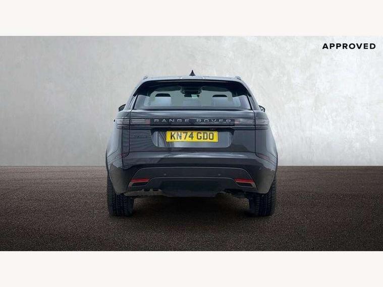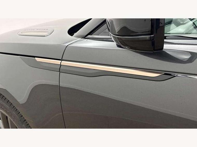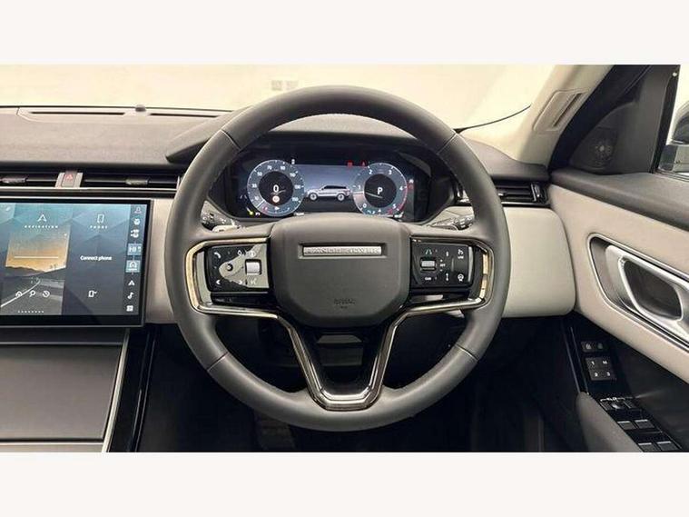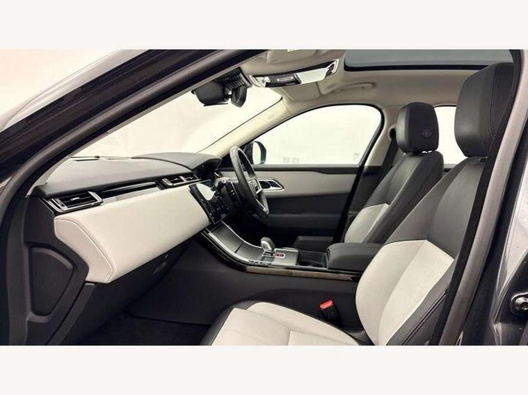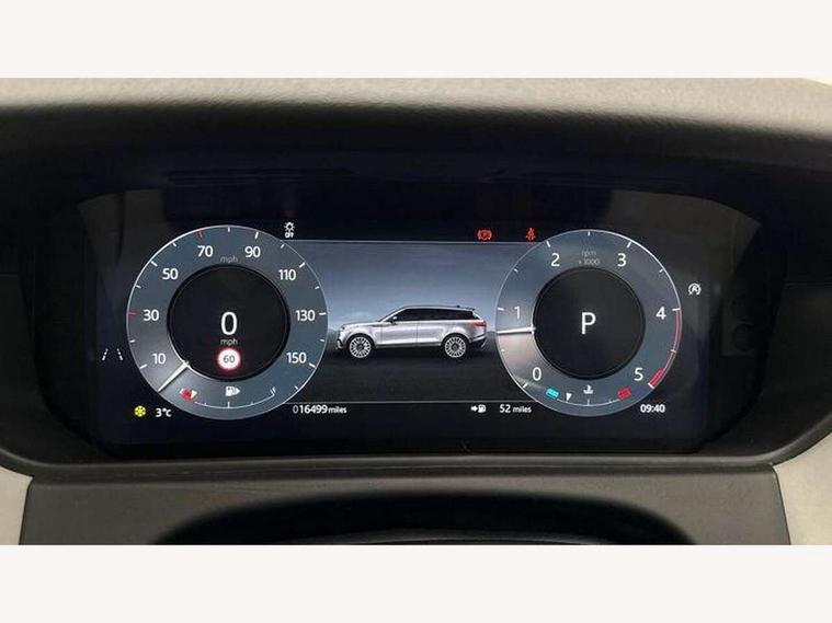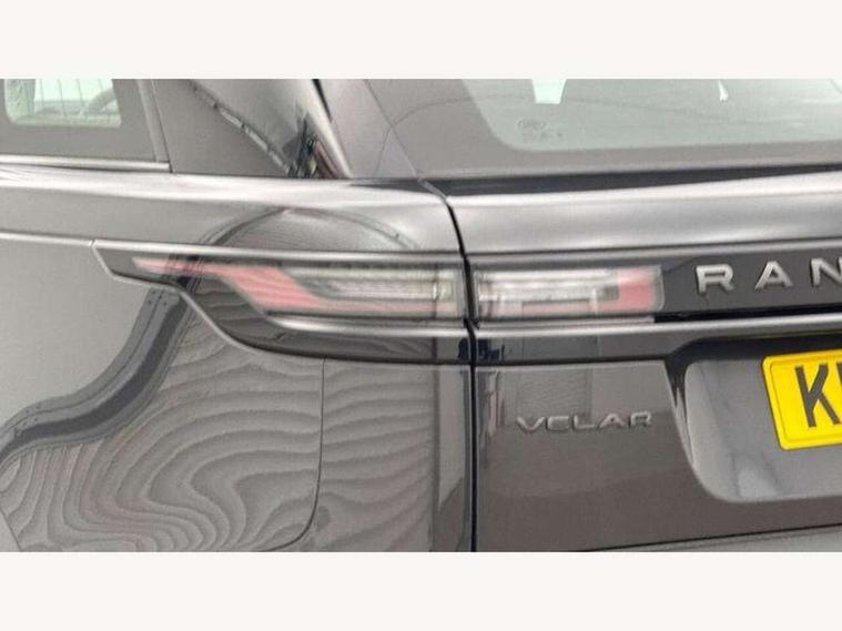 Android Auto, Apple CarPlay, Blind spot assist, Bluetooth connectivity, Brake pad wear indicator warning light, Driver condition monitor, eCall emergency call system, Front and rear parking aid, InControl remote, Land Rover InControl apps, Lane keep assist, Pivi pro with connected navigation, Rear traffic monitor, Service indicator, Speed proportional electronic power assisted steering (EPAS), Traffic sign recognition with adaptive speed limiter, Trip computer, Voice control system, Wireless device charging, 8 speed automatic transmission, All terrain progress control, Coil suspension system, Open differential with torque vectoring by braking, Single speed transfer box, DAB radio, Steering wheel mounted controls, 3rd brake light, Acoustic laminated windscreen, Auto dimming interior rear view mirror, Auto high beam assist, Automatic headlamp levelling, Automatic headlights, Body coloured bumpers, Boot protection plate, Electric windows with one touch open/close and anti trap, Flush deployable exterior door handles, Follow me home headlights, Heated rear window with timer, Heated washer jets, Heated windscreen, LED headlights with signature DRL, Metal front tread plates, Metal load space scuff plates, Power fold, auto-dimming, heated door mirrors with memory and approach lights, Rain sensor windscreen wipers, Rear animated directional indicators, Rear fog lights, Rear side wing doors, Rear wash/wipe, Tailgate/boot lid spoiler, Trailer stability assist, Velar badge, 14 way electrically adjustable front seats with driver's memory function, 3 seat bench in 2nd row, Ambient lighting, Bright metal pedals, Driver/passenger sunvisors with illuminated vanity mirrors, Ebony morzine headlining, Electrically adjustable steering column, Heated steering wheel, Isofix system on outer rear seats, Loadspace cover, Overhead lighting console, Overhead stowage for sunglasses, Passive front headrests, Rear air vents, Rear centre headrest, Single front passenger seat, Twin front cupholders, Twin sliding front centre armrest, Online pack with data plan - Velar, Power socket pack 2 - Velar, 355mm Front and 325mm Rear brakes, 3x3 point rear seatbelts, Anti-lock braking system (ABS), Cornering brake control, Curtain airbags, Customer configurable autolock, Door side intrusion beams, Driver airbag, DSC - Dynamic Stability Control, Electronic brake force distribution, Electronic parking brake, Electronic traction control, Emergency braking, Front and rear seatbelt reminder, Hill descent control, Hill launch assist, Low traction launch, Passenger airbag, Power operated child locks, Rear airbags, Roll stability control, Side airbags, Tyre pressure monitoring system (TPMS), Global lock and unlock switch on driver door, Immobiliser, Intrusion sensor, Keyless entry, Lock only switch on front passenger door, Locking wheel nuts, Perimetric alarm, Remote central locking, All season tyres,