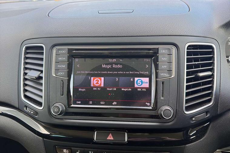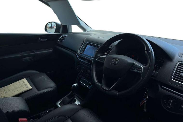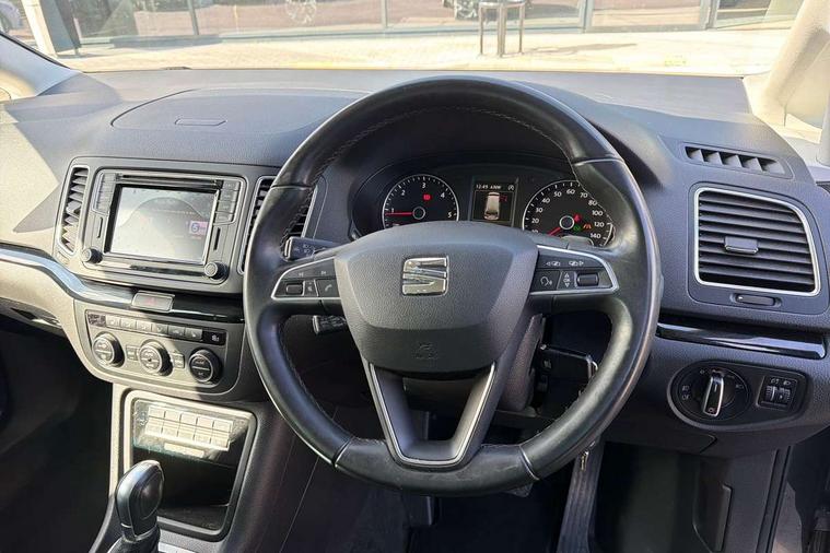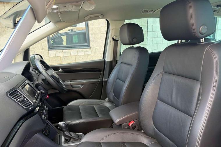 Cruise control, Electric speed sensitive power steering, Front and rear parking sensors, Front assist with front grille, Low fuel warning light, Multi function display, Multifunction camera with lane assist, Outside temperature gauge, Stop/start system, Trip computer, Voice control system, Comfort suspension, Diesel particulate filter, 6.5" touchscreen, 8 speakers, Bluetooth audio streaming, MDI with USB/iPod connection cables, MP3 compatible radio/single CD player, Steering wheel mounted audio/phone controls, Auto dimming rear view mirror, Automatic headlights, Automatic rain sensing wipers, Body colour bumpers, Body colour door handles, Body colour door mirrors with integral indicators, Chrome roof rails, Chrome side window trim, Chromed centre radiator grille surround, Coming/leaving home lighting function, Cornering front fog lights, Dark tinted rear glass, Electric headlight adjustment, Electric tailgate and sliding rear side doors, Electrically adjustable and heated door mirrors, Front and rear electric windows, Heated washer nozzles, High beam assistant, LED rear number plate lights, LED tail lights, Rear wiper, Reverse activated kerb-view adjustment on passenger's door mirror, Twin halogen headlamps, 12 way electric front seats, 2 cupholders in front centre console, 2 cupholders in left rear storage panel, 230V AC inverter, 3 spoke leather steering wheel, 3 x 12V power sockets, 3 zone climate control, 4 Lashing eyes in boot, Adjustable front armrest with storage compartment, Adjustable head restraints, Comfort front sports seats, Dashboard storage with cover, Easy entry seats, Folding rear seats, Front courtesy light with time delay, Front map reading lights, Front seat back fold out tables with cupholders, Front seats folding into table, Front/rear door stowage bins, Front/rear floor mats, Heated front seats, Height/reach adjust steering wheel, Illuminated boot, Integrated sunblind for rear side windows, Isofix child seat preparation, Leather gear knob, Leather upholstery, LED interior illumination, Lockable/illuminated air conditioned glovebox, Multi function steering wheel, Overhead console with sunglasses holder, Rear air conditioning with separate controls, Reclining 2nd row seats, Removable load compartment cover, Steering column mounted gear shift paddles, Sunvisors with illuminated vanity mirrors, Under floor storage in 2nd row, Seat navigation pack with rear view camera - Alhambra, 3 point seatbelts on all seats, ABS, Auto hold function, Automatic post collision braking, Driver and passenger airbags, Drivers knee airbag, Electrically operated child locks on rear doors, Electronic parking brake, Electronic stability control, Emergency brake assist, Energy recovery system, Front and rear curtain airbags, Front and rear seatbelt reminder, Front side airbags, Height adjustable front seatbelts with pre-tensioners and load limiters, Hill hold control, Passenger airbag deactivate switch, Tiredness recognition system, Tyre pressure monitoring system, Electronic engine immobiliser, Locking wheel bolts, Remote central locking + deadlocks, Volumetric alarm with back up horn, Black door & dashboard decorative inserts, Chrome effect dashboard facia, 17" Dynamic alloy wheels, Self sealing tyres,