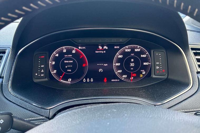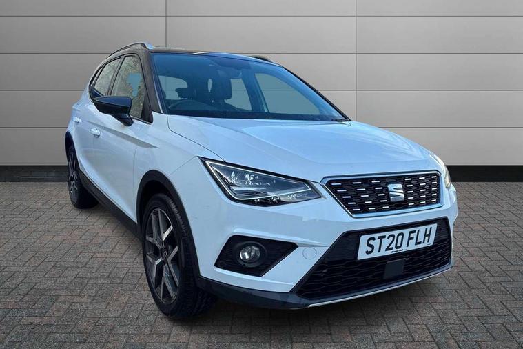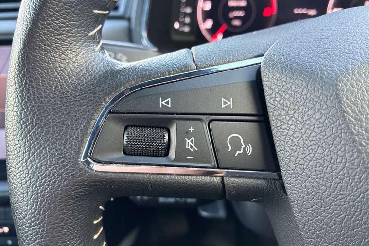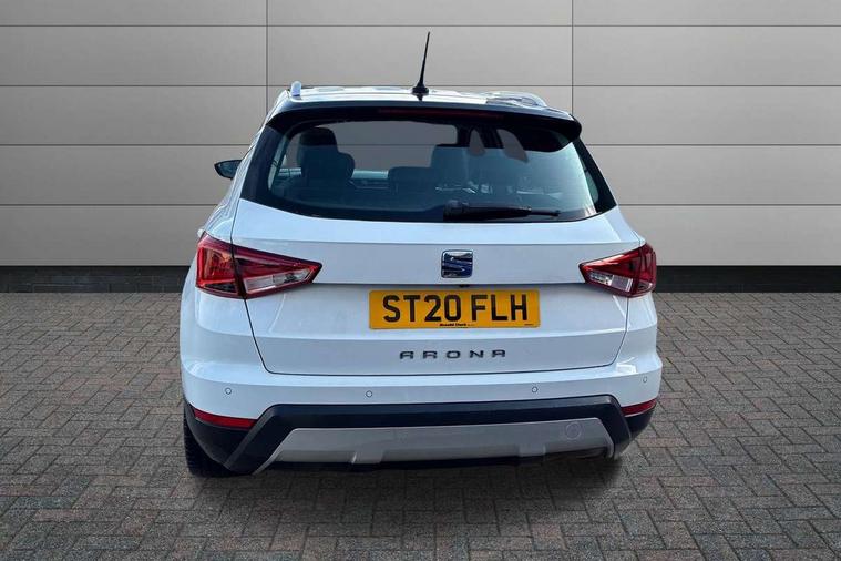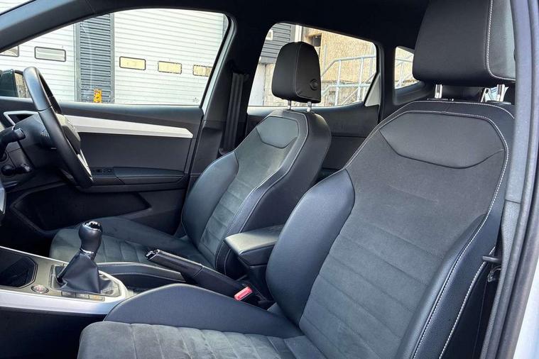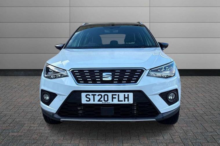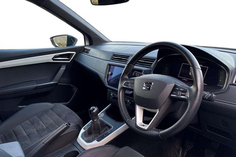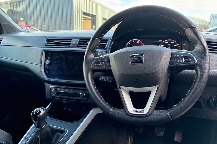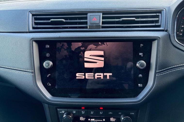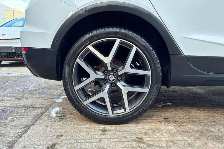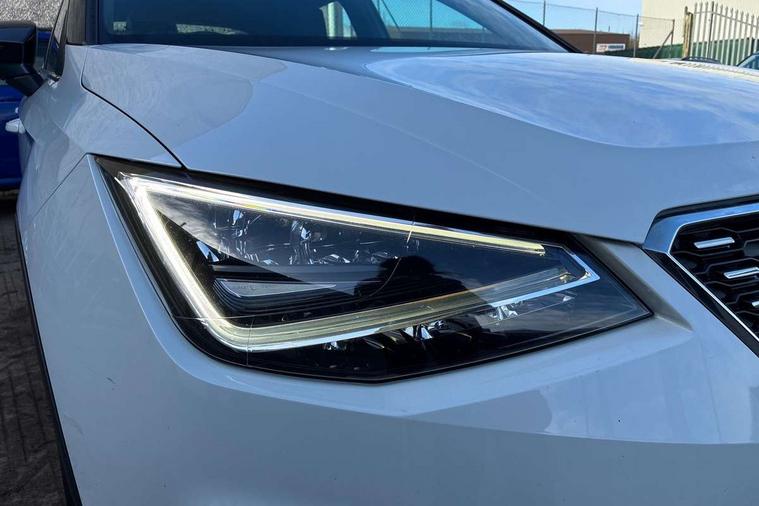 'Lights On' Reminder warning buzzer, Adaptive cruise control, Blind spot detection and rear cross traffic alert, Digital clock, Digital cockpit, Electric speed sensitive power steering, Front parking sensor, Full Link Smartphone Integration with Mirror Link, Apple Car Play, Google Android Auto with USB Type C cable for Apple and Android compatibility, Low fuel warning light, Outside temperature display, Park assist system, Rear cross traffic alert, Rear parking sensor, Rear view camera, RPM counter, SEAT Drive profile, Trip computer, Comfort suspension, 6 speakers, Bluetooth interface for hands free and audio streaming, DAB digital radio and AM/FM radio, Steering wheel mounted audio controls, Anti theft roof antenna, Auto dimming interior rear view mirror, Automatic activation of hazard warning lights, Automatic headlights, Body coloured bumpers, Body coloured door handle inserts, Chrome grille bars, Chrome grille surround, Chrome roof rails, Chrome window trim, Coming/leaving home lighting function, Electric front/rear windows with one touch/auto up/down, Electrically adjustable, heated and folding door mirrors, Front grille hot stamping, Full LED headlights dipped and mainbeam + front and rear fog lights, Hidden exhaust pipe, Ice metal door side panels, LED daytime running lights, LED rear tail lights and licence plate lights, Rain sensing wipers, Rear window wash/wipe, Roof colour door mirrors, Visible VIN plate, Windshield wiper with intermittent control and potentiometer, 2 cupholders, 60/40 split folding rear seat, Black interior roof, Double boot floor, Driver sunvisor with covered mirror + card holder, Dual zone climate control, Dust/pollen filter, Front courtesy light with front reading lights, Front seat back storage pockets, Gear shift indicator, Height adjustable front seats, Height/reach adjustable steering column, Illuminated boot, Instrument lighting with brightness control, Interior footwell lighting, ISOFIX points in outer rear seats with top tether anchorage points, Leather steering wheel/gear knob/handbrake, Microsuede cloth upholstery, Multi-colour ambient interior lighting, Passenger sunvisor with vanity mirror, Storage net on centre console, Two front and three rear height adjustable headrests, Connectivity pack plus - Arona, Interior chrome pack - Arona, Storage pack - Arona, Winter pack - Arona, 3 point seatbelts on all rear seats, ABS, Active front headrests, Child locks on rear doors, Driver and front passenger airbags with front passenger airbag de activation, front side and curtain airbags, Electronic stability control, Emergency Brake Assist (EBA) and front assist, Front and rear seatbelt reminder, Hill hold control, Multi-Collision braking, Tiredness recognition system, Traction control, Tyre pressure monitoring system, 2 folding remote keys with window open/close function, Alarm with back-up horn, Electronic engine immobiliser, KESSY Keyless entry and go, Locking wheel bolts, Remote central locking + deadlocks, Tow away protection, Interior chrome line trim, Leatherette dashboard, 18" Performance alloy wheels,