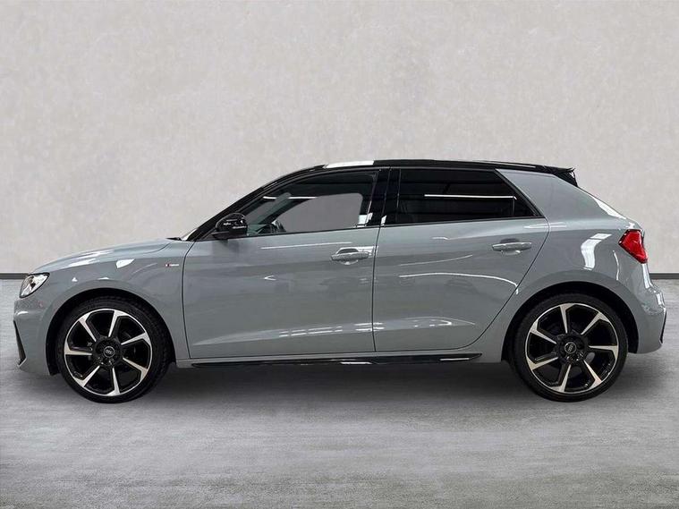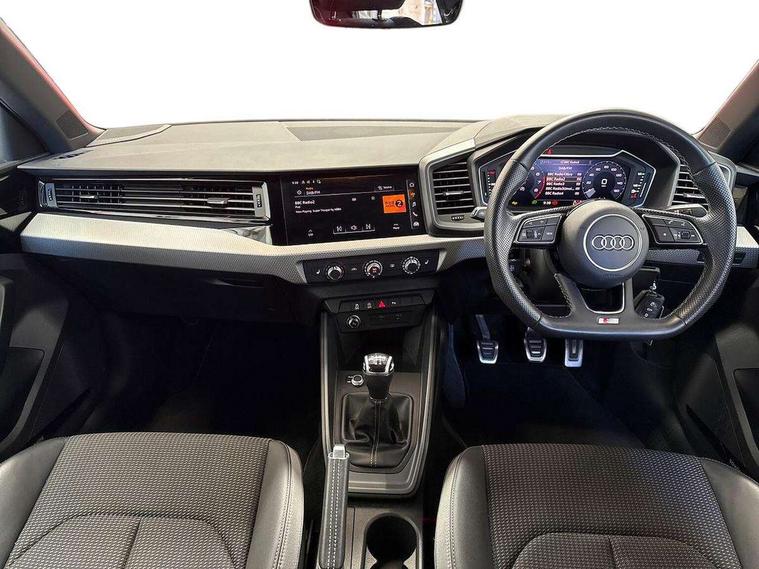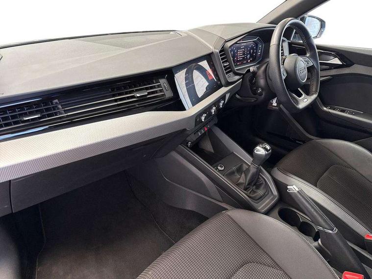 10.25" Digital instrument cluster display classis style instrument dials + speed, odometer, time, outside temperature, telephone menu + fuel level warning, Audi connect safety emergency and service including E-call, Audi smartphone interface with connect compatible smartphone via USB directly MMI display + Nav, music, third party apps controlled via MMI controller, Automatic start/stop system, Bluetooth interface, Cruise control, Driver's information system, Electromechanical power steering, Lane departure warning system, Rear parking sensor, Service interval indicator, Speed limiter, Voice control system, Washer fluid level indicator, Sports suspension, 1 x SDXC card reader, 1 x USB type C and 1 USB type A charging points, DAB Digital radio, MMI radio plus with 8.8" colour MMI display screen and MMI touch, Auto dimming rear view mirror, Black door mirrors, Black side skirts, Door sills with aluminium inlays and S Line logo, Electric front and rear windows, Electrically adjustable, heated, folding door mirrors with integrated LED side indicator, Front side air inlets in grained matt black and C frame in titanium black, Heat insulating glass windscreen and side windows, Heated rear windscreen, LED headlights with LED rear lights + dynamic rear indicators + headlight adjustment and high beam, turning light + LED daytime running lights, Radiator protective grille frame in matt aluminium silver, Rain and light sensors, Rear fog lights, Rear wiper, Side front spoiler lips in grained matt black, 12V socket in centre console with two cup holders, 3 rear seats with headrests, 3 spoke flat bottomed multi-function plus leather steering wheel with S badging, grips in preforated leather and contrast stitching, 40:60 Split folding rear seat or folded fully, Black cloth headlining, Driver and passenger seat with manual height adjust with forward and backwards adjustment, Front and rear black floor mats with contrast stitching in fine silver, Front head restraints, Height and reach adjustable steering wheel, ISOFIX child seat mounting for front passenger and outer rear seats including top tether attachment point of outer rear seats, Leather gear knob with aluminium trim, Luggage compartment light with front and rear reading lights, Manually adjustable lumbar support in front seats, Stainless steel pedals, Black styling pack - A1 Sportback Black Edition, LED interior lighting pack - A1, Luggage compartment pack - A1, Technology pack - A1 Sportback, 3x3 point rear seatbelts, Brake assist function, Driver and front passenger airbag with front side and head airbags, Electronic Stability Control including ABS, EBD, ASR and EDL, Front and rear seatbelt reminder, Front passenger airbag deactivation switch, Hill hold assist, Seatbelt height adjustment for front seats, Seatbelt monitoring, Tyre pressure warning light, Warning triangle and first aid kit, Anti theft alarm, Anti theft wheel bolts and loose wheel warning, Audi pre-sense front with pedestrain and cyclist recognition, Immobiliser, Remote central locking with 2 foldaway keys, Aluminium trim for control switches, air vents and digital instrument cluster, Silver grey inlays polygon structure in diamond paint finish, Structured grey accent areas including air vents, door handle recesses and centre console in quartz paint finish, 18" 7 spoke rotor design alloy wheels in gloss anthracite black, diamond cut finish,