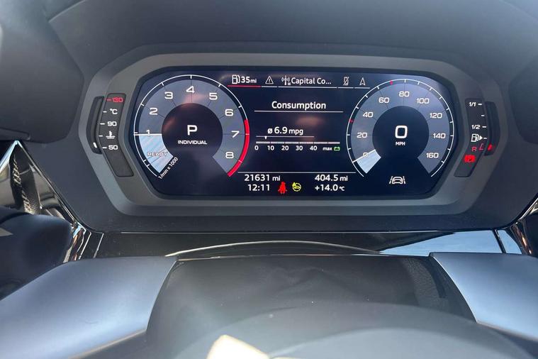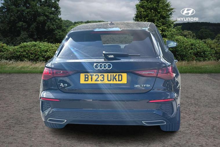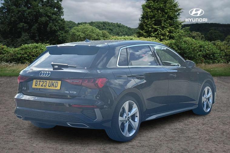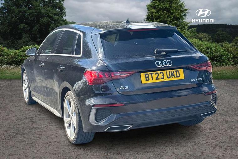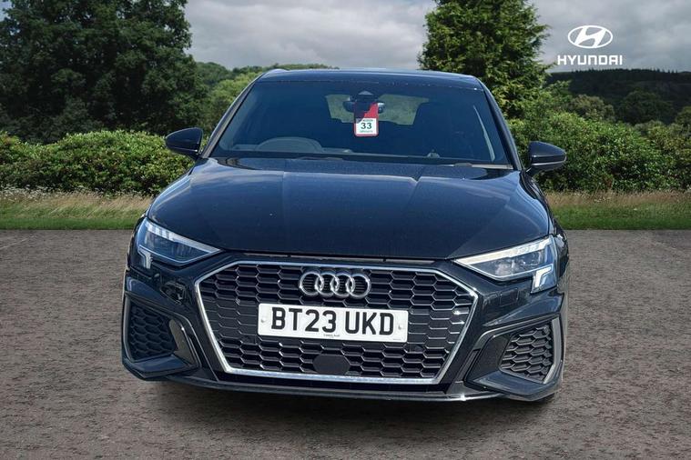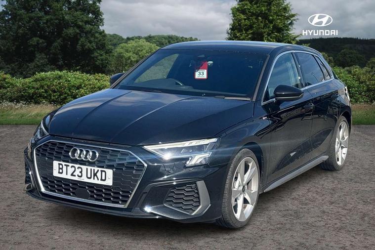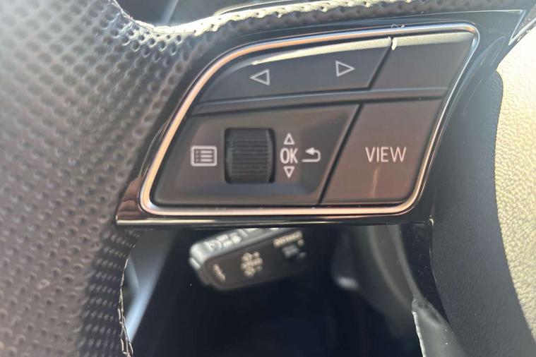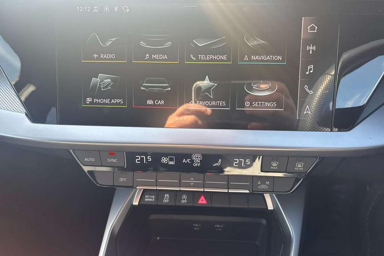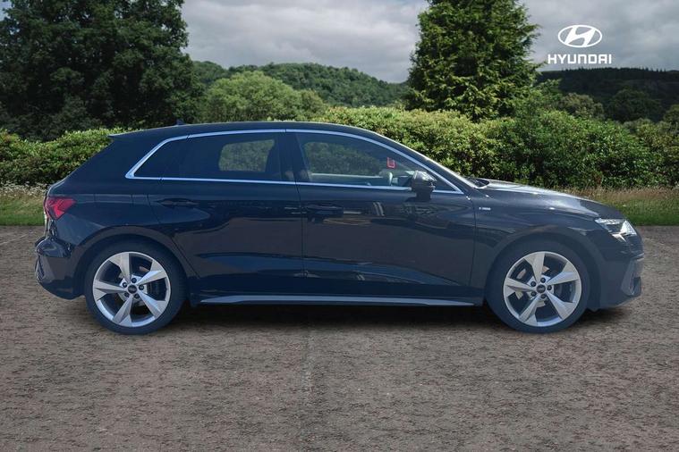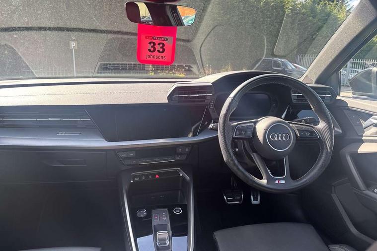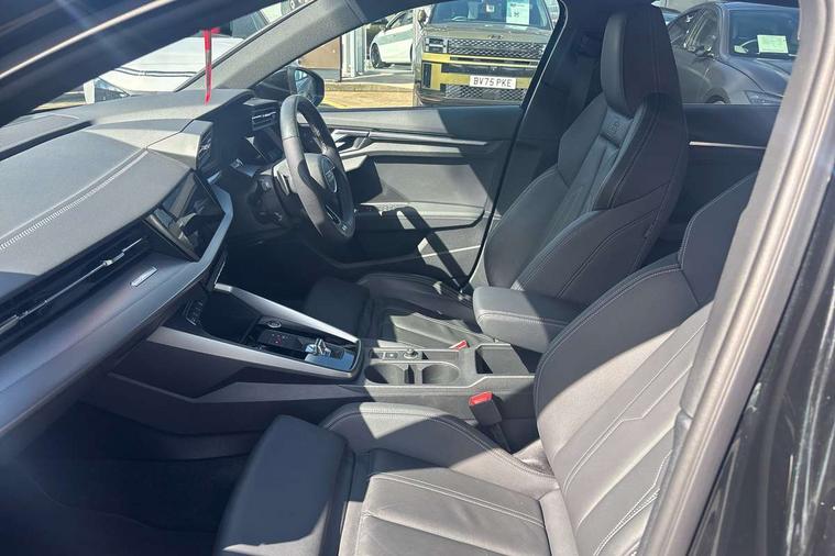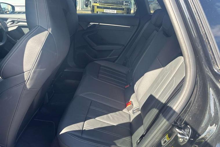 Audi drive select (Auto, Comfort, Dynamic, Efficiency and Individual), Audi smartphone interface, Audi Virtual Cockpit - 10.25" digital and colour instrument cluster, Automatic start/stop system with recuperation, Bluetooth interface, Collision avoidance assistant, e-Call (emergency call), Electromechanical power speed sensitive steering, Lane departure warning system, MMI Navigation Plus with high resolution 10.1" colour touch screen display, Service indicator, Trip computer, Voice control system with natural language interaction, Sports suspension, 2xUSB-C connection with data and charging functions, 6 passive loudspeakers, DAB Digital radio, 3rd brake light, Acoustic glass windscreen, Aluminium window trim, Auto dimming frameless rear view mirror, Body colour exterior mirrors, Electrically adjustable/heated/folding/auto dimming door mirrors with integrated LED indications + kerb view function for passenger side, Front electric windows, Illuminated aluminium inserts front door sills with S logo, LED daytime running lights, LED headlights with LED rear lights and dynamic rear indicators, Light and rain sensors, Privacy glass - dark tinted rear window, rear door and side windows, Rear electric windows, Rear side air outlets in grained matt black, Rear side wing doors, Rear wiper, S line bumpers, S roof spoiler, 12V socket and storage compartment in front centre console, 3 seat bench in 2nd row, 3 spoke leather multifunction steering wheel with paddle shift, 4 way electrically adjustable lumbar support for driver and front passenger, 60/40 split folding rear seat bench, Black cloth headlining, Dual zone electronic climate control, Front and rear centre armrest in leather, Front and rear headrests, Front/rear floor mats, Height and reach adjustable steering wheel, Interior lighting - glove compartment light and right hand side, Luggage compartment floor covering, Manual boot compartment lid, Manually adjustable front seats, Seat side bolsters, Single front passenger seat, Stainless steel pedals and front footrest in black, Twin leather upholstery with front sports seats S embossed logo, Aluminium interior elements pack - A3 Sportback, LED interior lighting pack - A3 Sportback, S line styling pack - A3 Sportback, 3x3 point rear seat belts, Driver and front passenger airbag with passenger airbag deactivation, Electronic Stabilisation Control (ESC) including ABS, ASR and EDL, First aid kit with warning triangle and 2 safety vests, Front side airbags with head airbags and interaction airbag, Pre-sense front with pedestrian and cyclist detection, Seatbelt monitoring, Tyre pressure loss indicator, Anti theft alarm, Anti-theft wheel bolts, Electronically operated child lock, Immobiliser, Remote control central locking, Dark spectrum aluminium inlays, accent surfaces in the dashboard and centre console in platinum grey silk effect paint finish,