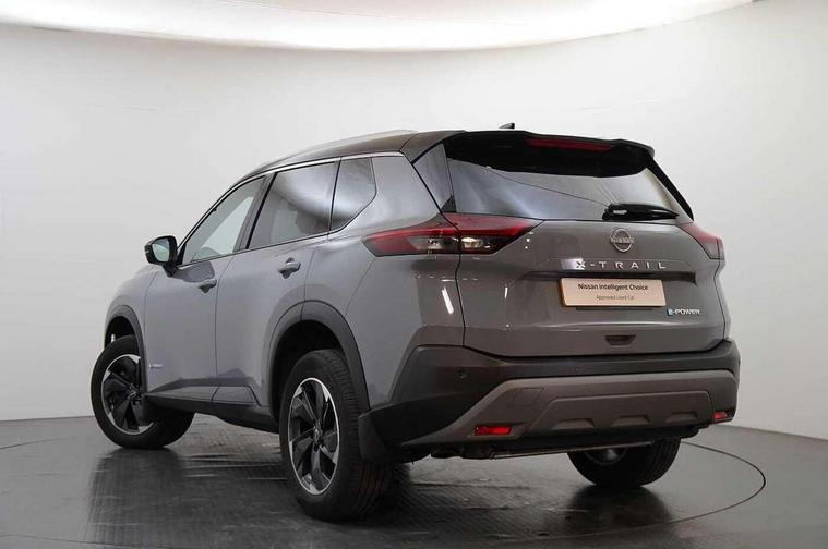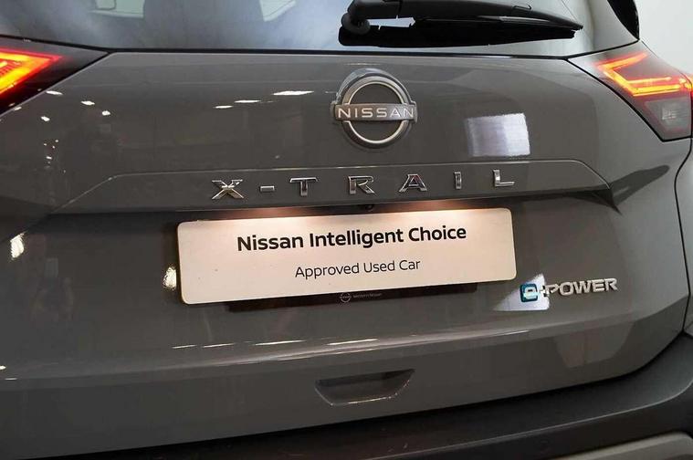 Android auto wireless, Blind spot warning, Drive assist custom mode, Drive modes (sport, normal, eco), Driver drowsiness and attention warning, e-Pedal step, Electric speed sensitive power steering, Emergency and breakdown call, Event data recorder, Front and rear parking sensors, Full Digital 12.3" TFT Digital Combimeter, Google maps services - search, weather, 3D maps and Google street view, Hands free power tailgate, Idle stop/start system, Intelligent around view monitor, Intelligent Cruise control (ICC), Intelligent driver alert system, Intelligent forward collision warning, Intelligent lane departure warning, Intelligent lane intervention, Intelligent lane keep assist, Maximum speed limiter, Moving object detection, Nissan connect 12.3 inch touchscreen infotainment system, Nissan connect nav with TomTom traffic, Propilot assist with Navi-Link, Push button starter, Rear cross traffic alert, Rear view camera, Remote control services - door locks, lights, horn and car locator, Reversing detection, Telematics - notifications and connectivity services, Traffic jam pilot, Traffic sign recognition with legal speed adjustment, Trip computer, Virtual personal assistant and firmware over the air capability, Wireless apple carplay, Wireless charging pad, 6 speakers, AM/FM audio system with DAB, Bluetooth audio streaming, Front USB connections (Type-A and Type-C), Rear USB charging only ports 2 Type-C, Auto dimming rear view mirror, Auto rear wiper when reversing, Body colour mirror caps, Body coloured door handles, Bodyside mouldings, Chrome side window finisher, e-POWER badging, Electric auto folding door mirrors, Electrically adjustable and heated door mirrors, Follow me home headlights, High beam assist, Intelligent auto headlights, LED 3rd brake light, LED daytime running lights, LED Headlights, LED rear lights, One touch front and rear electric windows with remote opening and closing, Partially body coloured bumpers, Rain sensing wipers, Rear reversing light (bulb lighting), Rear roof spoiler, Rear side wing doors, Rear styling plate, Shark fin antenna, Splash free wipers, Three blink turn signal, 12v power socket in dashboard and luggage, 3 bench rear seats in 2nd row, 3 rear headrests, 60/40 split folding rear seat bench, Butteryfly console, Chrome interior door handles, Cloth monoform upholstery, Driver and front passenger sunvisors with illuminated vanity mirrors, Driver seat back pocket, Dual zone automatic climate control with pollen filter, Front centre console and armrest, Front cupholders, Front door with bottle holders, Height adjustable driver's seat, Height adjustable front headrests, Height adjustable passenger seat, Leather shift knob, Leather steering wheel, Luggage board system, Luggage space lighting, Multifunction steering wheel, Passenger seat back pocket, Rear armrest with 2 cupholders, Rear door bottle holders, Single front passenger seat, Tilt/telescopic adjustable steering wheel, Two rear isofix child seat anchorage points with top tether, 3x3 point rear seatbelt pretensioners + load limiters, ABS with EBD and brake assist, Active brake limited slip, Auto hold function, Child locks on rear doors, Curtain and front side, far side airbags, Driver and passenger airbags, Driver, passenger and 2nd row rear seat belt reminder, Electronic parking brake, Front seatbelt pretensioners + load limiters, Height adjustable front seatbelts, Hill start assist, Intelligent blind spot intervention, Intelligent front emergency braking with pedestrian, cyclist recognition and junction assist, Intelligent rear automatic braking, Tyre pressure monitoring system, Vehicle dynamic control, Approach unlock and walk away lock, Engine immobiliser, Intelligent Key, Remote central door locking with deadlocking, Thatcham Cat.1 alarm, 18" Diamond cut alloy wheels, Tyre puncture repair kit,