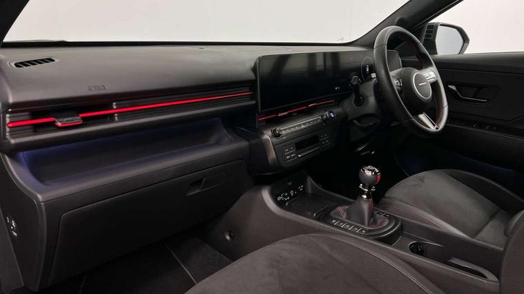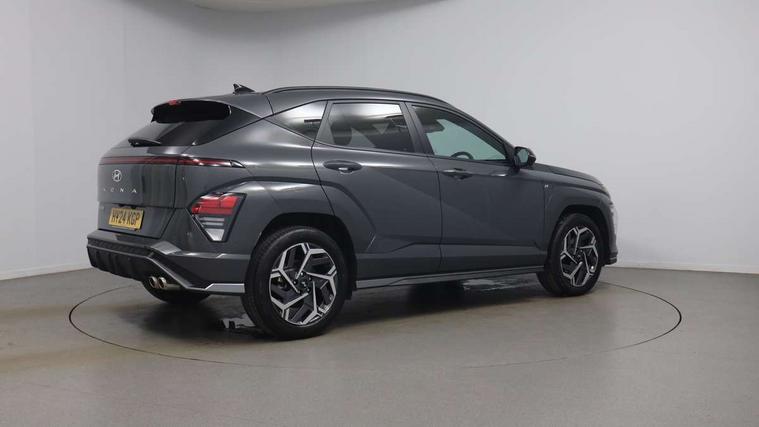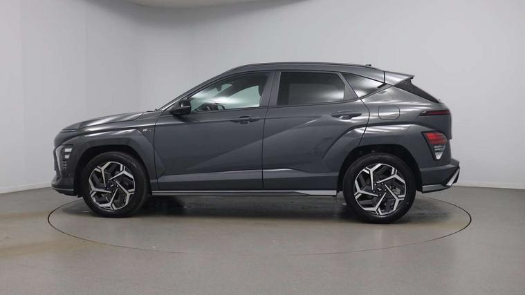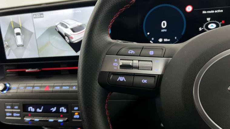 12.3" touchscreen centre console display satellite navigation with bluelink, live services and mapcare, Blind spot collision avoidance assist, Blind spot view monitor, Bluetooth connectivity with voice recognition, Cruise control, Digital clock, Driver status monitor (DSM), Driver supervision instrument cluster with 12.3" LCD display, eCall emergency call system, Feature on demand - Enabled, Forward collision avoidance assist (FCA 1.5) - Car, pededstrian, cycle and junction turning, Front parking sensor, Height adjustable power tailgate, Intelligent speed limit assist, Lane follow assist, Lane keep assist, Leading vehicle departure alert (LVDA), Parking Collision Avoidance Assist-Reverse (PCA-R), Parking distance warning - side, Parking system with rear camera and guidance system, PAS, Rear cross traffic collision avoidance (RCCA), Rear parking sensor, Roadside assistance, Safe exit warning (SEW), Surround view monitor, Windscreen washer fluid sensor and warning indicator, Wireless phone charging pad, Wireless Smartphone Integration includes Apple CarPlay and Android auto, 2 front USB C and 2 rear USB C charging points, Bose Premium Audio system with 7 premium speakers + subwoofer, DAB Digital radio, Steering wheel audio, phone and cruise controls, Auto dimming rear view mirror, Automatic headlights with dusk sensor, Automatic windscreen wipers with rain sensor, Body colour bumpers, Body colour exterior door handles, Body coloured wheel arch inserts, Door mirror LED indicator lights, Electric front windows with anti-trap mechanism and one touch control, Electric rear windows, Electrically adjustable and heated door mirrors, Gloss black door mirrors, Horizon centre LED DRL, LED projector headlights, LED upper and lower rear lights, Power folding door mirrors, Privacy glass - Rear windows and tailgate, Rear roof spoiler with integrated LED brake light, Rear side wing doors, Rear wiper, Roof rails, Solar glass with front door glass and windscreen, Tinted glass in front and rear doors, Windscreen auto defog function, 12V power outlet in front console, 2 zone climate control, 3 seat bench in 2nd row, 40/20/40 split folding rear seat, Adjustable head restraints, Aluminium pedals, Ambient lighting, Driver and passenger front seat pockets, Driver's seat electric adjustments, Driver's seat lumbar support, Driver/passenger sunvisors and illuminated vanity mirrors, Floor mats, Front passenger's seat electric adjustments, Heated front seats, Heated rear seats, Heated steering wheel, Height/reach adjustable steering column, Isofix rear child seat fastenings, Leather wrapped steering wheel and gear knob, LED centre interior light, LED front interior light, Luggage compartment LED lighting, Luggage net, Luggage shelf, Metal paint effect interior door handles, N Line Alcantara/leather upholstery, Parcel shelf, Rear centre armrest with cupholders, Rear centre console with air vents, Single front passenger seat, Ventilated front seats, Vertical adjustment rear head restraints, N Line exterior design pack - Kona, Trailer wiring package - Kona, Airbag - front, front side, curtain and centre front airbag, Anti-lock brake system (ABS), Childproof rear door locks, Downhill brake control, EBD + Brake Assist, Electric parking brake, Electronic stability control, Fasten seatbelt reminder, Fixed 3 point for second row centre passenger seatbelt, Front seatbelt pretensioners, Height adjustable front seatbelts, Hill start assist control (HAC), Passenger airbag deactivate switch, Rear seat alert, Traction control, Tyre pressure monitoring system, Alarm/immobiliser, Deadlocks, Folding key, Locking wheel nuts, Rear occupant alert, Remote central locking, Smart key with keyless entry and start/stop button, Five year annual vehicle health checks, Temporary mobility kit (TMK),