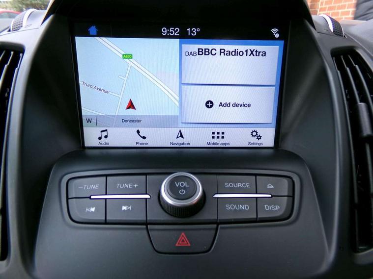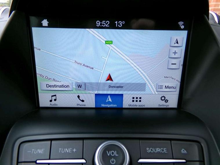 EPAS, Rear parking sensor, SYNC Emergency Assistance, Trip computer, Auxiliary socket for external device, Remote audio controls on steering wheel, USB connection, Auto dimming rear view mirror, Automatic headlights, Body colour bumpers, Body colour rear spoiler, Electric folding mirrors, Electrically heated door mirrors, Front scuff plate, LED daytime running lights, Power front and rear windows, Quickclear heated windscreen, Rain sensor windscreen wipers, Rear diffuser, Tailgate wash/wipe, Twin exhaust pipes, 6 way manually adjustable passenger seat, 60/40 split/folding rear back and cushion, Auxiliary power socket in luggage area, Centre console with stowage tray/bottle holder/CD stowage/front and rear 12V power point, Cloth/Salerno leather upholstery, Driver seat lumbar adjustment, Driver/passenger front seatback pockets, Driver/passenger seats fore/aft adjustment, Dual electronic automatic temperature control, Folding rear centre armrest, Footwell courtesy lights front and rear, Front floor mats, Front head restraints, Front overhead courtesy lights with theatre style dimming and delay, Front/rear reading lights, Isofix system on outer rear seats, Leather gearknob, Leather steering wheel, Multi-colour ambient interior lighting, Passenger lumbar support, Reach + rake adjustable steering column, Rear floor mats, Rear head restraints, Sports style front seats, Stowage unit in upper instrument panel, Tie down hooks, Tonneau cover, Variable intensity instrument illumination, 3 point seatbelts on all 3 rear seats, ABS/EBD, Driver and passenger airbags, Driver and passenger side airbags, Electric traction assist system, Electronic parking brake, ESP+EBA, Front and rear curtain airbags, Hill start assist, Intelligent Protection System (IPS), Tyre pressure monitoring system, Immobiliser, Keyless entry, Keyless start, Locking wheel nuts, Remote central locking, Thatcham Cat.1 alarm, Mini steel spare wheel,