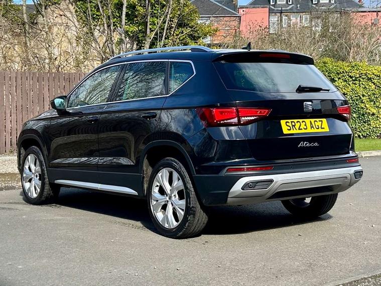 8" Digital cockpit, Colour multi-function on board computer display, E-call, Outside temperature gauge, Progressive power assisted steering, Rear view camera, SEAT drive profile with driving experience button - Normal, Sport, Eco and Individual mode, steering and throttle response, Self parking functionality (includes front and rear parking sensors), Start/stop system, Tailgate, Trip computer, Wireless full link smartphone integration, Wireless phone charger, Steering wheel mounted audio/phone controls, Black simulated exhaust pipes, Black wheel arch surrounds, Body colour bumpers, Chrome front grille frame, Chrome roof rails, Chrome side window trim, Dark tinted rear windows, Daytime running lights, Door mirrors with welcome light silhouette, Dynamic headlight range control with self adjusting whilst driving, Electric adjustable/heated/folding door mirrors, Front and rear electric windows, Front grille hot stamping, Full LED headlamps with lens and LED front fog lamps with cornering function, Illuminated aluminium front door sill, LED rear tail lights with dynamic indicators, Rear fog lights, Rear side wing doors, Rear wash/wipe, Reflex silver side mouldings, Variable front intermittent wipers, 12V socket in front, 3 seat bench in 2nd row, 60/40 split folding rear seat, Drawer under right front seat, Dual zone climate control, Front and rear head restraints, Front centre armrest, Front seat back storage pockets, Height adjustable driver and passenger seat with lumbar adjustment, ISOFIX points in outer rear seats with top tether anchorage points, Leather steering wheel and gear knob, Microsuede upholstery with front comfort seats, Rear armrest and easy back seat release mechanism from boot, Single front passenger seat, Convenience pack - Ateca, Interior lighting pack - Ateca, Navigation system pack with DAB - Ateca, Safe and driving pack with lane assist - Ateca, 3x3 point rear seatbelts, ABS, Traction control system (TCS), Electronic stability control (ESC) and Electronic differential lock system (XDS), Airbags - Driver and front passenger airbag with deactivation, front side, two curtain and driver's knee airbags, Electric parking brake with auto hold function, Front and rear seatbelt reminder, Hill hold control, Manual rear child locks, Single tone horn, Tiredness recognition system, Traction control, Tyre pressure monitoring system, Alarm, Keyless entry, Locking wheel bolts, Remote central locking, Chrome interior detailing, 18" Brillaint silver alloy wheels,