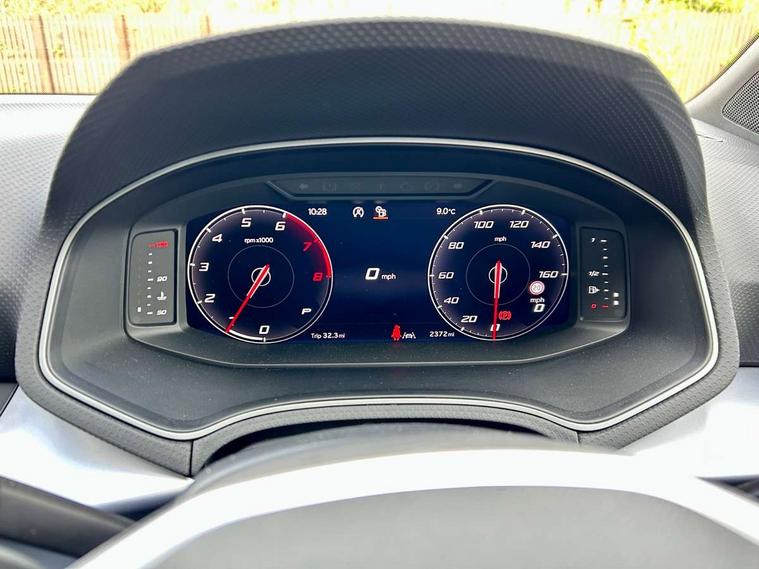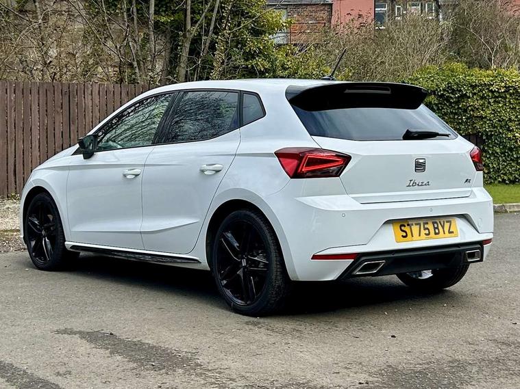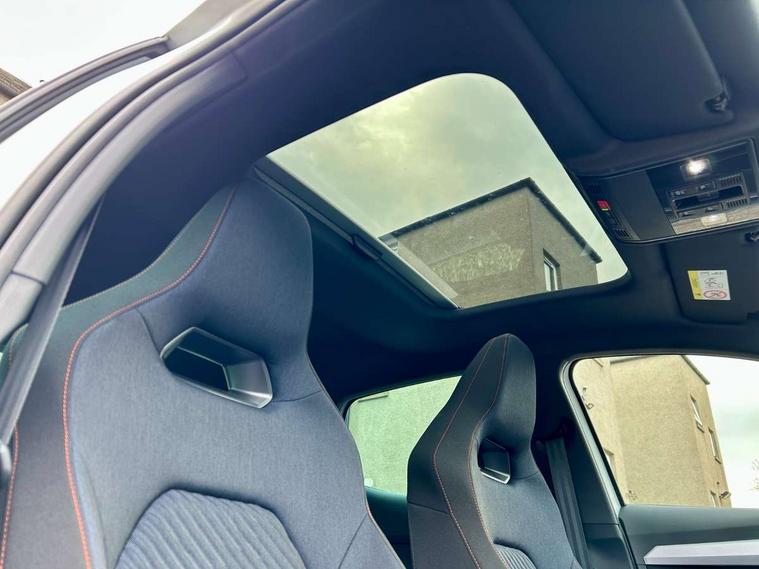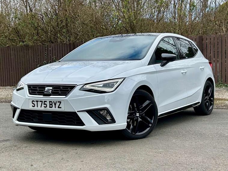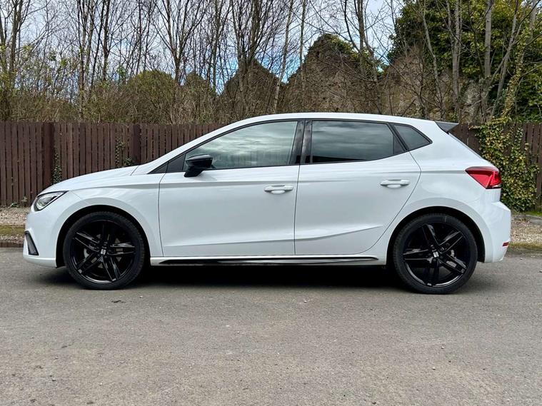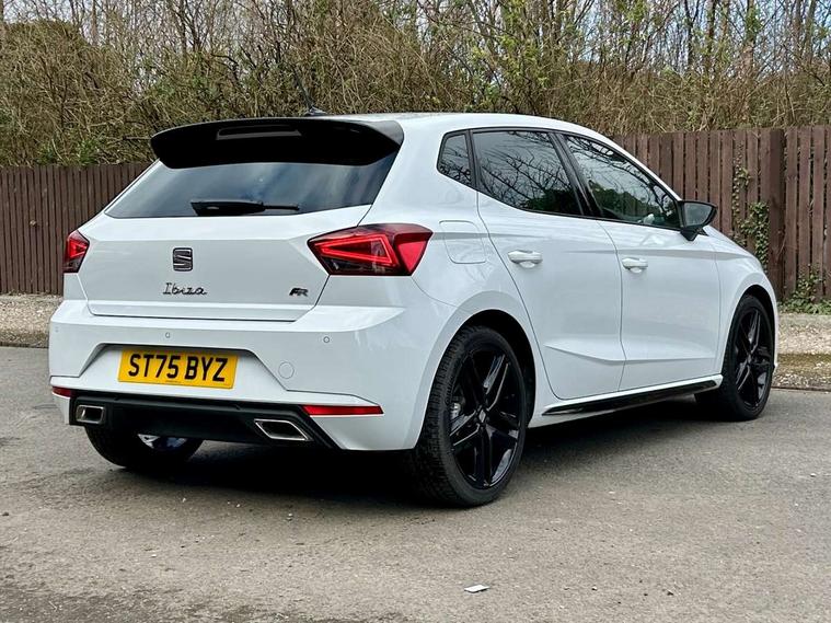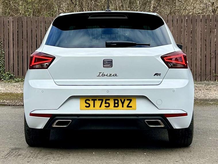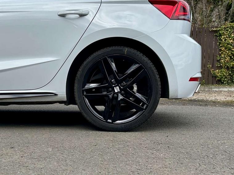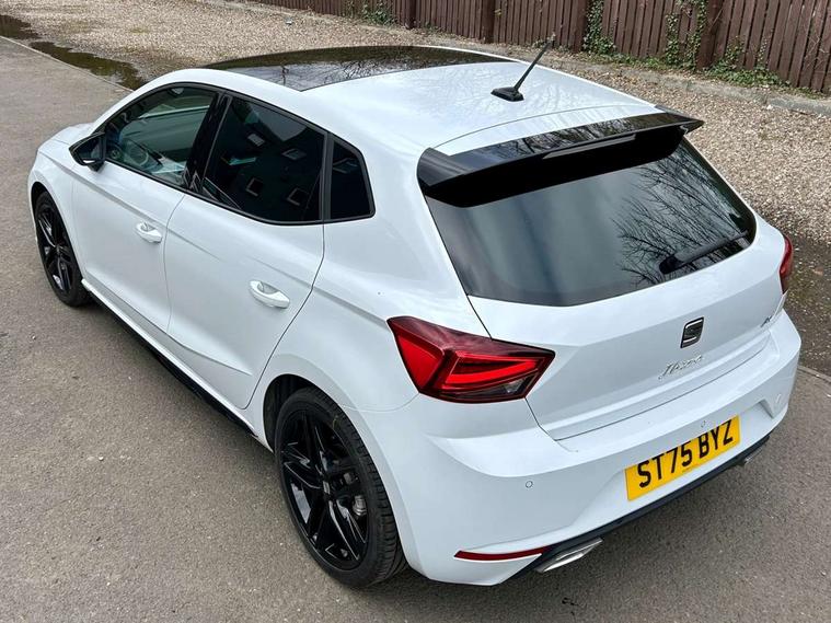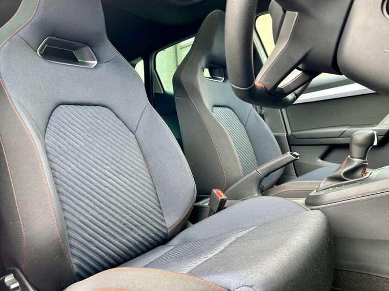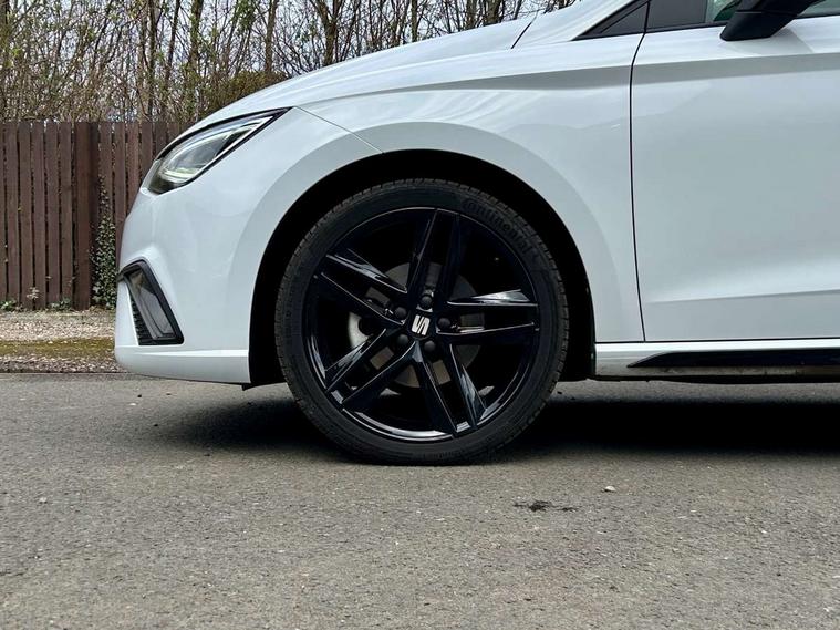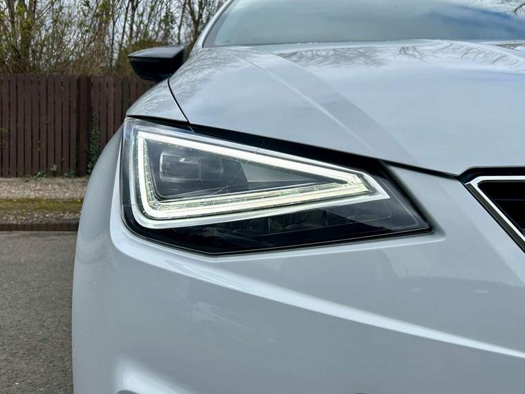 'Lights On' Reminder warning buzzer, 10" Digital cockpit, 9.2" touchscreen navigation system with type C USB socket, Voice control and DAB/AM/FM radio, Auto start and stop system, Bluetooth audio streaming with handsfree system, Digital clock, E-call, Full link smartphone integration with mirror link, wireless apple carplay, Google android auto + USB Type C cable for apple and android devices, Lane assist, Low fuel warning light, Outside temperature gauge, Power Steering, Rear parking sensor, Seat connect plus with safety, service, remote and online, SEAT drive profiles and ECO function, SEAT logo boot release, Speed limiter, Traffic sign recognition, Trip computer, Sports suspension, Auxiliary input socket, Radio/MP3 player, SD card slot, Steering wheel mounted controls, Anti theft roof antenna, Auto dimming rear view mirror, Automatic rain sensing wipers, Black door mirror caps, Black roof spoiler, Black side skirts, Body colour bumpers, Body colour door handles, Brilliant black window surrounds, Dark tinted rear windows, Electric adjustable/heated/folding door mirrors, Electric front windows, Electric headlight adjustment, Electric panoramic sunroof, Electric rear windows, Front/rear fog lights, FULL LED automatic headlights with dynamic headlight range control, coming and leaving home, LED daytime running lights, LED 3rd brake light, LED tail lights, Rear roof spoiler with FR twin exhausts, Rear side wing doors, Rear wiper, 3 seat bench in 2nd row, 60/40 split folding rear seat, Ambient interior lighting, Chrome detailing and black headlining, Dual zone climate control with combination filter, Front courtesy lights, Front cupholders x 2, Front reading lights, Front sport bucket seats, Gear shift indicator, Glovebox, Heated front seats, Height adjustable front and rear headrests (five), Height adjustable front seats, Height/reach adjust steering wheel, Illuminated air vent surrounds, Illuminated boot, Instrument lighting with brightness control, Isofix, Leather multifunction flat bottomed sports steering wheel with gearshift paddles, Microsuede cloth upholstery, Passenger sunvisor, Single front passenger seat, Storage pockets on back of front seats, Sunvisors with mirror and driver side card holder, Safety and driving pack (S) - Ibiza, ABS, Active front headrests, Child locks on rear doors, Electronic stability control, Energy recovery system, Front driver and passenger side airbags with curtain airbag and front passenger airbag deactivation, Hill hold control, Multi-Collision braking, Seat belt reminder for front and rear seats, Tiredness recognition system, Tyre pressure monitoring system, KESSY Keyless entry and go, Locking wheel bolts, Perimeter alarm and interior monitoring with backup horn and tow away protection, Remote central locking + deadlocks, 18" Performance alloy wheels in glossy black,
