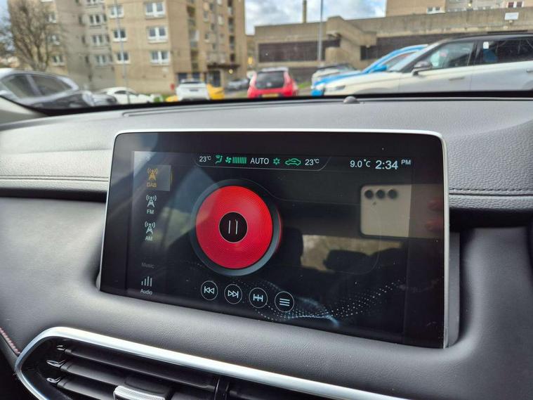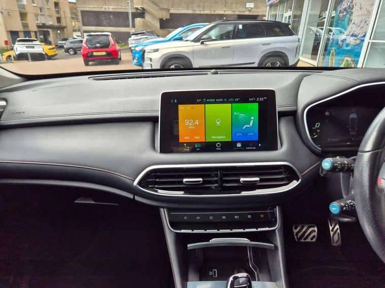 10.1" colour touchscreen, 12.3" Full digital driver information display, Adaptive cruise control, Android Auto, Apple CarPlay, Blind Spot Detection (BAS), Bluetooth connectivity, Driving modes, Emergency call service, Intelligent speed assist, Lane keep assist system (LAS) with Lane departure warning system (LDWS), PAS, Power tailgate, Rear cross traffic alert, Rear parking camera, Rear parking sensors, Satellite navigation system, Tailgate, Traffic jam assist, Trip computer, USB mobile phone charging function, 6 speaker audio system, DAB audio, Auto dimming rear view mirror, Automatic headlights, Body colour electric adjustable heated door mirrors, Electric folding door mirrors, Follow me home headlights, Front and rear aero wiper, Front and rear electric windows with one-touch up/down, Front fog lights, Intelligent high beam, LED Bi-Function headlights, LED centre brake light, LED daytime running lights, LED front and rear sequential indicators, Rain sensing wipers, Rear privacy glass, Rear side wing doors, Silver roof rails, 12V power sockets, 2nd row 60/40 split fold seat, 2nd row seat with 2 stage incline adjustment, 3 rear headrests, 3 seat bench in 2nd row, 4 way electric adjustable passenger seat, 6 way electric adjustable drivers seat + lumbar support, Ambient lighting (adjustable colour), Dual zone automatic air conditioning, Front centre sliding armrest with storage compartment, Front headrests, Heated front seats, Height and reach adjustable steering wheel, ISOFIX restraints on outer rear seats x2, Leather steering wheel, Metal sports pedals, Single passenger seat, Sports Style Front Seats with One-Piece Back, Steering wheel paddle shift, 3x3 point rear seatbelts, ABS/EBD, Active emergency braking with pedestrian/Bicycle detection, Anti rolling protection, Cornering brake control (CBC), Drivers seatbelt reminder, Dual front airbags, Electric parking brake with auto hold function, ESP, Front and rear passenger seat belt reminder, Front passenger airbag deactivation switch, Front seat belt height adjuster, Front seatbelts (3-point + pretensioner + load limiter), Front side airbags, Hill descent control, Hill launch assist, Manual rear child locks, Rear outer seatbelt pretensioner and load limiter, Side curtain airbags, Tyre pressure monitoring system, Alarm system and engine immobiliser, Keyless entry and push button start system, Remote central locking, Speed sensing door locks, 18" Hurricane diamond cut alloy wheels, Tyre repair kit,