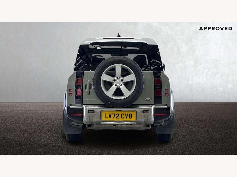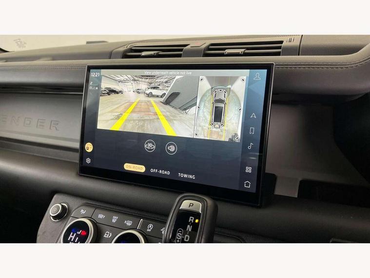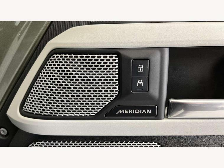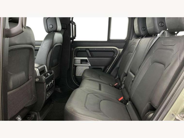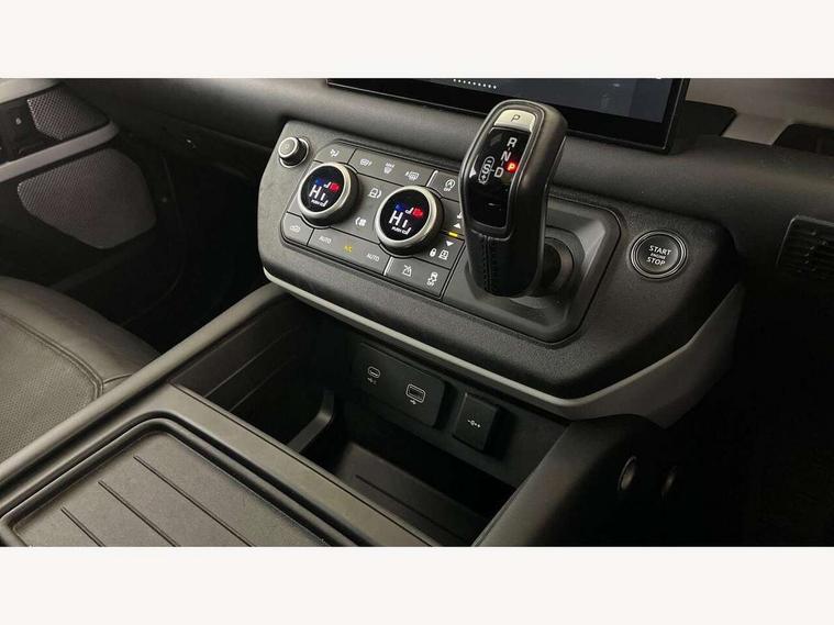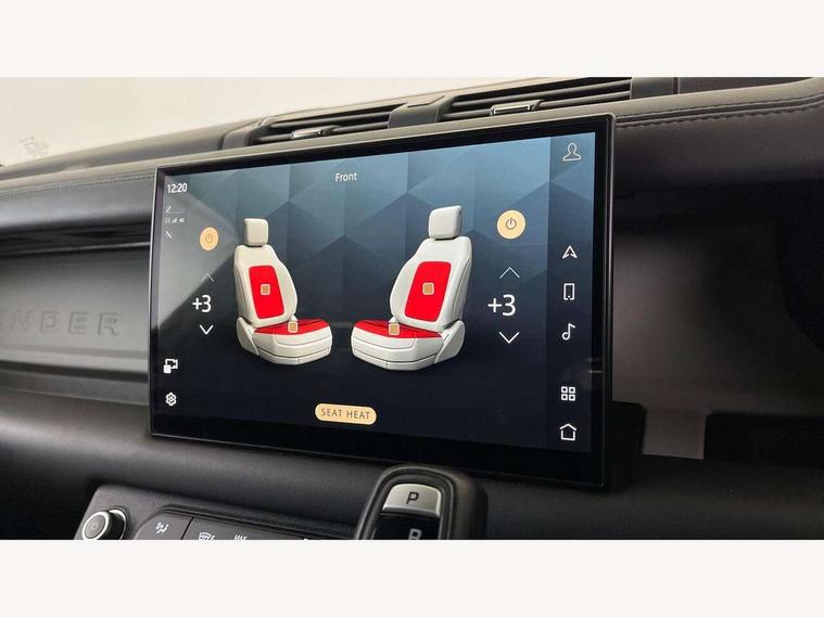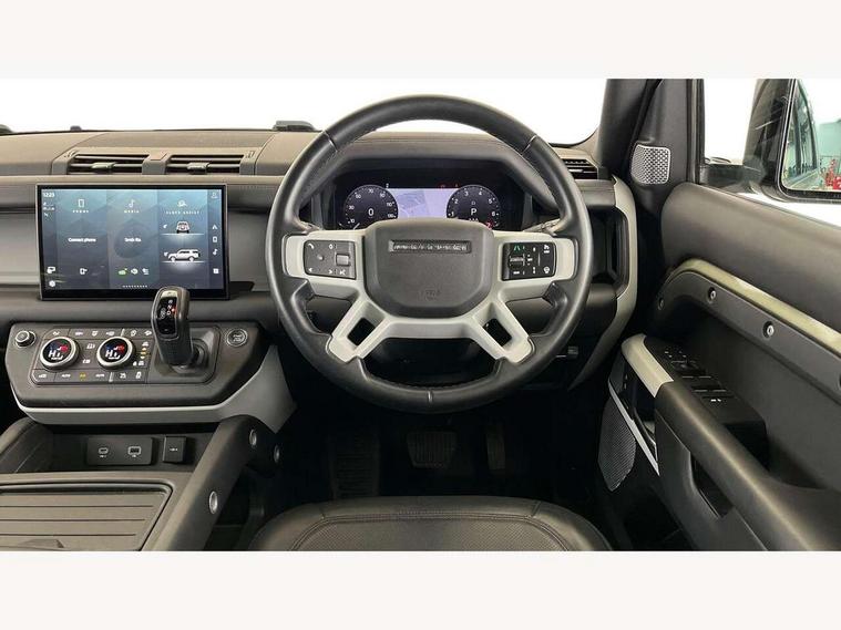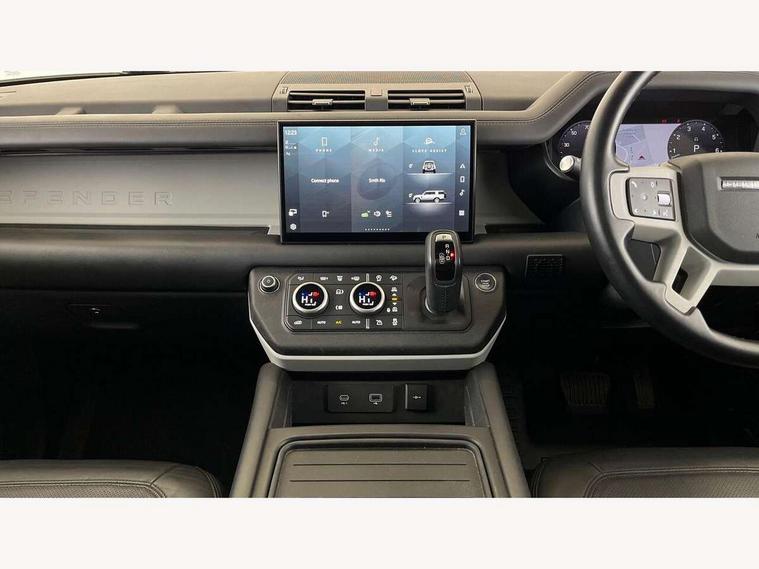 11.4" touchscreen, 360 degree parking aid, 3D Surround Camera with 360 View, 180 Rear View, Front Traffic Detection, Forward Vehicle Guidance, Tow Hitch Assist and clear sight Ground View, Adaptive cruise control, Android Auto, Apple CarPlay, Assisted tailgate with soft close, Blind spot assist, Bluetooth system, Brake pad wear indicator, Clear exit monitor, Connected navigation pro, Driver condition monitor, Electric power assisted steering (EPAS), Lane keep assist, Push button start, Rear collision monitor, Rear traffic monitor, Traffic sign recognition with adaptive speed limiter, Trip computer, Wade Sensing, 8 speed automatic transmission, Adaptive dynamics, All wheel drive system, Electronic air suspension, Twin speed transfer box, DAB Radio (Digital Audio Broadcasting), Pivi pro connected, Automatic headlight levelling, Automatic headlights, Black roof rails, Centre high mounted stop light, Electric heated/power fold door mirrors with approach lights and auto dimming driver side, Electric windows with one touch open/close and anti-trap, Follow me home lighting, Front fog lights, Heated rear window with timer, Heated windscreen, LED tail lights, Puddle lights, Rain sensing windscreen wipers, Rear fog lights, Rear side wing doors, Rear wiper, Side hinged tailgate, Sliding panoramic roof, Standard treadplates, Trailer stability assist, 12V power socket in loadspace, 14 way heated and cooled electric adjustable memory front seats with 4 way manual headrests, 3 seat bench in 2nd row, 3 seat bench in third row, Air quality sensor, Alpine lights, Cabin Air Purification plus, Durable rubber cabin flooring, Durable rubber loadspace flooring, Electric cabin pre conditioning, Electric reach + rake adjustable steering column, Extended leather upgrade, Footwell lights, Front passenger isofix child seat attachment, Heated steering wheel, Loadspace cover, Loadspace Hook, Multifunction steering wheel, Overhead stowage for sunglasses, Premium cabin lighting, Rear headrests, Rear ISOFIX, Rear reading lights, Single front passenger seat, Storage glovebox, Sunvisors with illuminated vanity mirrors, Twin front cupholders with cover, Online pack with data plan - Defender, 5 x 3 point seatbelts, ABS, Brake hold function, Cornering brake control (CBC), Customer configurable autolock, DSC - Dynamic Stability Control, EBD - Electronic brakeforce distribution, Electric parking brake (EPB), Emergency brake assist, Emergency braking, ESP + traction control, Front airbags with passenger seat occupant detector, HDC - Hill descent control, Hill launch assist, Low traction launch, Power operated child locks, Remote for (e-Call, Optimised assistance call, InControl app, Climate, beep and flash and door), RSC - Roll stability control, Seat belt reminder, TPMS (Tyre pressure monitoring system), Alarm, Immobiliser, Intrusion sensor, Keyless entry, Locking wheel nuts, Body coloured spare wheel cover,