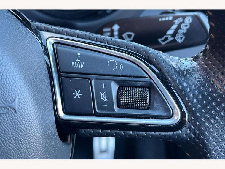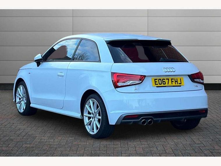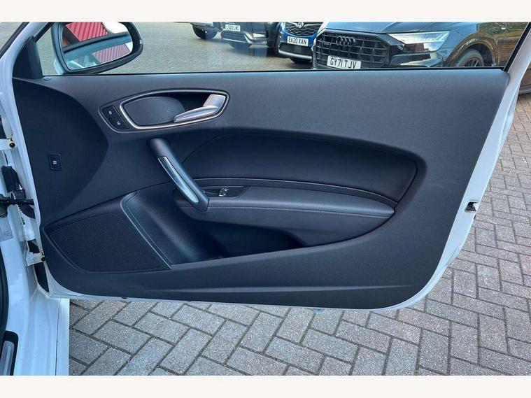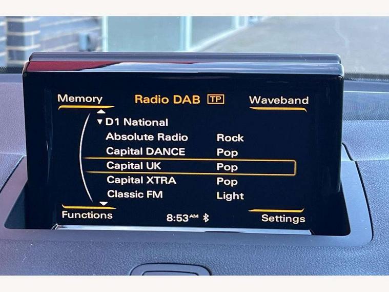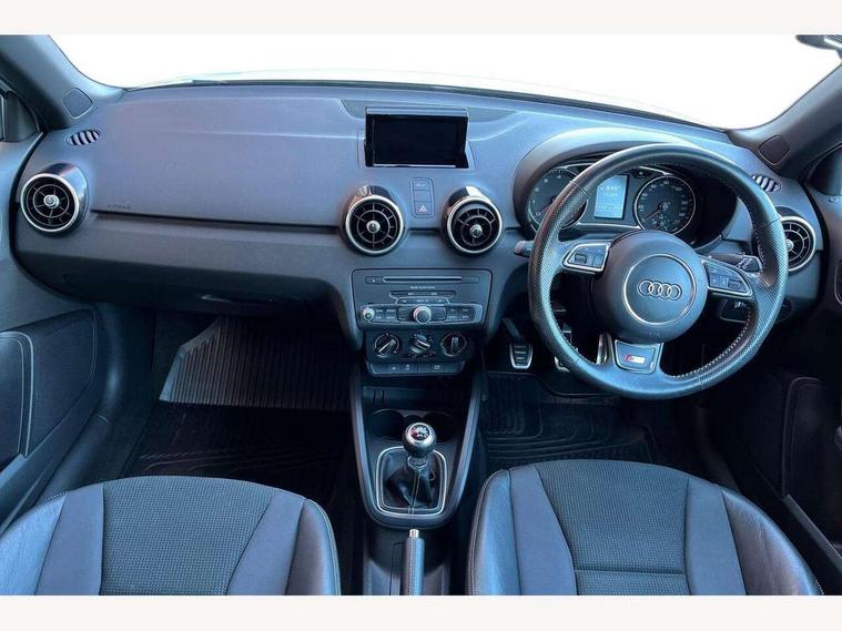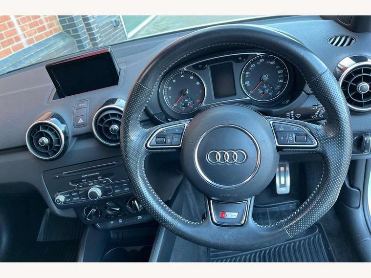 Audi drive select, Cruise control, Driver's information system, Electro-mechanical PAS, Low washer fluid indicator, Service interval indicator, Voice control system, Additional SD card reader, Audi music interface, Bluetooth audio streaming, DAB Digital radio, Adaptive brake lights, Body coloured bumpers, Body coloured door mirrors, Electric adjustable door mirrors, Electric front windows, Front fog lights, Heat insulating glass, Heated door mirrors, Heated rear windscreen, Rear diffuser, Rear wiper, Roof spoiler, S Line body styling, Xenon plus headlights including automatic headlights, LED daytime running lights, LED rear lights, dynamic range control and headlight washers, 12V Accessory socket in centre console, Adjustable rear head restraints, Black cloth headlining, Cupholders in centre console, Door sills trims with aluminium inlays, Front floor mats, Front head restraints, Front seats - 'Easy Entry', Height adjustable front seats, Illuminated glovebox, Isofix attachments on outer rear seats, Jack and tool kit, Leather handbrake, Lumbar adjustment for front seats, Rake/reach adjustable steering wheel, Split folding rear seats, Non smoking pack - A1, ABS/EBD, Brake assist function, Driver and passenger side airbags, Driver/Front Passenger airbags, EDL, ESP with ASR, First aid kit, Front and rear seatbelt reminder, Front passenger airbag deactivation, Head airbags, Height adjustable front seatbelts, Rear three point seatbelts x 2, Tyre pressure monitor, Warning triangle, Locking wheel bolts, Remote control central locking, Thatcham category 1 alarm + immobiliser, Tyre repair kit,