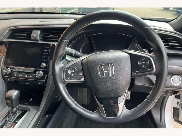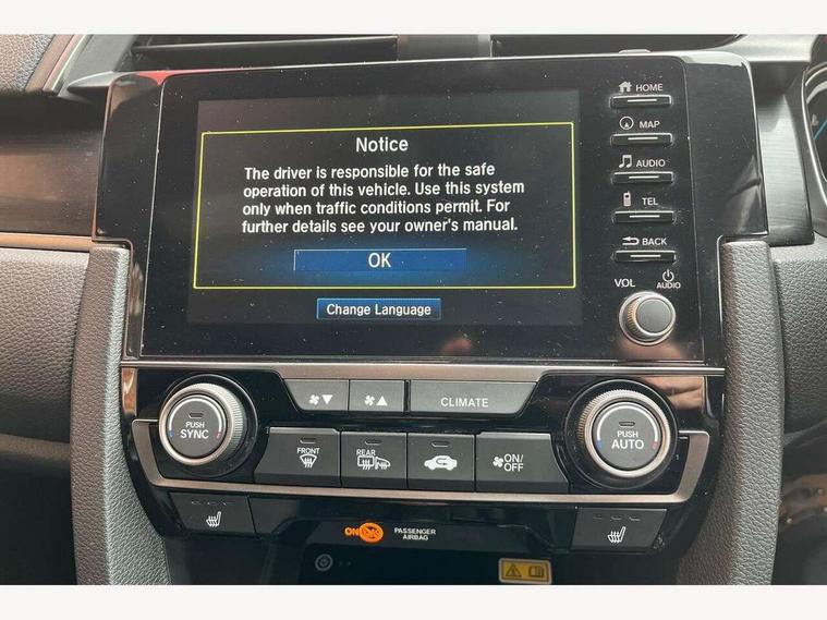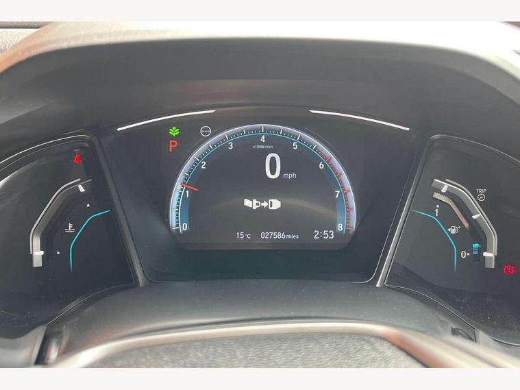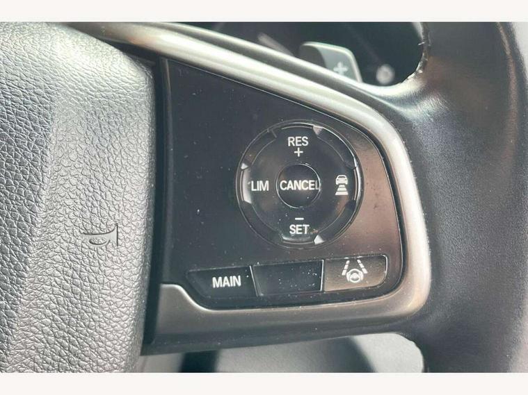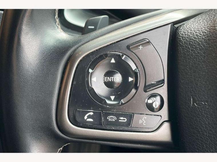 7" touch screen, Adaptive cruise control, Adaptive motion for electric power steering, Apple car play/Android Auto, BLIS (Blind Spot Information System) with dual power heated blind spot mirrors, Blue dashboard illumination, Bluetooth hands free telephone connection, Easy fuel capless refuelling system, Economy mode, Electric power steering wheel with variable gear ratio steering, Emergency stop signalling system, Forward collision warning, Front and rear parking sensors, Honda CONNECT with GARMN Navigation + 7" touchscreen, AM/FM, internet radio, aha app integration and internet browsing, Idle stop, Intelligent speed limiter, Lane departure warning system, Lane keep assist, Low speed following, Multi-information display, Rear parking camera, Road departure mitigation, Smartphone wireless charging plate, Traffic sign recognition, Adaptive damping system, Vehicle stability assist, 'Shark fin' mobile antenna, 11 speakers, 2x USB and HDMI, 465w Power audio system, Auxiliary socket for external MP3 player, Digital Audio Broadcast (DAB) Tuner, Premium audio system, Steering wheel mounted audio controls, Auto dimming rear view mirror, Automatic coming/leaving home lighting function, Automatic headlights with dusk sensor, Automatic rain sensing wipers, Black grille, Body colour door handles, Body colour door mirrors, Body coloured bumpers, Chrome window surround, Electric adjustable heated door mirrors, Electric front/rear windows/one touch operation, Electrically folding door mirrors, Fuel filler cap, Headlight washers, High beam assist, LED daytime running lights, LED front fog lights, LED Headlights, LED rear lights, Panorama glass roof, Power foldback door mirrors, Privacy glass, Rear spoiler, Rear wiper, Single exhaust tailpipe, 4 Cargo net hook, 60/40 split folding rear seat, Alloy pedals, Ambient light in roof, Blue meter illumination, Centre console storage and sliding armrest, Driver and front passenger seat electric lumbar adjustment, Driver's seat height adjustment, Driver/passenger front seatback pockets, Dual climate control air conditioning system, Front accessory power socket, Front map lights, Front/rear courtesy lights, Gear shift indicator, Glovebox light, Heated front seats, Heated rear seats, Isofix points, Isofix system on outer rear seats, Leather gear knob, Leather steering wheel, Leather upholstery, Luggage floor box, Paddle shift controls, Rear accessory power socket, Rear air vents, Rear armrest with cupholder, Shift indicator lighting (SIL), Sunvisors with illuminated vanity mirrors, Three height adjustable rear head restraints, Tilt/telescopic adjustable steering wheel, Tonneau cover, Trunk light, 5 three point seatbelts, ABS+EBD+Brake assist, Airbags - driver and front passenger, Anti-whiplash front headrests, Collision mitigation braking system, Deflation detection system, Driver SRS airbag (single stage inflation), Electronic parking brake with auto hold, Front and rear curtain airbags, Front and rear seat belts with emergency locking retractor (ELR), Front seatbelt pretensioners, Front side airbags, Hill start assist, Low speed safety system, Passenger airbag deactivate switch, Tyre pressure warning, Immobiliser, Mirrors and windows key fob, Security alarm, Selectable door unlock, Smart entry + Smart start, Superlocking, Ultrasonic security sensor, Black instrument panel, 17" Grey alloy wheels, Tyre repair kit,