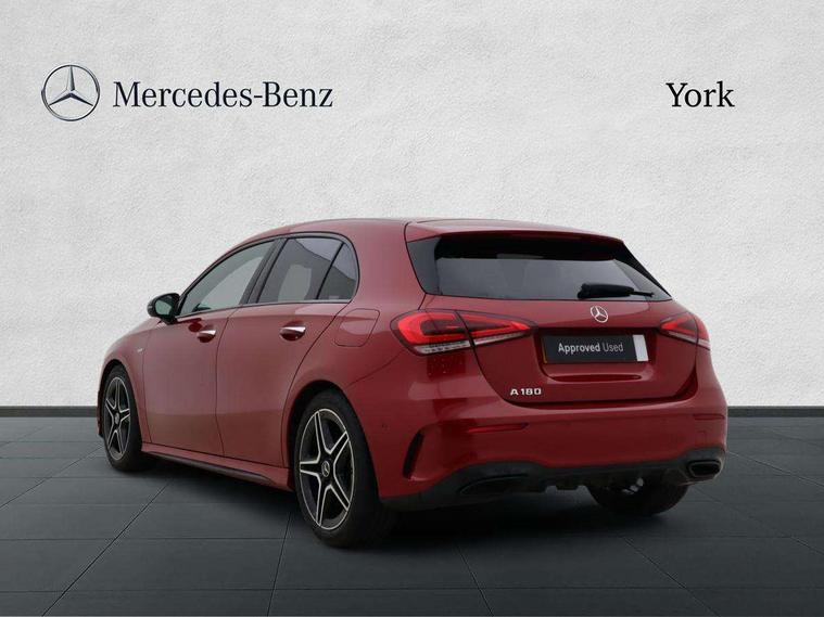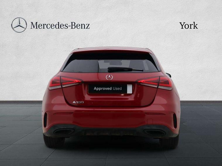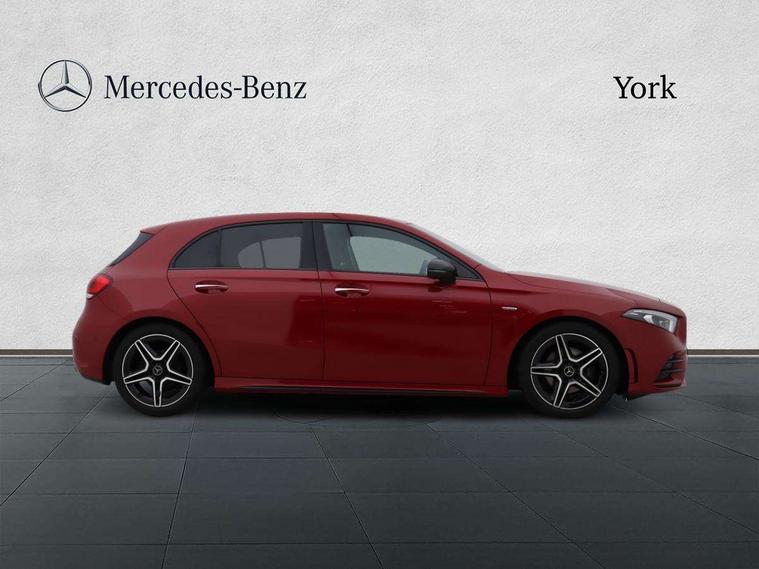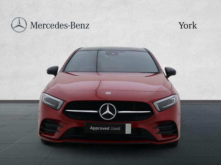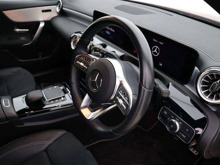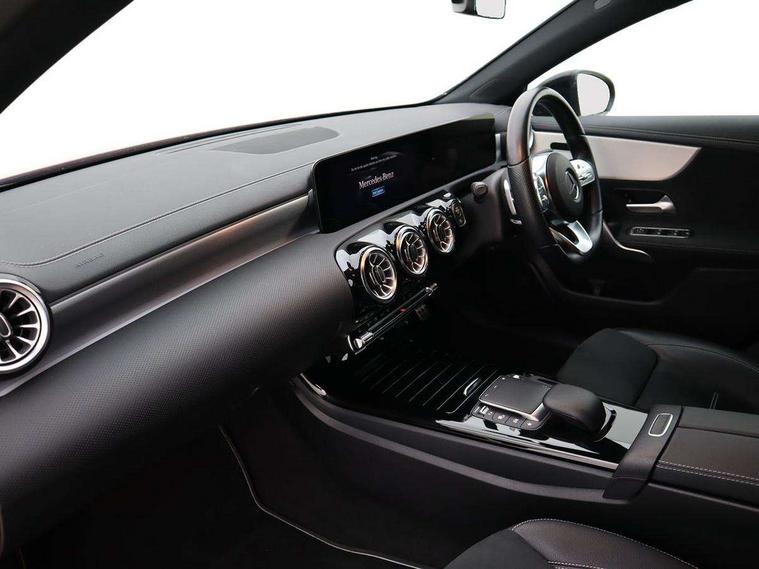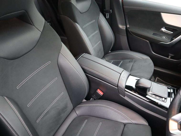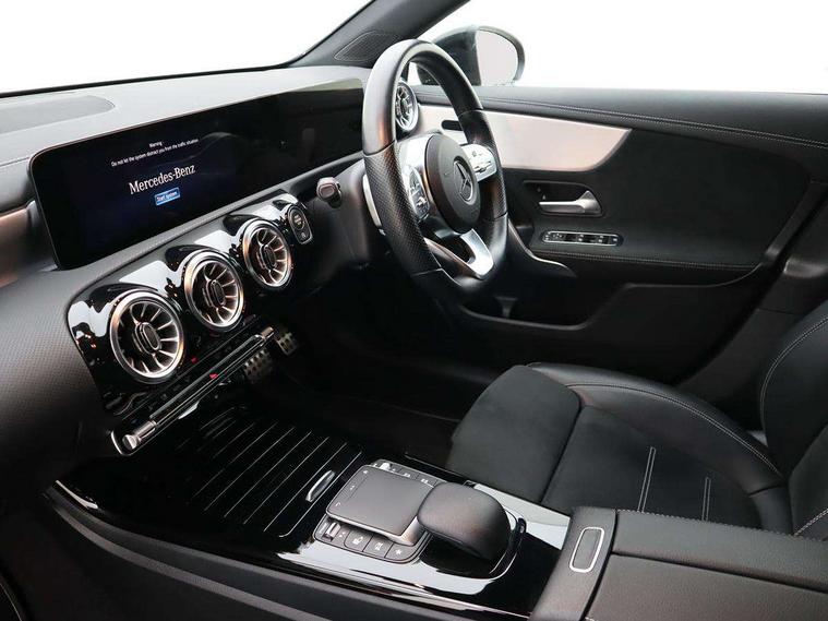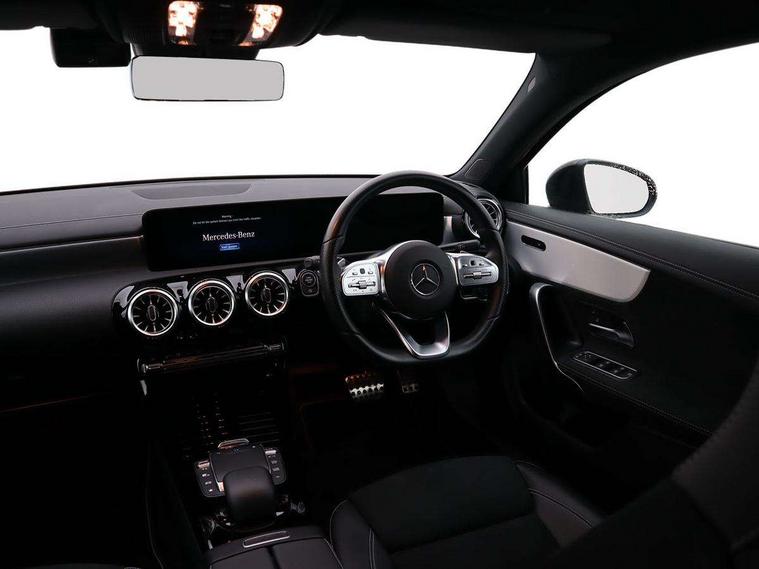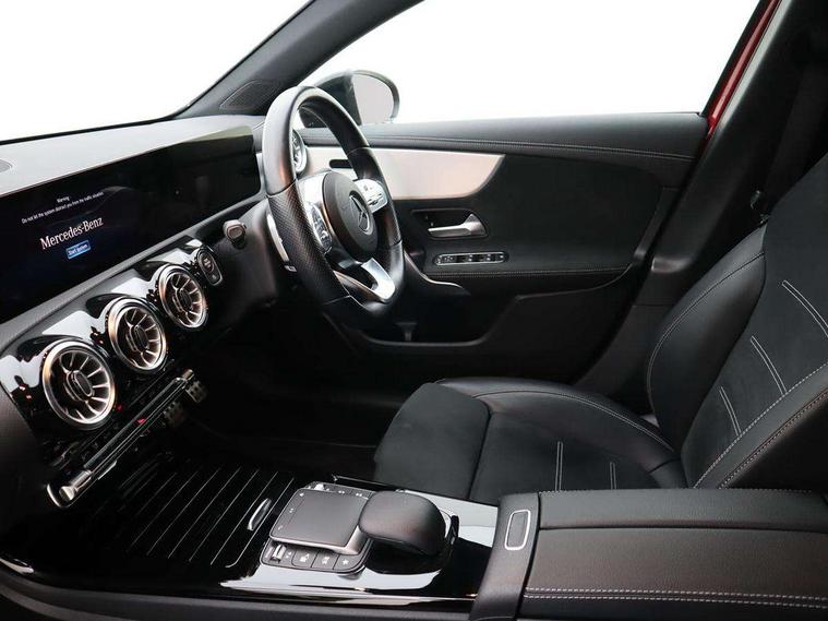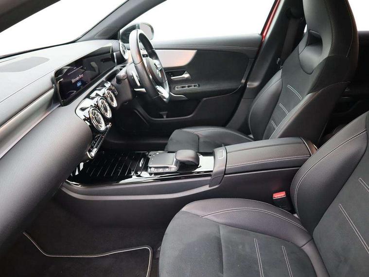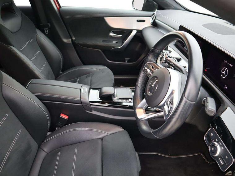 Ultrasonic sensors positioned in the front and rear bumpers, 10.25" Digital instrument cluster display screen, 10.25" media display, 180 degree rear view camera with parking guidelines, Active parking assist with visual and audible warning of detected obstacles, Attention assist, Brake pad wear indicator warning light, Car wash mode, Direct steering, Dual bluetooth interfaces, DYNAMIC SELECT with a choice of driving modes (ECO, Comfort, Sport and Individual), ECO start/stop function, Fluid level warning indicator for fuel, oil, coolant and washer fluid, Hard-disk navigation, Hey Mercedes Voice activation, Lamp failure indicator, Lane keeping system, Mercedes me connect including emergency call system, accident recovery, breakdown management and maintenance, Mercedes me remote services, Outside temperature gauge, Owners manual in English, Pre-installation for car sharing, Preinstallation for Mercedes Benz link, Service indicator (ASSYST), Smartphone integration with Apple CarPlay and Android auto, Traffic sign assist, Trip computer, Lowered comfort suspension, Rear axle torsion beam, 10 speakers, 2 USB ports (type C) in rear stowage compartment and one in front of center console, DAB Digital radio, MBUX multimedia system with DAB digital radio and touchpad including satellite navigation, Mercedes-Benz sound system - 100W, 4 Electric Front and Rear windows, Adaptive brake lights, AMG bodystyling - Front apron with splitter in chrome, rear apron with chrome trim and chrome visible trim elements in tailpipe, Automatic headlights, Black weather strip, Body colour bumpers, Body colour door handles, Body colour side skirt, Body coloured door mirrors, Electric adjustable and heated door mirrors with integrated LED side indicators, Exclusive diamond radiator grille, Exhaust system - Twin visible tailpipes in polished stainless steel, Headlamp assist automatic headlamp activation, Heated glass rear windscreen + timer control, High gloss black beltline, LED daytime running lights, LED High level third brake light, LED tail lamp, Multibeam LED headlights with adaptive highbeam assist plus, Panoramic sliding sunroof, Privacy glass, Radio aerial, Rain sensing windscreen wipers with two sensitivity settings, Rear fog lights, Rear side wing doors, Rear wiper, Window line trim strip in high gloss black, 3 seat bench in 2nd row, 3 Spoke flat bottom leather multi function steering wheel with perforated leather in grip area, 40:20:40 split folding rear seats, Artico man-made leather/Microfibre Dinamica upholstery with contrast stitching in light grey, Auto Mercedes-Benz child seat recognition sensor, Black air vents with surround in silver chrome, Black roof lining, Brushed stainless steel sports pedals with rubber studs, Controller on centre console with chrome surround, Floor mats with black top stitching and embroidered edition logo and piping in light grey, Front centre armrest with storage compartment, Front seat backs luggage nets, Front seat cushion length adjustment, Galvanished gear shift paddles on steering wheel, Heated front seats, Height/reach adjustable steering column, Illuminated front door sills with changeable cover, Interior lighting - 64 colour Ambient lighting, Interior mirror with reading lamps in black and frameless, ISOFIX and top tether child seat fixing points in two outer rear seats, Rear armrest with 2 cupholders, Rear head restraints, Seat occupancy sensor for front passenger seat, Single front passenger seat, Sports seats with integrated headrests, Stowage compartment in centre console with retractable cover, Sunvisors with illuminated vanity mirrors, Touchpad on center console, Twin front cupholders, Two zone thermotronic luxury automatic climate control, Light and sight pack - A Class, Mirror package - A Class, Night pack - A Class Saloon/Hatchback, Seat comfort pack - A Class, 3 rear 3 point seatbelts, ABS with Brake Assist, Active bonnet, Adaptive brake assist with hold function and hill start assist, Black seatbelts, Childproof locks manually operated for rear doors and electrically operated for rear power windows, Crash responsive emergency lighting, Driver and passenger head and side airbags, Drivers knee airbag, Dual stage driver/passenger airbags, Electronic parking brake, ESP curve dynamic assist, ESP with ASR, Front and rear seatbelt reminder, Front brake callipers with Mercedes Benz lettering, Tyre pressure monitoring system, Warning triangle and first aid kit, Window airbags, Alarm system/interior protection/immobiliser, Keyless entry lock/unlock, Keyless Go, Remote central locking and crash sensor with emergency opening function, Urban guard vehicle protection system with immobiliser and interior protection, Matrix look light longitudinal grain aluminium trim element, 18" AMG 5 twin spoke light alloy wheels aerodynamically optimised painted in black with highsheen finish, Summer tyres, Tirefit sealant kit,