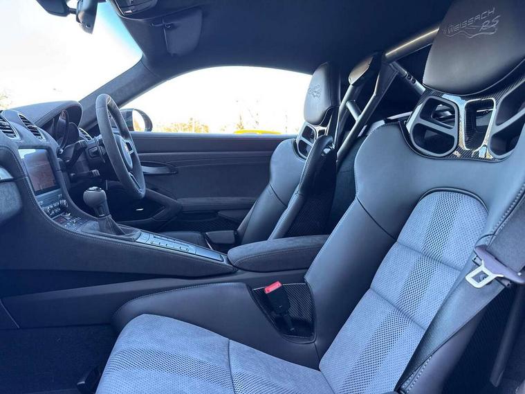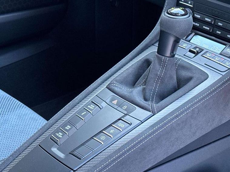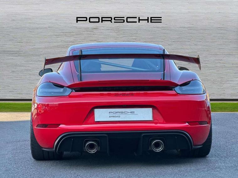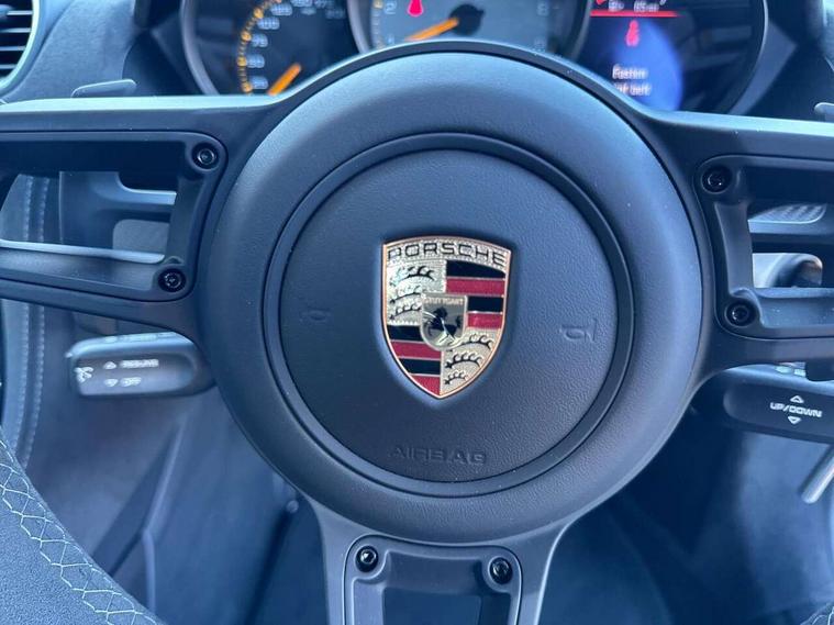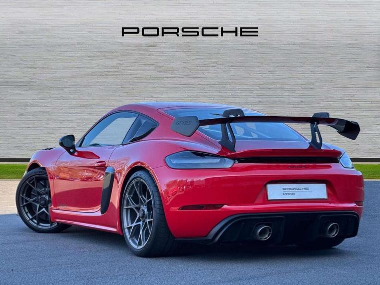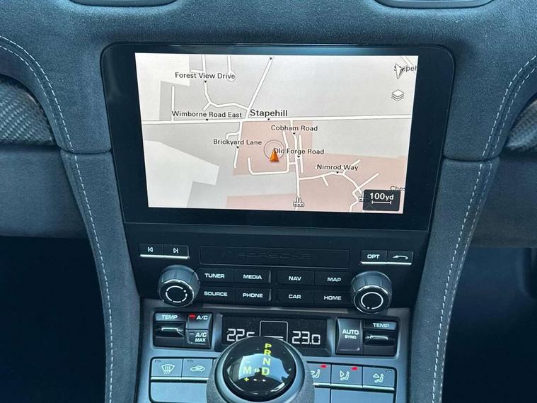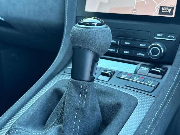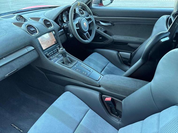 Auto start and stop system, Cruise control, Digital displays for vehicle speed, chosen gear, odometer, trip odometer and clock, eCall emergency call system, Electromechanical power steering with variable steering ratio and speed dependent steering assistance, Instrument cluster with central rev counter and high-resolution 4.6 inch colour display, Porsche track precision app, 64 litre fuel tank, Adjustable chassis for race track use (toe, camber, anti-roll bars), Adjustable race track chassis with RS specific spring rates and shock absorber tuning, Aluminium block and cylinder heads, Closed underbody panelling, Direct fuel injection (DFI), Dry sump lubrication with separate engine oil tank, Dynamic gearbox mount system, Electronically control damping system with 2 manual selectable Normal and Sport modes, Forged titanium connecting rods, Gasoline particulate filter, Oil supply with fully variable pressure oil pump, 7 suction stages, oil centrifuge and additional oil supply via crankshaft, Porsche Active Suspension Management (PASM) sport suspension with lowered 30mm ride height, Porsche Doppelkupplung (PDK) - 7 speed dual clutch transmission with manual control by steering wheel gearshift paddles and GT specific gear selector, Porsche stability management (PSM) including ABS with two switchable stages (ESC OFF and ESC+TC OFF), Porsche TORQUE Vectoring (PTV) with mechanical rear differential lock, Rear wheel drive, Two seater vehicle with mid mounted engine, Two three-way catalytic converters and on-board diagnostics for monitoring emission control system and coated particulate filter, Variable intake manifold with two switchable resonance valves, VarioCam Plus variable valve timing and switchable valve lift, Water cooled with thermal management, DAB Digital radio, Integrated 4G/LTE compatible SIM including data for the Porsche Connect Services, Integrated compatible SIM including Porsche Connect Services, Navigation incl porsche + Apple Carplay, connect module, wireless internet access, carfinder, remote vehicle status, remote service and vehicle track, USB interface in central storage compartment, Wifi and music streaming, Automatic headlight activation including welcome home lighting, Black side window trim, Body colour bumpers, Bonnet made of carbon fibre reinforced plastic (CFRP) in exterior colour with black NACA air inlets for brake cooling, Centre wheel bolts in black including wheel hub cover with RS logo in silver, Electrically adjustable heated exterior mirrors on door waist rails, aspherical on driver's side, Exclusive design fuel filler cap, Fixed rear spoiler, Flow optimized stainless steel lightweight sports exhaust system with 2 tailpipes made of stainless steel in high gloss black, Front apron with large cooling intakes with grilles and spoiler lip with recessed GT4 RS logo in black and central air outlet, Front wheel arches made of carbon fibre reinforced plastic (CFRP) in exterior colour including wheel arch ventilation in black, Green tinted heat insulating glass, Grey top tinted windscreen, Heated rear windscreen, Intelligent lightweight body in Aluminium/Steel composite construction, LED 3rd brake light, LED tinted taillights and integral 4-point brake lights and reversing lights, Porsche logo in accent trim on rear apron painted in satin black, Power windows with one touch operation and door seal protection, Rain sensor, Rear apron lower part in black with diffuser including fins, Rear boot, Separate tinted auxiliary lights in the front end with LED indicators and position lights, Side air intakes with one grille, sideblades including GT4 RS logo in black synthetic, Variable intake system with two switchable resonance flaps and six individual throttle valves, Wide opening rear hatch with rear screen made of lightweight glass, Windscreen washer system with aero wiper blades and washer jets, 12V sockets in passenger footwell, Adjustable fan with air recirculation and defroster functions, Airbox cover with GT4 RS logo in silver and black, Ascending centre console with uncovered storage compartment and closed storage compartment, Footwell illumination, Front and rear luggage compartments, Front headrests, Heated seats, LED reading lights, orientation, ignition lock, additionally luggage compartment and glove compartment lighting, Lightweight door panels with storage net in black and opening loops in arctic grey, Lockable glovebox, PDK gear changer lever with manual alley, grip area and shiift gaiter in Race tex, shift pattern in racing yellow, Race-Tex roof lining and A pillar trims, RS sport steering wheel, Single front passenger seat, Sports look pedal and footrest with stainless steel surround in matt brushed, Storage compartments in each doors, Two individual cup holders (Passenger side, integrated into dashboard trim strip), Two zone automatic climate control, Carbon interior pack in satin finish - Cayman, Interior pack with items in leather and Race-tex - Cayman, ASR, Electrically controlled parking brake, Front seatbelt pretensioners + load limiters, Full size driver and passenger airbags, Lightweight spring strut axle front/rear, McPherson front axle + lightweight springs incl helper, anti-roll bar, all suspension mountings ball jointed, Passenger airbag deactivate switch, Porsche side impact protection doors with thorax airbag in outer backrest side bolster and head airbag for driver/passenger in door panel, Tyre pressure monitoring system (TPM) with track mode, Alarm system with interior surveillance, Dashcam preparation, Engine immobiliser with in key transponder, central locking and remote control, Tyre repair kit,