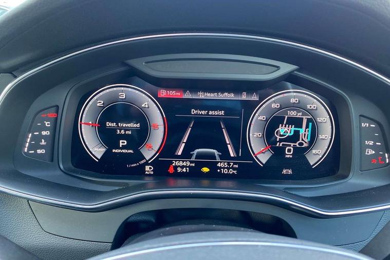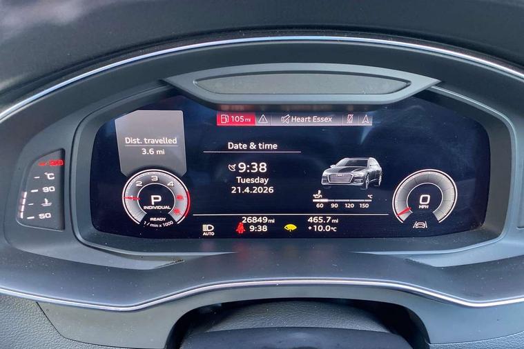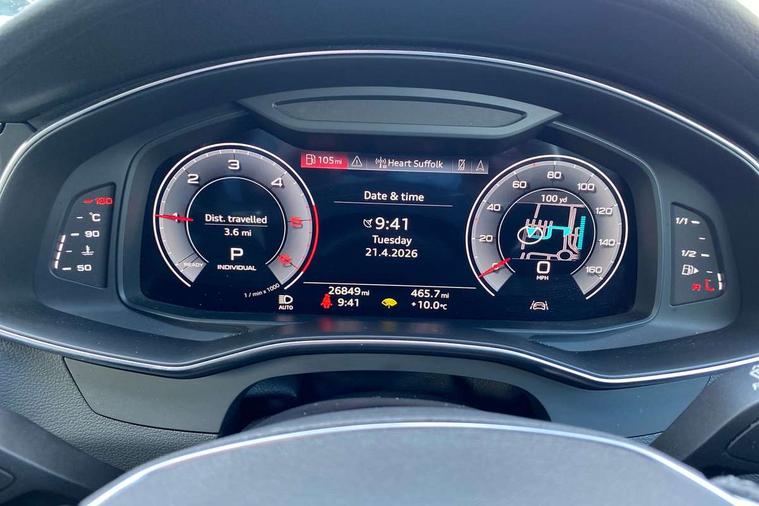 7" high resolution colour driver information display system, Audi connect safety and service (e-call), Audi drive select, Audi parking system plus - acoustic and visual park assist system for front and rear, Audi smartphone interface, Automatic start/stop system with coasting functionality, Bluetooth interface, Lane departure warning system, MMI navigation with MMI touch + twin touch screens 8.8" and 8.6" with haptic and acoustic feedback, Power operated tailgate, Progressive steering, Rear view camera, Service interval indicator, Voice control system, 12V Mild hybrid, 24 litre AdBlue tank, Diesel particulate filter, Quattro on demand, Sports suspension, Audi music interface, Audi sound system, Auxiliary input socket, DAB Digital radio, USB connection, Black roof rails, Electric front/rear windows, Frameless auto dimming interior rear view mirror, Gloss black exterior mirror housings, Gloss black highlights on the exterior area of the Audi Single frame, Gloss black highlights on the front and rear bumpers, Gloss black highlights on the radiator grille, Gloss black highlights on the side windows trim strips, Headlight washers, Heat insulating glass in side and rear windows, Heat insulating glass in windshield, LED rear lights, LED signature front daytime running light, Matrix LED headlights with dynamic rear indicators, Matt black rear diffuser with diffuser strip and tailpipes in chrome, Matt black side air intake grille with inlay in matt aluminium, Privacy glass, Rain and light sensors, Rear roof spoiler, Signature rear LED light design, 2 zone deluxe electronic climate control, 4 way electric lumbar support for driver and front passenger, 40/20/40 split folding 3 rear seat bench in 3 parts with rear centre armrest, Black cloth headlining, Electrically adjustable front seats with driver memory, Front centre armrest, Front head restraints, Front/rear floor mats, Heated front seats, Height/reach adjust steering wheel, Illuminated door sill trims with S logo, Illuminated sun visors with vanity mirrors, ISOFIX child seat mounting and Top Tether with front passenger airbag deactivation, Leather gear knob, Luggage compartment system, Rear headrests, Stainless steel pedals and foot rest, Tool kit and car jack, LED Interior Ambient Lighting Pack - A6, Non smoking pack - A6, 3 point seatbelts on all seats, Airbags - Front side, front and rear including head, Audi pre-sense front, Black seatbelts, EBD - Electronic brakeforce distribution, Electromechanical parking brake, Electronic Stability Control (ESC) including ABS, ASR and EDL, Extended pedestrian protection measures, Seatbelt monitoring, Tyre pressure warning light, Warning triangle and first aid kit, Anti theft alarm with tow away protection, Anti-theft wheel bolts and wheel loosening detection, Immobiliser, Keyless Go, Remote central locking, Matt brushed aluminium dark inlays, 20" 5 V spoke star design Audi sport cast aluminium alloy wheels in matt titanium look,