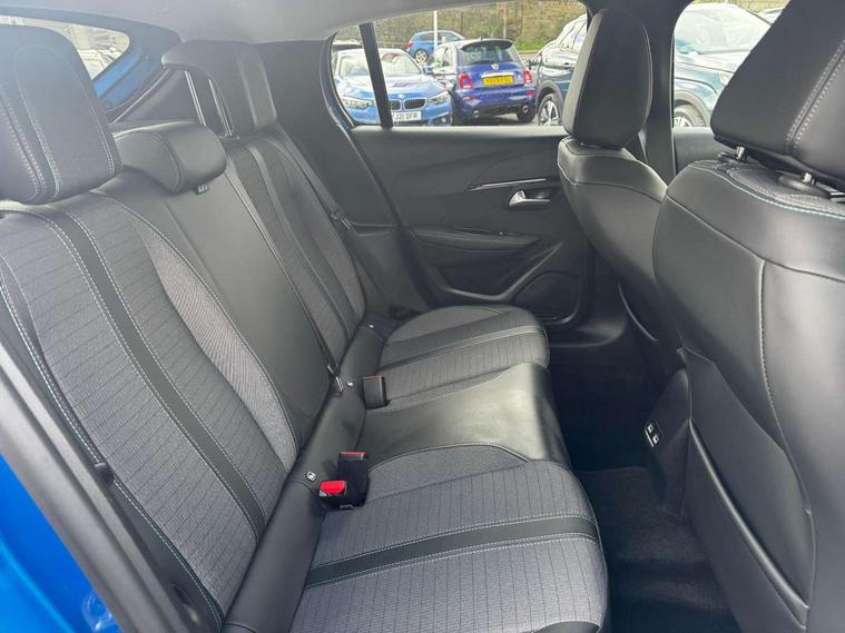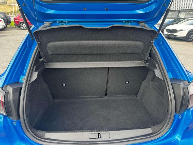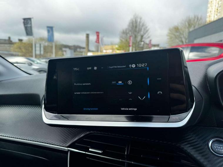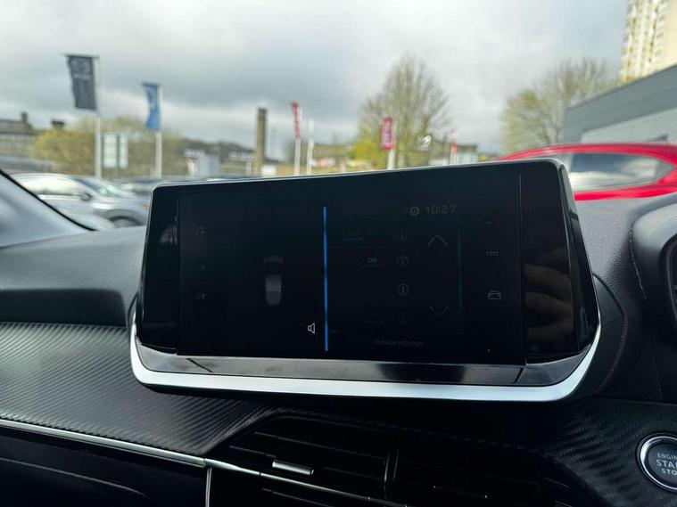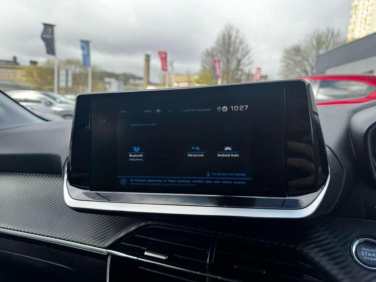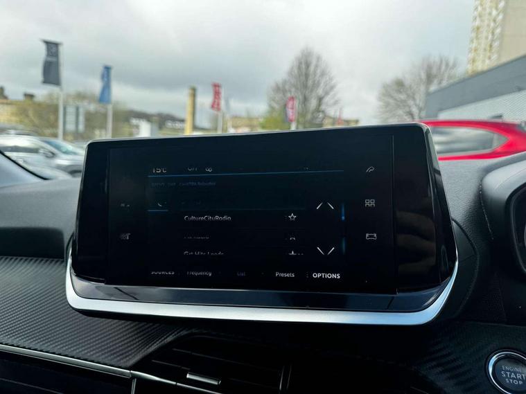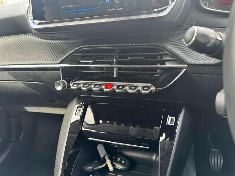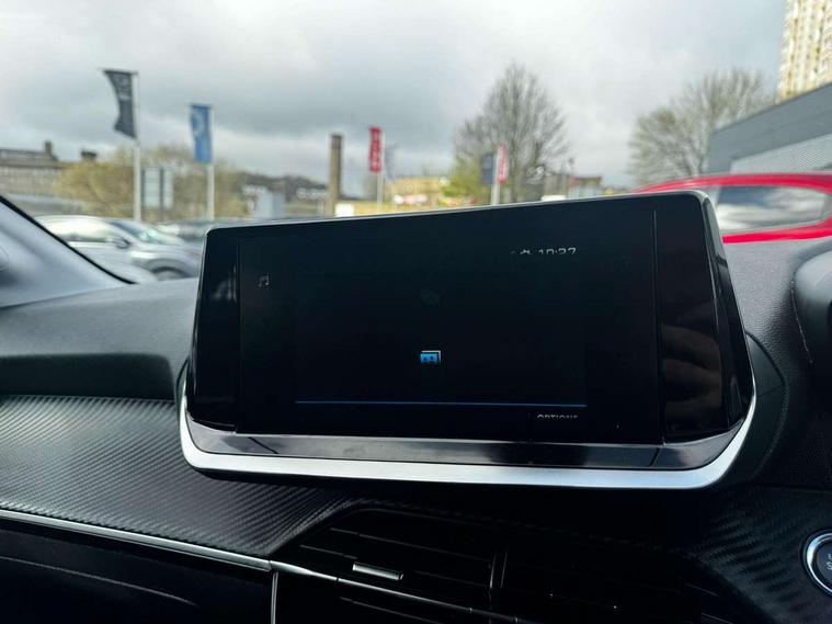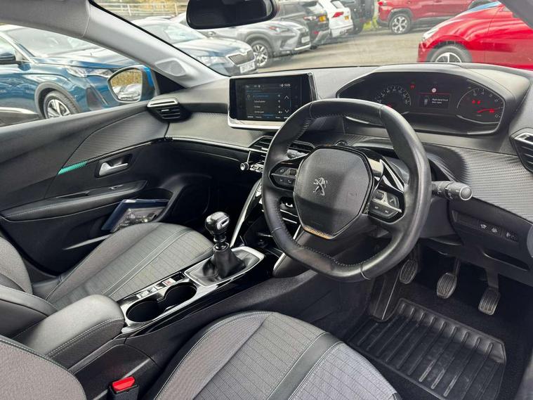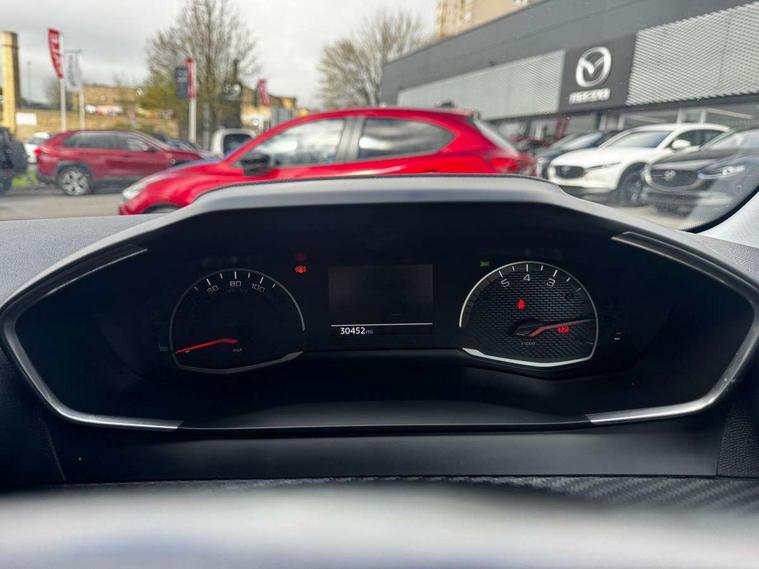 Carbon effect Dashboard, front and rear door panel finish, 16" Soho diamond cut alloy wheels, Tyre puncture repair kit, Acoustic vehicle alert system (AVAS), Automatic door locking when moving off, Automatic hazard light activation upon heavy brake application, Deadlock, Electronic code immobiliser, Thatcham cat. 1 alarm with anti lift sensor, 2 front USB socket with USB-C, 2x USB sockets in rear, 6 speakers radio with mp3 compatible, DAB Digital radio, Voice recognition for radio, navigation and telephony features, 2x Isofix child seat fitting on outer rear seats, 3 rear 3 point seatbelts, ABS (Anti-lock Braking System) with EBD (Electronic Braking Distribution) and EBA (Emergency Braking Assistance), Adaptive driver and front passenger airbags with passenger airbag deactivation function, Child locking functionality on rear doors, Driver/front passenger side airbags, Electric parking brake, ESP with Hill Assist, Front and rear curtain airbags, Front and rear disc brakes, Front optimised safety headrests and 3 x rear retractable headrests with height adjustable, Front three point retractable seatbelts with force limiters, Pedestrians active safety brake, Tyre pressure sensor, 2 X Rear number plate lights, 3rd brake light, Automatic lights, Automatic windscreen wipers, Body coloured exterior door handles, Colour coded door mirror shells, Dark tinted Rear side and tailgate windows, Diamond black rear spoiler, Eco LED headlights, Electric front windows + one touch + anti-pinch, Electric rear windows with one touch/anti-pinch, Electrically adjustable, heated and power folding door mirrors, Electrochrome rear view mirror, Follow me home headlights, Gloss black finish on B pillar, Gloss black rear cluster connecting strip, Headlights left on audible warning, LED daytime running lights with distinctive tooth design, Model designation badges front and rear, Radiator grille chrome chequered, Rear bumper with gloss black finish, Rear full LED 3D peugeot signature claw effect lights with daylight function, Rear reversing lights, Rear side wing doors, Rear windscreen wiper triggered automatically in reverse gear, Roof mounted aerial, Tailgate with heated rear windscreen and wiper blade, 1/3 to 2/3 split folding rear seats, 12V socket, 3 seat bench in 2nd row, Automatic air conditioning, Driver and front passenger comfort seats, Driver and front passenger seat manual adjustment in longitudinal and back rest angle, Driver seat mechanical height adjustment, Electric power steering with reach and rake adjustable steering column, Front centre armrest with storage compartment, Front interior light with 2 reading spotlights, Gear shift indicator, High centre console with 2 cup holders, Leather steering wheel, Map pockets on the backs of the front seats, Piano keys gloss black plated toggle switches to access main functions of the vehicle, Roof lining - light grey, Satin chrome gear lever, Seatbelt unfastened on the move audible and visual alert for front and rear seats, Single front passenger seat, Tri material cloth/leather upholstery, Bluetooth telephone facility, Driver attention warning, Exterior temperature indicator with ice warning, Lane keep assist, Mirror screen with mirror link, apple carplay and android auto, Multi function trip computer, Peugeot connect SOS and assistance, PEUGEOT i-Cockpit with 3.5" instrument panel display, PEUGEOT i-Cockpit with compact steering wheel, Programmable cruise control and speed limiter, Push button start, Rear parking sensors, Smart phone docking station, Speed limit recognition and recommendation,