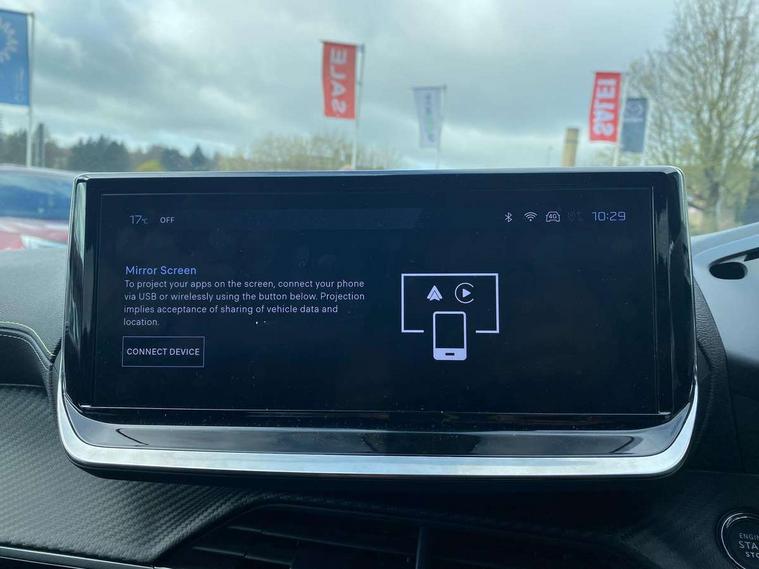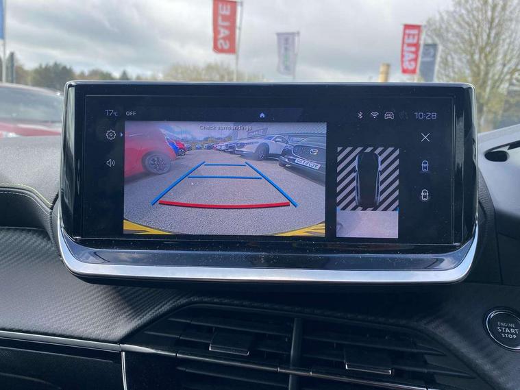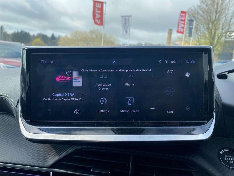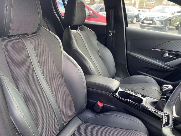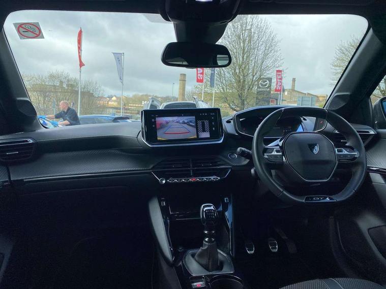 Bluetooth telephone facility, Drive mode select (Eco/Normal/Sport), Driver attention warning, Emergency call service, Exterior temperature indicator with ice warning, Front and rear parking sensors, Multi function trip computer, PEUGEOT i-Cockpit with 10" configurable 3D colour head up instrument panel, PEUGEOT i-Cockpit with 10" HD capacitive colour touchscreen, PEUGEOT i-Cockpit with compact steering wheel, PEUGEOT SOS and assistance, Push button start, Smart phone docking station, Smartphone 15W wireless charging plate, Speed limit recognition and recommendation, Start/stop system, Wireless mirror screen with apple carplay and android auto, 6 Speakers - 2 tweeters and 4 door speakers, DAB Digital radio, Peugeot i-connect infotainment system - 10in HD touchscreen, AM/FM/DAB digital radio, Wifi Mirroring, Bluetooth & 2 USB connection, USB-A socket (x1) and USB-C socket (x1) - rear, USB-C data and charge socket and USB-C charge socket in front, Voice recognition for radio, navigation and telephony features, 2 X Rear number plate lights, Acoustic windscreen, Antenna - Gloss Black 'fin' design, Automatic hazard light activation upon heavy brake application, Body coloured exterior door handles, Dark tinted rear side and tailgate windows, Diamond black rear spoiler (roof), Door sills protection with PEUGEOT signature lettering, Electric heated and power folding door mirrors with courtesy floor lighting, Frameless electrochrome interior rear view mirror, Full LED headlights with automatic height adjustment and PEUGEOT smartbeam assist, Gloss black B pillar, Gloss black door mirror shells, Gloss black front bumper grille with body colour accents, Gloss black rear cluster connecting strip, Gloss black wheel arch extensions, Gloss black window weatherstrips, GT model designation badging on C pillar, GT model designation badging on tailgate, Headlights left on audible warning, LED 3 claw horizontal rear lighting signature (with daylight function) and LED brake lights, indicators and reversing lights, LED daytime running lights with distinctive 3 claw signature, LED front indicators, LED third brake light, Model designation badges front and rear in basalt grey, One touch electric front/rear windows with pinch protection, Rear bumper with gloss black finish, Rear reversing lights, Rear side wing doors, Rear windscreen wiper triggered automatically in reverse gear, Roof spoiler, Tailgate with heated rear windscreen and wiper blade, Variable front intermittent wipers, 1/3 to 2/3 split folding rear seats, 12V socket, 3 seat bench in 2nd row, 8 Colour personalisable ambient lighting, Adamite green contrast stitching to front and rear armrest, front centre console, dashboard facia, Aluminium pedals, Automatic mono zone climate control air condition, Boot lighting, Driver and front passenger dynamic seats, Driver and front passenger seat manual adjustment in longitudinal and back rest angle, Driver and front passenger seat mechanical height adjustment, Driver and passenger sun visors, front footwells and central storage with LED lighting, Electric power steering with reach and rake adjustable steering column, Front centre armrest with storage compartment, Front LED interior light, front LED reading spotlights(x2), rear LED reading spotlight(x2), Gear shift indicator, High centre console with 2 cup holders, Luxury carpet mats, Map pockets on the backs of the front seats, Multi function full grain perforated leather steering wheel with adamite green stitch detail and 'GT' emblem, Passenger seat height adjuster, Piano keys gloss black plated toggle switches to access main functions of the vehicle, Rear centre headrest, Roof lining - Mistral black, Seatbelt unfastened on the move audible and visual alert for front and rear seats, Single front passenger seat, Visibility pack - 208, 2x Isofix child seat fitting on outer rear seats, 3 rear 3 point seatbelts, ABS (Anti-lock Braking System) with EBD (Electronic Brakeforce Distribution) and EBA (Emergency Braking Assistance), Active safety brake with night function/cyclists/pedestrians, Child locking functionality on rear doors, Driver and front passenger airbag with passenger airbag deactivation, Driver/front passenger side airbags, Electric parking brake, ESP with Hill Assist, Front and rear curtain airbags, Front and rear disc brakes, Front optimised safety headrests and 3 x rear retractable headrests with height adjustable, Front three point retractable seatbelts with force limiters, Remote plip(x2) for locking, unlocking, includes emergency key blade, Tyre pressure monitoring system, Acoustic vehicle alert system (AVAS), Alarm - Connected, volumetric , perimetric, anti lift sensor, Automatic door locking when moving off, Deadlock, Electronic code immobiliser, Peugeot Open and Go System, Remote central locking, Carbon effect Dashboard, front and rear door panel finish, 17" Yanaka two tone diamond cut alloy wheels wheels includes gloss black inserts, Space saver spare wheel,
