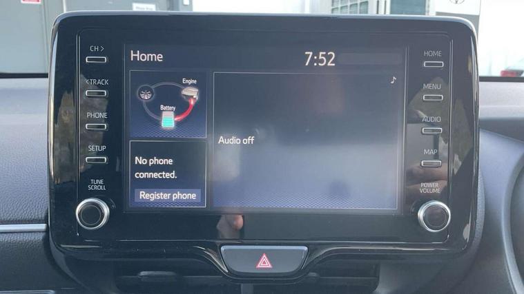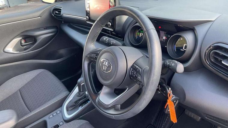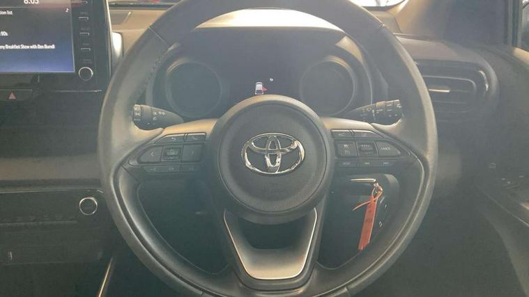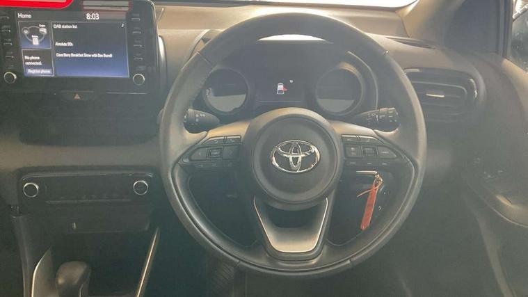 Adaptive cruise control, Adjustable speed limit with speed warning, Bluetooth connectivity, Colour binocular inspired displays with digital speedometer, E-call, Electric power steering, Hybrid energy display, Multi information display switches on steering wheel, Reversing camera, Smartphone integration with Apple CarPlay and Android auto, Tailgate, Voice recognition, Vehicle Stability Control (VSC), 4 speakers, 8" Multimedia display touch screen, USB connection, Acoustic windscreen glass, Auto windscreen wipers, Automatic headlights, Body coloured door mirrors, Electric adjustable heated door mirrors, Follow me home headlights, Front auto power windows with anti jam protection, Full LED rear lights, LED daytime running lights, LED front fog lights, LED front light guide, LED Headlights, LED High mounted stop lamp, LED Indicators, LED rear light guide, Manual headlight levelling, Painted chequered front grille, Rain sensor, Rear auto power windows with anti jam protection, Rear privacy glass, Rear side wing doors, Rear spoiler, Rear wiper, Shark fin antenna, Turning signal integrated indicators in door mirrors, Variable front intermittent wipers, 3 adjustable rear headrests, 3 spoke leather steering wheel, 60/40 split folding rear seat, Active headrests, Adjustable boot height, Auto air conditioning, Coat hooks in rear grab handles, Cup holders (2 front & door), Data Communication Module (DCM) connected services, Fabric upholstery, Front armrest, Glovebox, Grey roof lining, Height adjustable driver's seat, Isofix seat fixing, Leather gearshift, Pollen filter, Shopping bag hooks, Single front passenger seat, Tilt/telescopic steering column, 3 point seatbelts on all rear seats, ABS+EBD+Brake assist, Electronic parking brake, Emergency brake light system (EBS), Front passenger airbag on/off switch, Front seatbelt reminder, Hill start assist control (HAC), Rear child proof door locks, Rear seat belt reminder, Supplemental Restraint System (SRS) 8 airbags: Driver & passenger's airbags, dual side curtain airbags, side impact airbags, front centre airbag, Toyota Safety Sense 2, Precollison + Night time Pedestrian & Cyclist Detection, Lane Trace Assist, Auto High Beam, Intelligent ACC & Road Sign Assist, Tyre pressure warning system, 2x Master key, Alarm/immobiliser, Remote powered central double locking doors, Soft touch instrument panel, Space saver spare wheel,