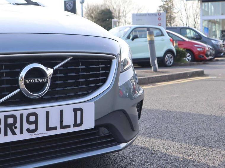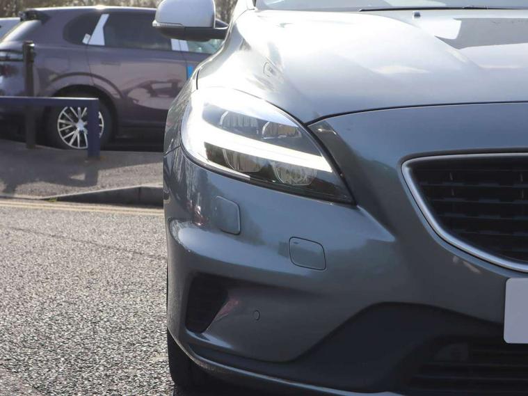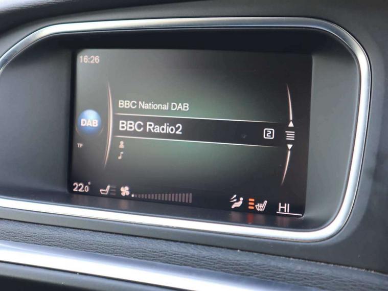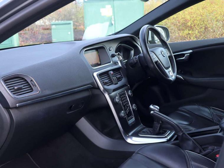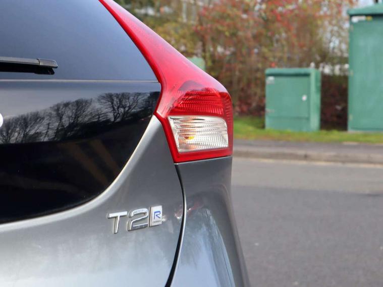 Active TFT crystal driver's instrument display, Front park assist, Information centre, Intelligent driver information system (IDIS), Rear park assist, Rear parking camera, Sensus navigation system, Service interval indicator, Speed limiter, Speed sensitive steering, Dynamic chassis, DAB Digital radio, Steering wheel audio controls, Active bending LED headlights, Adaptive brake lights, Auto dimming rear view mirror, Automatic folding door mirrors with ground lights, Automatic headlights, Body colour bumpers, Body colour door handles, Dark tinted rear side windows, Dual exhaust pipes, Electrically adjustable and heated door mirrors, Frameless rear view mirror, Front and rear electric windows, Headlamp levelling, Headlight cleaning system, High level LED brake light, Home safe and approach lighting, LED daytime running lights, LED Headlights, Matt silver finish door mirrors, R Design front grille, R Design lower front nose, Rain sensor windscreen wipers, Rear diffuser, Rear tailgate emblem, Rear wiper, Roof spoiler, Silk metal window trim surround, Visible VIN plate, 12V socket in front + rear tunnel console, 3 spoke leather steering wheel with chrome trim and R design logo, 5 headrests, 60/40 split folding rear seat, A-pillar parking ticket holder, Adjustable front centre armrest, Charcoal headlining, Door sill tread plates, Electronic climate control (ECC), Flexible load floor and grocery bag holder, Folding front passenger seat with height/lumbar adjust, Footwell lights, Front cupholders, Front door step lamp, Front reading lights, Front sports seats, Front storage box, Height adjustable drivers seat with lumbar support, Height/reach adjustable steering column, Illuminated driver/passenger vanity mirrors, Illuminated gear knob, Isofix attachments on outer rear seats, Load cover, Lockable glovebox, Pollen filter, R Design leather sports upholstery, Rear armrest with cupholder, Rear reading lights, Rear theatre lighting, Sports floor mats, Sports pedals, WHIPS - Whiplash Protection System, 5 x 3 point seatbelts, ABS+EBA, City safety braking system, Drivers knee airbag, DSTC-Dynamic Stability and Traction Control, Dual stage driver's airbag, Dual stage passenger airbag, Front/rear seatbelt pre-tensioners, Hill start assist, Inflatable curtain, Manual rear child locks, Passenger airbag cut-off device, Pedestrian airbag system, Side airbags, Side curtain airbags, Side impact protection, Tyre pressure monitor, Warning triangle, Anti-theft alarm including immobiliser/volume sensor + level sensor, Deadlocking system, Key integrated remote control central locking, Locking wheel nuts, Stealth aluminium trim,