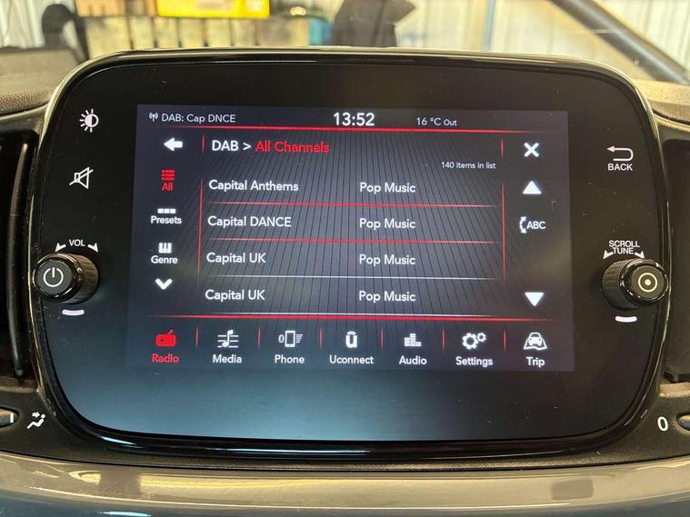 Apple car play/Android Auto, Cruise control, E-call, External temperature gauge, Power assist steering, Rear parking sensor, Speed limiter, Stop/start system, Trip computer, 4 speakers, 7" HD Touchscreen Radio, Bluetooth, USB and DAB, Rear speakers, 3rd brake light, Auto headlights, Body colour bumpers, Body coloured electrically adjustable door mirrors, Chrome plated exterior door handles, Dolcevita badge on fender, Dusk and rain sensors, Electric front windows, Fixed glass sunroof with sunblind, Front fog lights, Halogen headlamps, Heat insulated glass, Heated rear windows with wash wipe, LED daytime running lights, Rear side wing doors, Rear wiper, 1 passenger grab handle, 2 seat bench in second row, 50/50 split folding rear seats with height adjustable rear headrests, Air conditioning, Auxilliary 12V power socket, Chrome kit, Front headrests, Height adjustable drivers seat, Height adjustable steering wheel, Isofix child seat preparation, Single front passenger seat, Techno leather steering wheel with audio controls, 7 airbags - Driver, passenger, side, window and drivers knee airbags, ABS/EBD, ESC + ASR/MSR + HBA + Hill holder, Manual passenger airbag deactivation function, Traction control, Tyre pressure monitoring system, Automatic door locking, Immobiliser, Locking fuel filler cap, Remote central locking, 15" Alloy wheels,