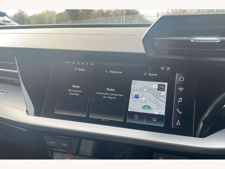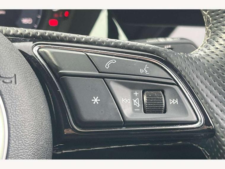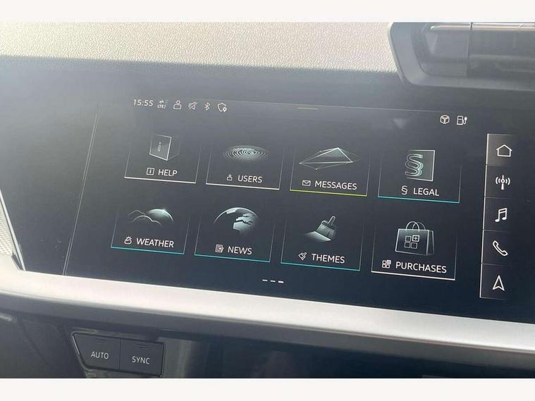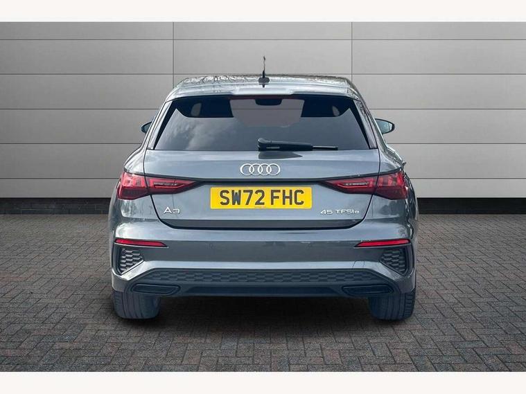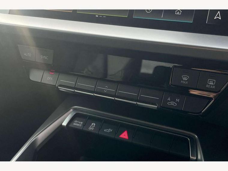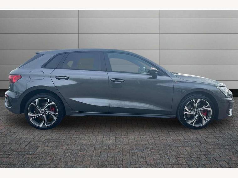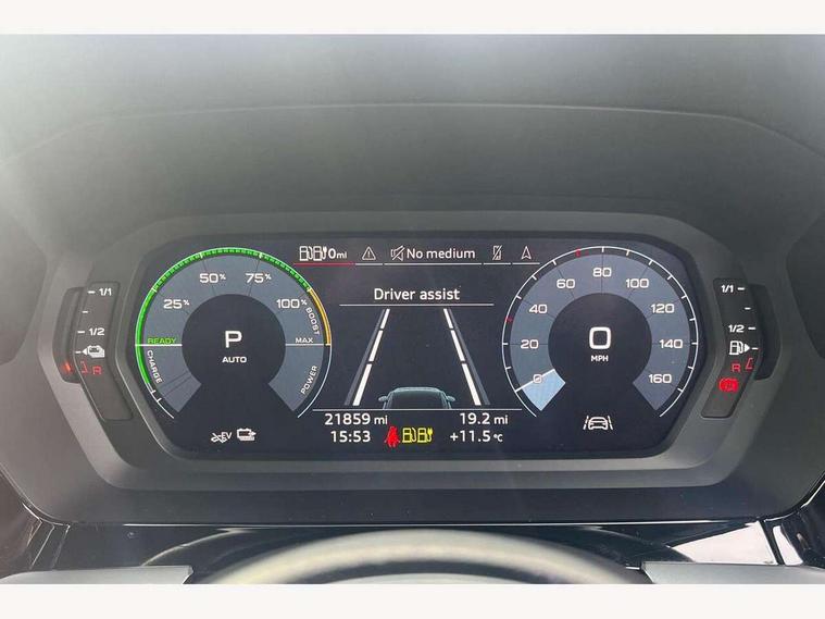 Audi drive select (Auto, Comfort, Dynamic, Efficiency and Individual), Audi smartphone interface, Audi Virtual Cockpit - 10.25" digital and colour instrument cluster, Automatic start/stop system with recuperation, Bluetooth interface, Collision avoidance assistant, e-Call (emergency call), Electromechanical power speed sensitive steering, Lane departure warning system, MMI Navigation Plus with high resolution 10.1" colour touch screen display, Service indicator, Trip computer, Voice control system with natural language interaction, 2.9 kW On-board charger, 3 pin 10 amp domestic charging cable, Standard suspension, Type 2 mode 3 32 amp charging cable, Type 2 socket for AC charging, 2xUSB-C connection with data and charging functions, 6 passive loudspeakers, DAB Digital radio, 3rd brake light, Acoustic glass windscreen, Aluminium window trim, Auto dimming frameless rear view mirror, Electrically adjustable/heated/folding/auto dimming door mirrors with integrated LED indications + kerb view function for passenger side, Front electric windows, Illuminated aluminium inserts front door sills with S logo, LED daytime running lights, LED headlights with LED rear lights and dynamic rear indicators, Light and rain sensors, Privacy glass - dark tinted rear window, rear door and side windows, Rear electric windows, Rear side air outlets in grained matt black, Rear side wing doors, Rear wiper, S line bumpers, S roof spoiler, 12V socket and storage compartment in front centre console, 3 seat bench in 2nd row, 40/20/40 split folding rear seat bench with cupholder, Black cloth headlining, Dual zone electronic climate control, Front and rear centre armrest in leather, Front and rear headrests, Front/rear floor mats, Height and reach adjustable steering wheel, Illuminated vanity mirror, Interior lighting - glove compartment light and right hand side, Luggage compartment floor covering, Manual boot compartment lid, Manually adjustable front seats, Seat side bolsters, Single front passenger seat, Stainless steel pedals and front footrest in black, Twin leather upholstery with front sports seats S embossed logo, Aluminium interior elements pack - A3 Sportback, Black styling pack - A3 Sportback, LED interior lighting pack - A3 Sportback, S line styling pack - A3 Sportback, 3x3 point rear seat belts, Audi pre sense front, Driver and front passenger airbag with passenger airbag deactivation, Electronic Stabilisation Control (ESC) including ABS, ASR and EDL, First aid kit with warning triangle and 2 safety vests, Front side airbags with head airbags and interaction airbag, Pre-sense front with pedestrian and cyclist detection, Red brake calipers, Seatbelt monitoring, Tyre pressure loss indicator, Anti theft alarm, Anti-theft wheel bolts, Electronically operated child lock, Immobiliser, Remote control central locking, Accent surfaces in the dashboard and centre console in platinum grey silk effect paint finish, Dark spectrum aluminium inlays, Tool kit, Tyre repair kit,