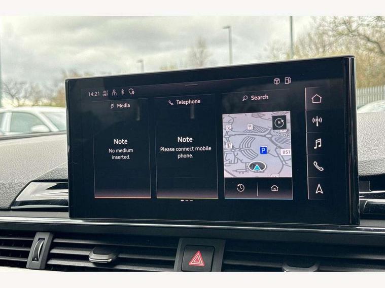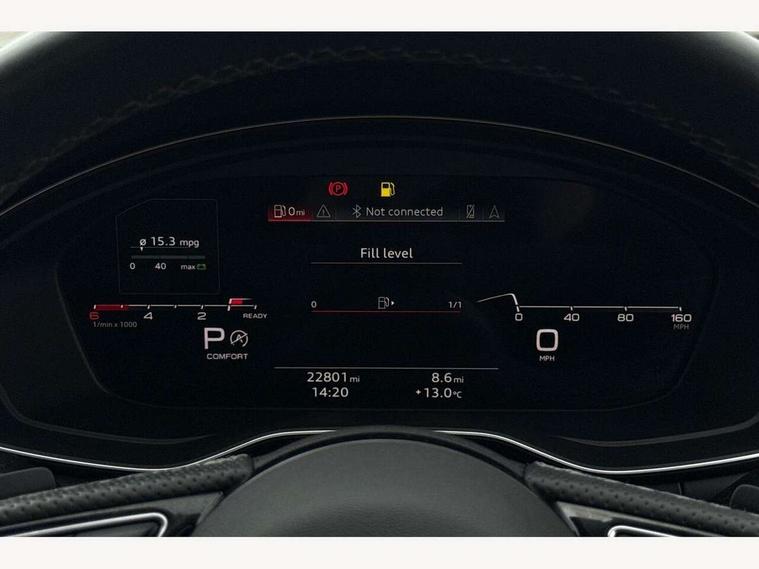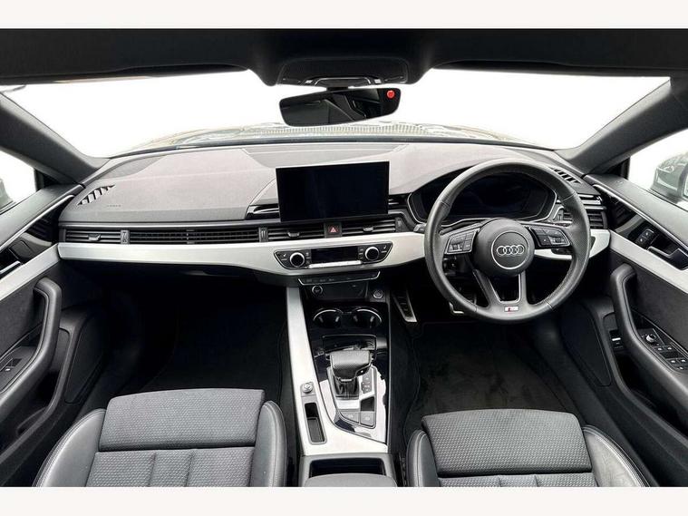 Audi connect safety and service (e-call), Audi connect with Amazon Alexa Integration, Audi drive select (Auto, Comfort, Dynamic, Efficiency and Individual), Audi parking system plus with front and rear sensors, Audi smartphone interface, Audi virtual cockpit - 12.3" full colour digital instrument cluster, vehicle/engine speed, Radio/media information+Driver assistance systems, Automatic start-stop system with coasting functionality and efficiency programme, Bluetooth interface, Electro-mechanical power steering, Email, calendar and text messages displayed via MMI, MMI nav+ with MMI touch - 10.1" high resolution MMI display, touch sensitive, 3D map, route/country info, dynamic route guide, personal route assist, Power operated tailgate, Rear view camera, Service interval indicator, Voice control system, Diesel particulate filter, Sports suspension lowered by 23mm, 8 passive loudspeakers, CD player, DAB digital radio reception, Two additional USB ports for rear passenger in rear centre console, Two SDXC card slots, Audi matrix LED headlights with LED rear lights + dynamic front and rear indicators, Auto dimming door mirrors, Auto dimming rear view mirror, Body colour bumpers, Body colour door handles, Body colour front spoiler lip, Body colour side sill trim, Body coloured door mirrors, Electric adjustable heated door mirrors, Electric folding door mirrors, Electric front windows, Front fog lights, Honeycomb structure radiator grille in grained matt black, Kerb-view function for passenger side, LED daytime running lights, LED side indicator lights integrated into door mirrors, LED third brake light, Matt aluminium silver tailpipe trim, Privacy glass, Rain and light sensors, Rear side wing doors, S line badges on front wings, S line front and rear bumpers with side skirts, S Line rear diffuser in matt titanium black with trim strip in matt aluminium silver, Side air inlets in grained matt black with matt aluminium silver inlay, Variable front intermittent wipers, Windscreen with acoustic glazing, 3 seat bench in 2nd row, 4 way electric lumbar support for driver and front passenger, 40/20/40 split folding 3 seater rear bench seat, Adjustable steering column, Black cloth headlining, Black perforated leather gearknob, Contrast stitching on seats, steering wheel and gear lever gaiter, Deluxe 3 zone electronic climate control, Front centre armrest, Front head restraints, Front/rear floor mats, Heated front seats, Illuminated door sill trim with S logo, ISOFIX child seat mounting and top tether, Luggage compartment mat, Manual seat adjustment, Rear centre armrest, Rear headrests, Single front passenger seat, Stainless steel pedals, Sunvisors with vanity mirrors, LED interior light pack - A5/RS5, 3x3 point rear seatbelts, 6 airbags - Driver, front passenger, curtain and side airbags, Electromechanical parking brake, Electronic Stabilisation Control (ESC) including ABS, ASR and EDL, Front passenger airbag deactivation, Height adjustable front seatbelts, Hill hold assist, Manual child lock in rear doors, Multi collision brake assist, Pop-up bonnet for pedestrian protection, Pre sense city, Seatbelt monitoring, Tyre pressure warning, Variable restraint system, Warning triangle and first aid kit, Anti theft alarm system, Anti theft wheel bolts, Immobiliser, Keyless Go, Remote central locking, Matt brushed aluminium inlays, Tool kit, Tyre repair kit,