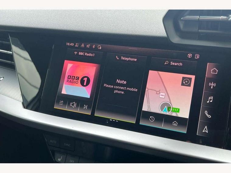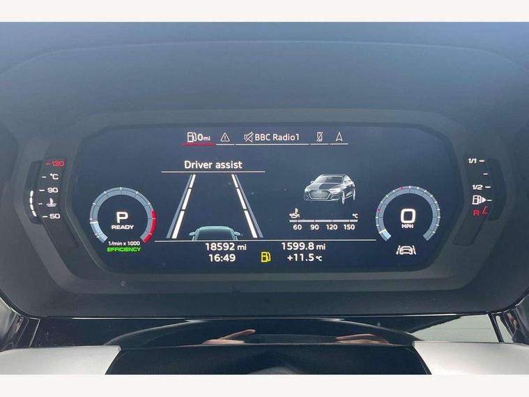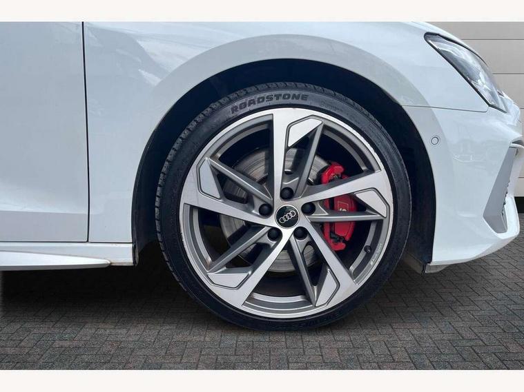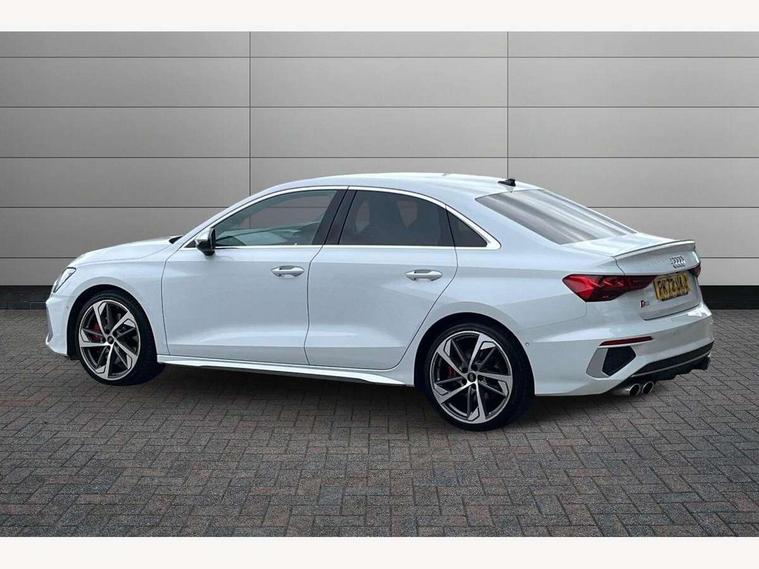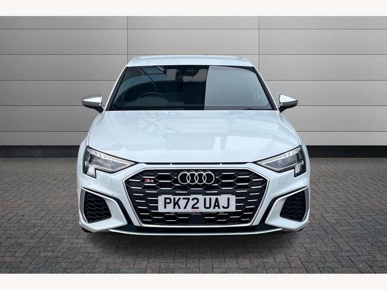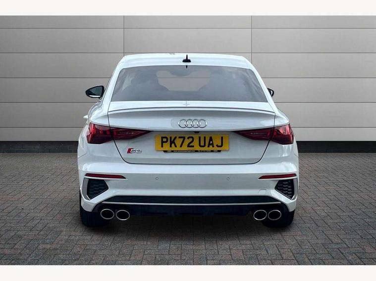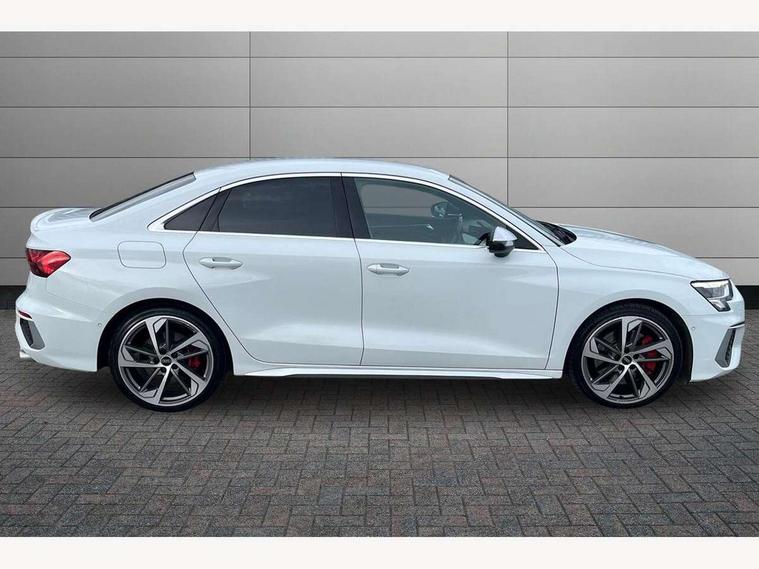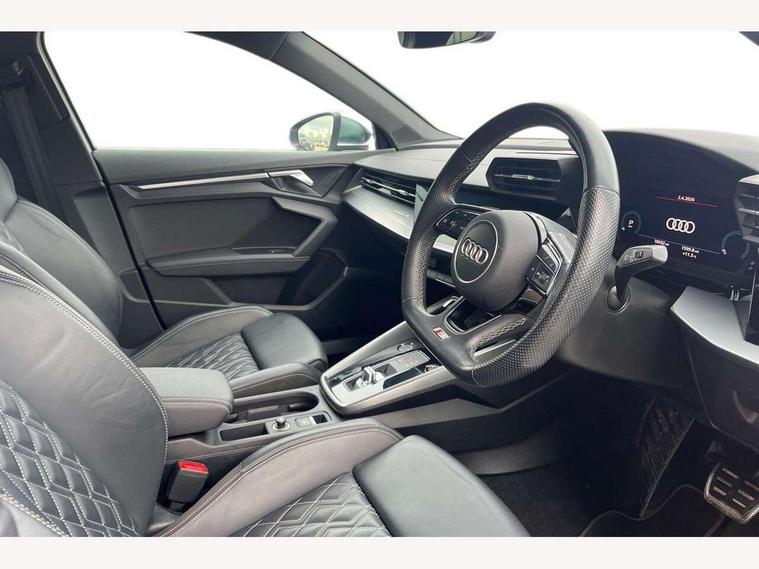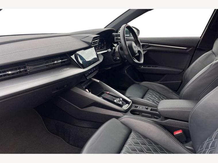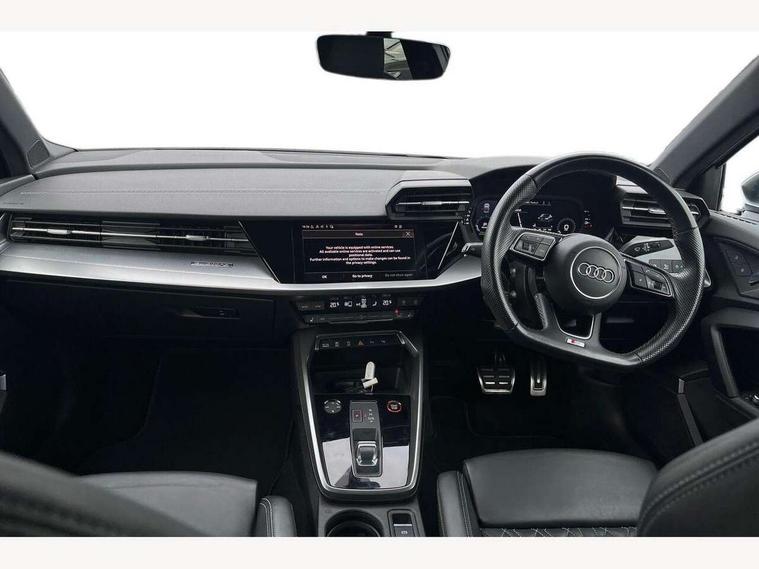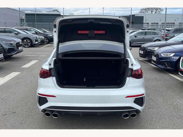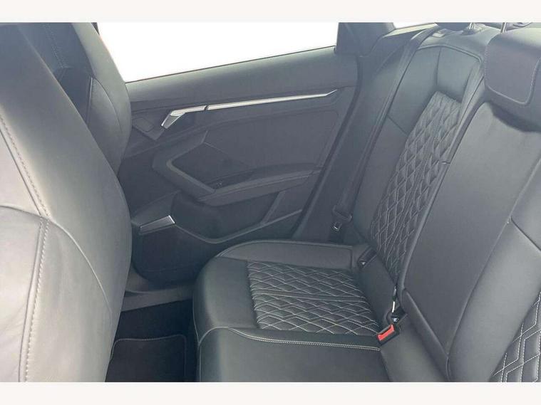 Audi connect emergency call and service, Audi drive select (Auto, Comfort, Dynamic, Efficiency and Individual), Audi smartphone interface, Audi Virtual Cockpit - 10.25" digital and colour instrument cluster, Automatic start/stop system with recuperation, Bluetooth interface, Collision avoidance assistant, Lane departure warning system, MMI Navigation Plus with high resolution 10.1" colour touch screen display, Progressive steering, Service indicator, Voice control system with natural language interaction, Quattro permanent all wheel drive, S sport suspension with spring damper adjustment and lowering by 15mm, 2x USB Type C ports (for charging and data transfer), 6 passive loudspeakers, CD player, DAB Digital radio, 3rd brake light, Acoustic glass windscreen, Audi Beam uses LEDs to project the Audi logo onto the ground as you exit your S3, Auto dimming frameless rear view mirror, Electrically adjustable/heated/folding/auto dimming door mirrors with integrated LED indications + kerb view function for passenger side, Front electric windows, Headlight washers, Illuminated door sills with aluminium inserts at the front with S logo, LED daytime running lights, LED headlights with LED rear lights and dynamic rear indicators, Light and rain sensors, Model and engine designation badges at rear, Privacy glass - dark tinted rear window, rear door and side windows, Rear boot, Rear electric windows, Rear side wing doors, 12V socket and storage compartment in front centre console, 3 seat bench in 2nd row, 40/20/40 split folding rear seat bench with cupholder, Black cloth headlining, Dual zone electronic climate control, Front and rear centre armrest in leather, Front and rear headrests, Front/rear floor mats, Heated front seats, Height and reach adjustable steering wheel, Illuminated vanity mirror, Interior lighting - glove compartment light and right hand side, Luggage compartment floor covering, Single front passenger seat, Stainless steel pedals and front footrest in black, Body styling design pack - S3, LED interior lighting pack - A3 Saloon, Storage pack - A3/S3 Saloon, 3x3 point rear seat belts, Driver and front passenger airbag with passenger airbag deactivation, Electronic Stabilisation Control (ESC) including ABS, ASR and EDL, First aid kit with warning triangle and 2 safety vests, Front side airbags with head airbags and interaction airbag, Hill hold assist, Pre-sense front with pedestrian and cyclist detection, Seatbelt monitoring, Tyre pressure loss indicator, Anti theft alarm, Anti-theft wheel bolts, Electronically operated child locks, Immobiliser, Remote control central locking, Aluminium air vent surrounds, Aluminium trim elements, Dark spectrum aluminium inlays, accent surfaces in the dashboard and centre console in platinum grey silk effect paint finish,