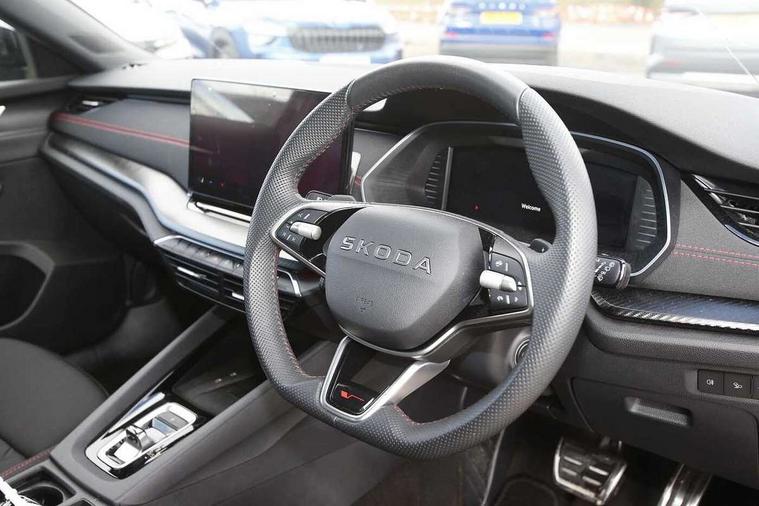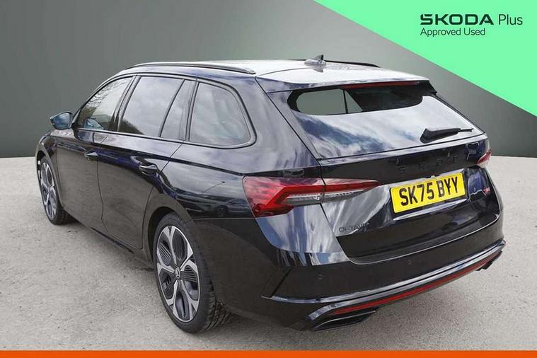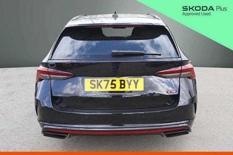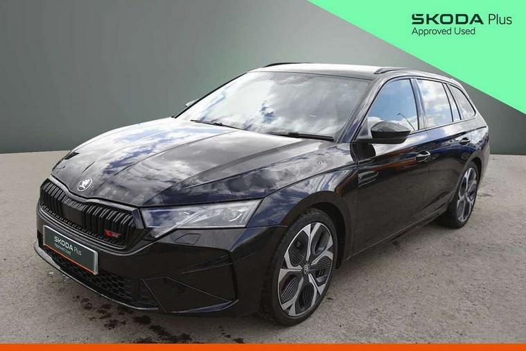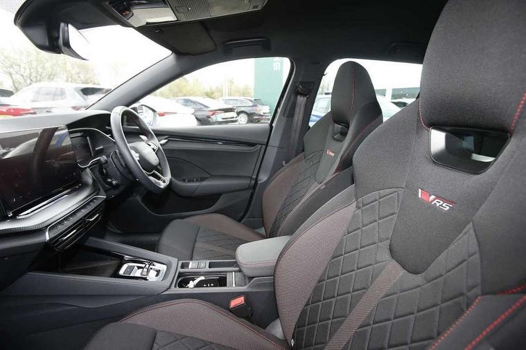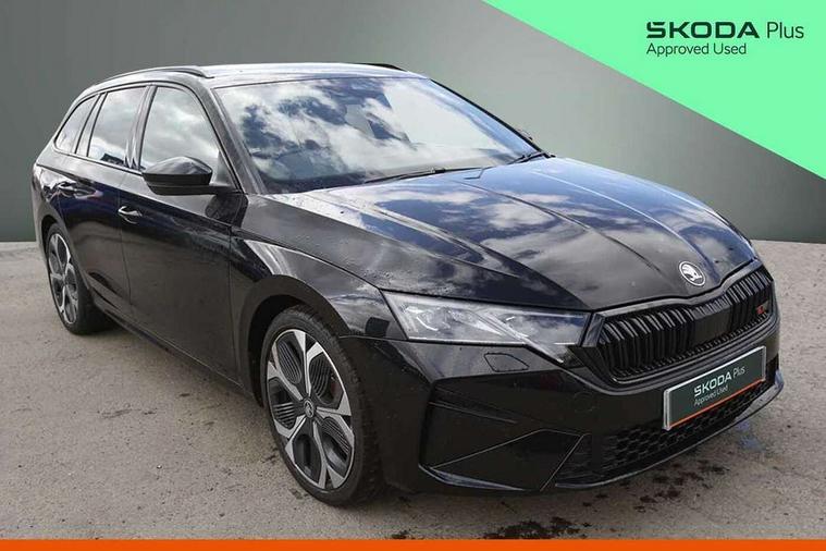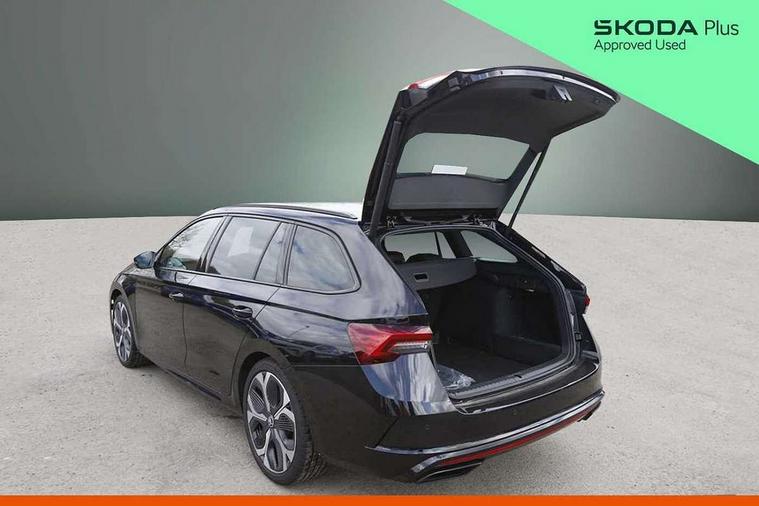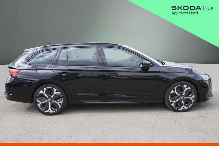 1x USB Typc C port in rear view mirror, 4x USB Type C ports - 2x in front centre console and 2x in rear (45W), Drive mode selection, Driver fatigue sensor, eCall emergency system, Electronic engine sound, Front assist system, Progressive dynamic steering, Traffic sign recognition, Turn Assist, Virtual Cockpit - 10.25" digital display, Voice control system, Wireless charging (15W) with cooling function, Wireless SmartLink for Apple CarPlay and Android Auto, Electronically controlled limited slip differential, vRS suspension, 13" touchscreen display with navigation, DAB Digital radio, Aero front windscreen wipers with intermittent function, Auto dimming rear view mirror, Black sport exhaust pipes, Body colour bumpers, Body colour door handles, Bumpers with rear red reflector strip, Electric front and rear windows, Exterior gloss black sports styling including front grille, window surrounds, door mirrors and badging, Gloss black diffuser, Gloss black roof rails, Gloss black spoiler, Heated rear windscreen, High beam control, High level third brake light, Ice scraper in fuel cap, LED daytime running lights, Logo projection in front doors, Rain and light sensors, Rear fog light on one side and reversing lights on both sides, Rear privacy glass, Rear side wing doors, Rear window wiper, Unique vRS bumpers and exterior styling, 12 volt socket in boot, 2x umbrella in door, 3 rear headrests, 3 seat bench in 2nd row, 4 foldable roof handles, Aluminium pedals, Front head restraints, Front sport seats, Heated front seats, Illuminated glovebox, Interior door handles in dark chrome, Jumbo Box storage, Luggage compartment lighting x2 lights, Mechanical rear seat release from boot, Single front passenger seat, Steering wheel in black leather with black stitching, Storage compartments in left and right of boot, Sun visors with mirrors, Sunglasses storage, Three spoke leather sports multifunction steering wheel with paddles, Ticket holder, Unsplit rear bench seat, split folding backrest with centre armrest with cupholder, Waste bin in door panel, Comfort package - Octavia Estate, Family package - Octavia, Light and view package plus - Octavia, vRS Design Selection pack - Octavia, 3x3 point rear seat belts, Alarm with interior monitoring, tilt sensor and back up horn, Curtain airbags and front side airbags, Driver and front passenger airbags, Drivers knee airbag, Electronic parking brake, ESC including ABS, EBV, MSR, ASR, EDS, HBA, DSR, Front central airbag, Hill hold assist, ISOFIX on front passenger seat and outer rear seats, Passenger airbag deactivate switch, Red brake calipers, Three point seat belts in front and rear, Two tone horn, Tyre pressure monitor, Visual and acoustic seat belt reminder, Warning reflectors in front door, Anti-theft wheel bolts, Keyless entry and start/stop, Remote central locking, Gloss black air vent surrounds, 19" Elias anthracite alloy wheels,