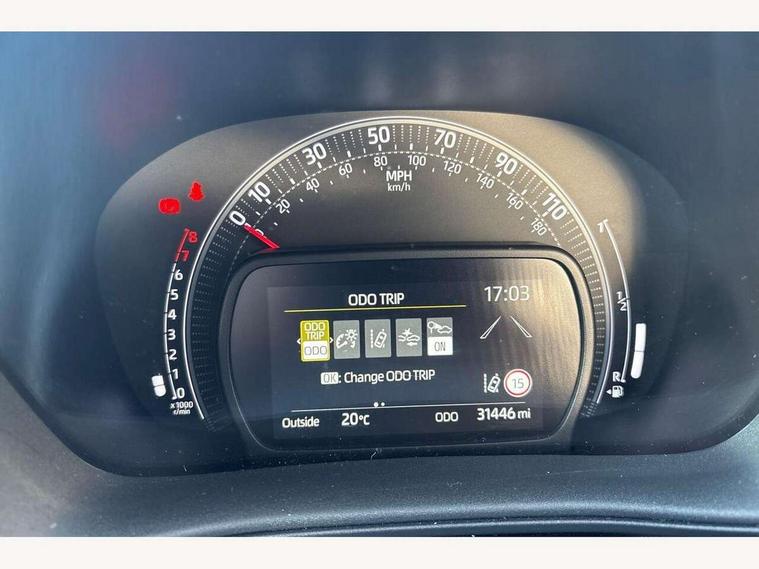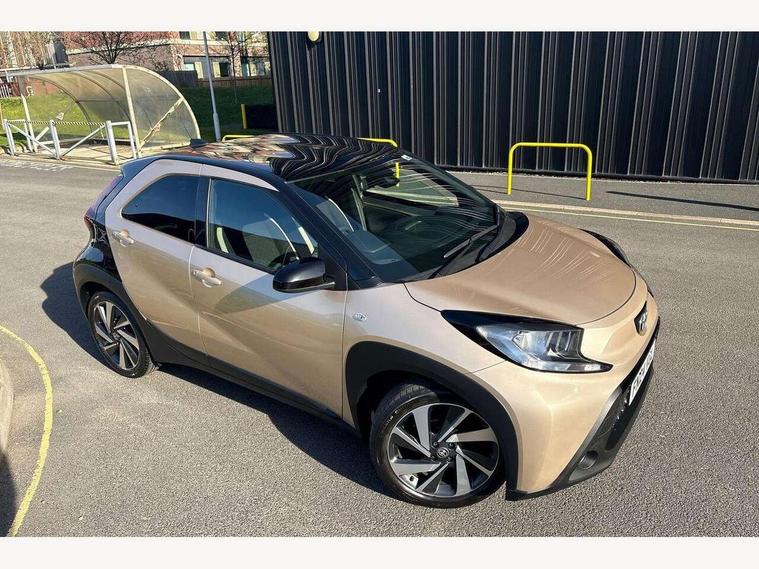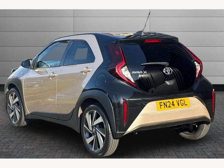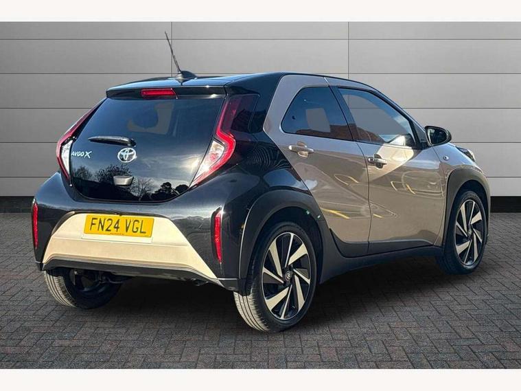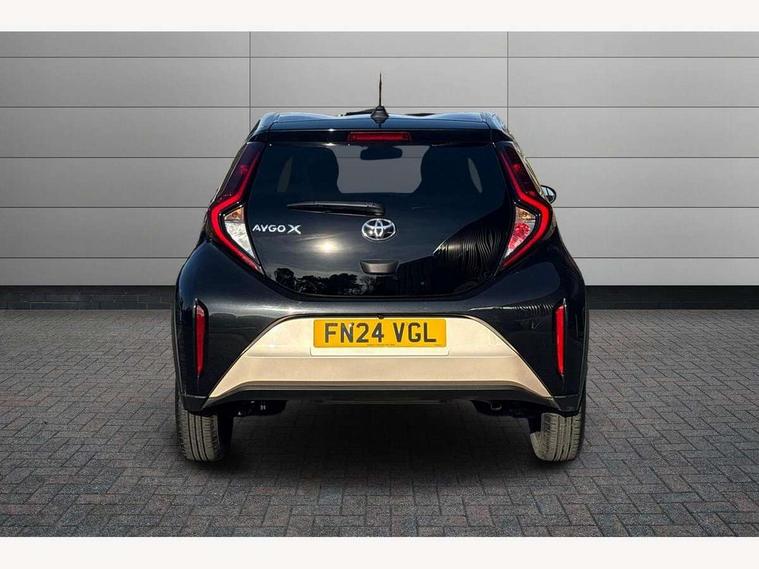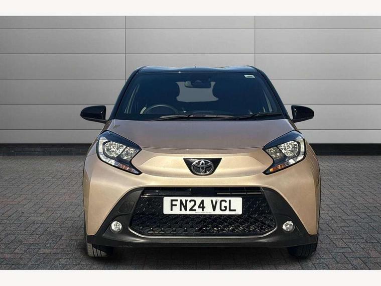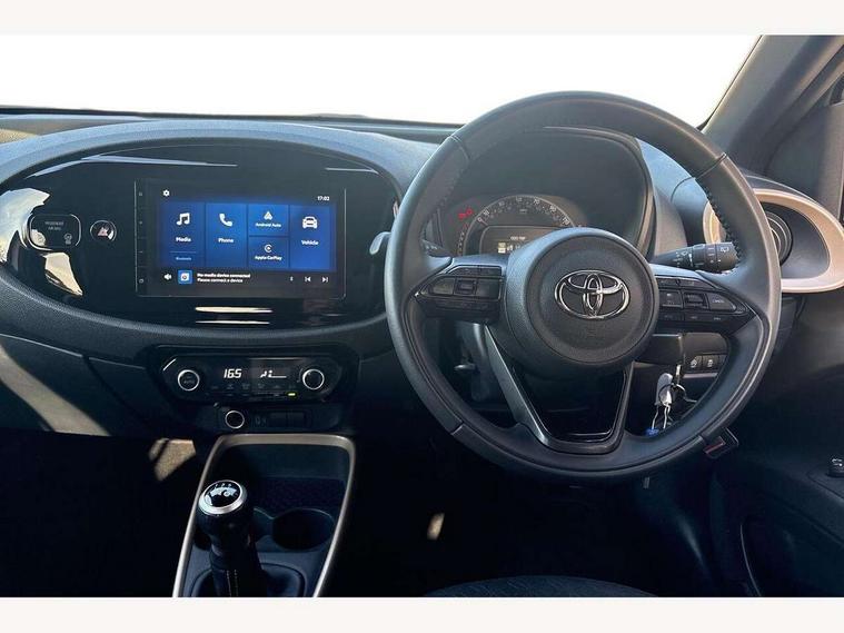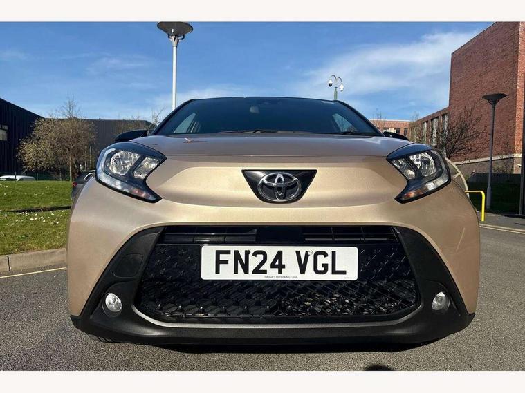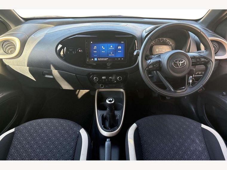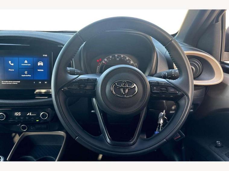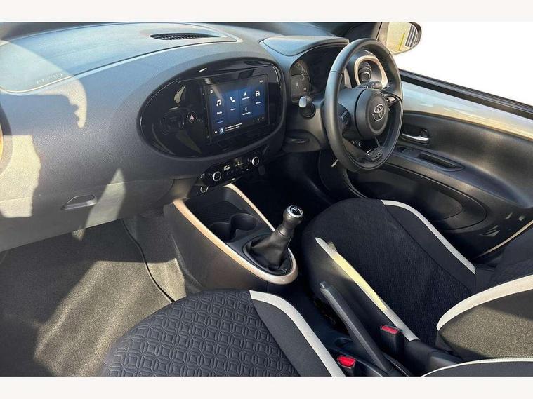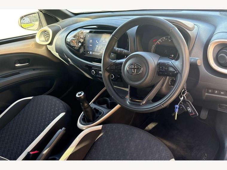 4.2" TFT colour screen, Adjustable speed limiter, Analogue speedometer, Bluetooth connectivity, Digital tachograph, Driver attention alert system, eCall emergency call system, Electric power steering, Intersection turn assist, Key reminder warning, Noise reduction kit, Pre collision system with emergency steering assist, Reversing camera with static guide lines, Smart phone integration with Apple car play/Android Auto, Speed limit display, Start and stop, Vehicle Stability Control (VSC), 4 speakers, 9" HD multimedia display touch screen with Toyota smart connect, DAB digital audio broadcast, USB connector, Auto headlights, Auto wipers, Automatic headlights cut-off, Bicycle towing hook, Black contrast roof, Black side protection mouldings, Black wheel arch mouldings, Body colour door handles, Body coloured front bumper, Boot door scuff plate, Eclipse black rear bumper, Electric heated door mirrors, Follow me home headlights, Front fog lights, Front power windows, Gloss black door mirrors, Gloss black upper front grille, Headlight cut-off reminder, LED daytime running lights, LED front light guide, LED High mounted stop lamp, Manual day/night rear view mirror, Manual headlight levelling, Pagoda roof, Power adjustable door mirrors, Power back door, Privacy glass, Projector halogen headlights, Rain sensor, Rear combination lights LED bulb type, Rear side wing doors, Rear windscreen defogger, Rear windscreen wiper, Short antenna, Variable intermittent windscreen wipers, 12v power outlet - front, 2 seat bench in 2nd row, 3 spoke leather steering wheel, 50/50 split folding rear seat, Adhesive roof headlining, Adjustable speed limiter switch on steering wheel, Audio and telephone switches on steering wheel, Auto air conditioning, Black insert on steering wheel, Black roof lining, Boot light, Centre room light, Chrome interior door handles, Chrome surround on air conditioning buttons, Clean air filter, Console box storage in body color, Fabric upholstery, Floor mats, Front and rear cup holders, Front head rest deco art, Front head restraints, Height adjustable driver seat, Intelligent adaptive cruise control switch on steering wheel, ISOFIX child restraint system on rear seats, Lane departure alert switch on steering wheel, Leather gearshift knob, Manual tilt steering wheel, Manually reclining and sliding driver seat, Manually reclining and sliding front passenger seat, Multimedia switches on steering wheel, Pollen filter, Rear door pockets, Rear head restraints, Satin silver insert on gear shift knob, Single compartment glovebox with lights, Single front passenger seat, Soft tonneau cover, Sun visors with mirror on driver and passenger side, Voice recognition switch on steering wheel, Toyota safety sense pack - Aygo X, Anti lock braking system + Electronic brake force distribution, Child safety door lock, Emergency brake light signal (EBS), Hill start assist control (HAC), Passenger airbag on/off switch, Seat belt reminder for front and rear seats, Supplement restraints system (SRS) - 6 airbags, Traction control, Tyre pressure warning system, Immobiliser, Remote power door locks, Black wheel centre caps, Tyre repair kit,
