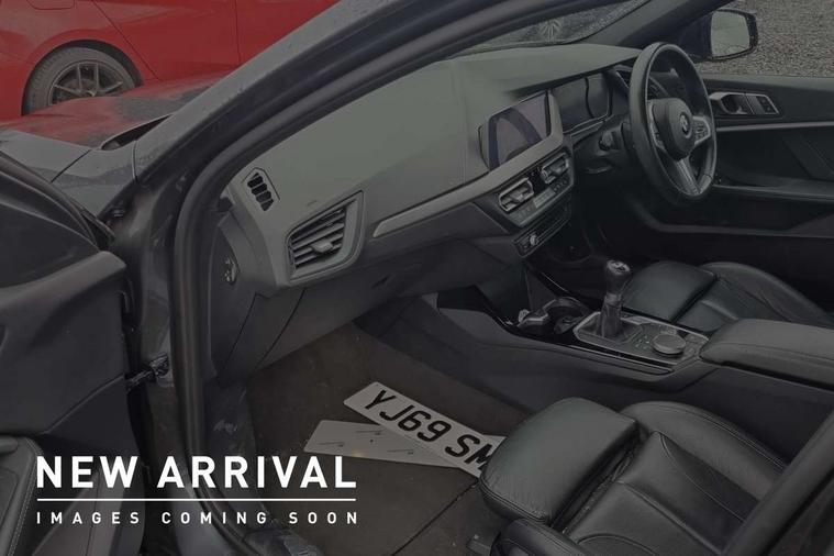 Contrast stitching on instrument panel, Extended Lighting pack - 1 Series, Extended storage pack - 1 Series, Interior lights pack - 1 Series, Luggage compartment pack - 1 Series, M Sport exterior styling aerodynamics pack - 1 Series, Reduced rolling resistance tyres, Automatic drive away locking facility, Central locking switch for all doors, fuel filler cap and luggage compartment, Deadlocking function system to all doors, Locking wheel bolts, Remote control with integrated key with High-gloss Black inlay and M designation and 1 button for open/ close lock, window, open luggage compartment, Start/stop button with comfort go keyless engine start and auto start stop deactivation button, Thatcham Cat.1 alarm and immobiliser, Bluetooth audio streaming, DAB Digital radio, 2 tone horn, 3 point seatbelts on all seats, front pyrotechnic belt tensioners, stopper and belt force limiters, rear coded belt buckles, Airbags - Front driver and passenger, front and rear head, front side, curtain head protection, Anti lock braking system (ABS) with brake assist, BMW emergency call, Brake drying, Braking readiness, City braking function, Crash sensor activating central locking release, hazard warning lights, fuel cut off, interior lighting + activation of safety battery terminal clamp, Driver and front passenger seat belt security check, Dynamic stability control + (DSC+), Dynamic Traction Control - DTC, Electrically operated hand brake, Front passenger manual airbag deactivation, Rear child proof door locks, Seatbelt warning, Side impact protection, Tyre pressure monitoring system, Warning triangle and first aid kit, Auto dimming rear view mirror, Body colour door handles, Body colour mirror caps, Chrome 'M' logo side designation, Chrome exhaust tailpipe in single, round (Exhaust tailpipe, stainless steel - single, round), Chrome kidney grille frame with Satin Aluminium struts, Direction indicator side lights in exterior mirrors, Electric folding and anti dazzle exterior mirrors, Fading support, Follow me home headlights, Front and rear electric windows with open and close fingertip control, anti trap facility and comfort closing, Front door sill finishers in black plastic with BMW designation, Green tinted heat protection glazing, Headlight beam throw control, High gloss shadow line exterior trim, High level third brake light, LED daytime running lights, LED front fog lights, Lightweight engineering, Matt black air guide grilles, Matt black roof moulding, B pillar finisher and wheel arch trim, Matt black window frame, Model designation on right side of tailgate, Nearside reverse light in rear light cluster, Rain sensor including auto headlights activation, Rear fog lights, Rear window wiper, Shark fin antenna, Visible VIN plate, Welcome lighting, Windscreen wipers with integrated washing jets, 12V power socket in centre console, 2 cupholders in front centre console, 3 rear seat head restraints, 3 spoke M sports design leather steering wheel finished in nappa leather with specific M badge, Anthracite headlining, Anthracite Velour floor mats, Child seat ISOFIX attachment for two outer rear seats and front passenger seat with anchorage points, Conditioned based service, Dakota leather upholstery with perforation and contrast stitching, Driver and front passenger seat heating, Driver side folding compartment in instrument panel, Folding rear clothes hook, Folding rear seats, Four grab handles integrated in roof lining, Front and rear door pockets, Front and rear side armrest integrated into door trim, Front Armrest foldable with integrated storage compartment, Front sports seats with electric side bolster adjustment, Gearshift lever with M designation, Glove compartment, Height adjustable front head restraints, Manual adjust steering wheel, Multi-function controls for steering wheel, Rear seat backrest with manual 60:40 split folding with 3 top tether clips integrated on rear of seat panels, Storage compartment in centre console, Sun visors with vanity mirrors and insert tab, Two zone automatic air conditioning, Active guard plus, Attentiveness assist, BMW Online services, BMW Teleservices, Check Control warning system for monitoring of lights and door/luggage compartment open warning, Connected eDrive Services, Cruise control with brake assist, Eco pro mode, Electric power steering, Integrated owners handbook, Lane departure warning system, On board computer, Optimum shift indicator, Personal Profile, Pull away assistant, Speed limiter, Anti roll bar front and rear, Balancer shaft, Double VANOS, Drive Performance Control, Electronic differential lock, M sports suspension + self levelling, Petrol Particulate Filter, VALVETRONIC engine management,