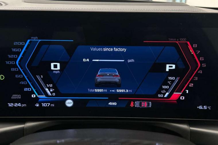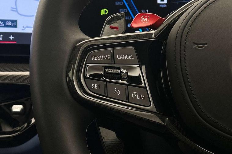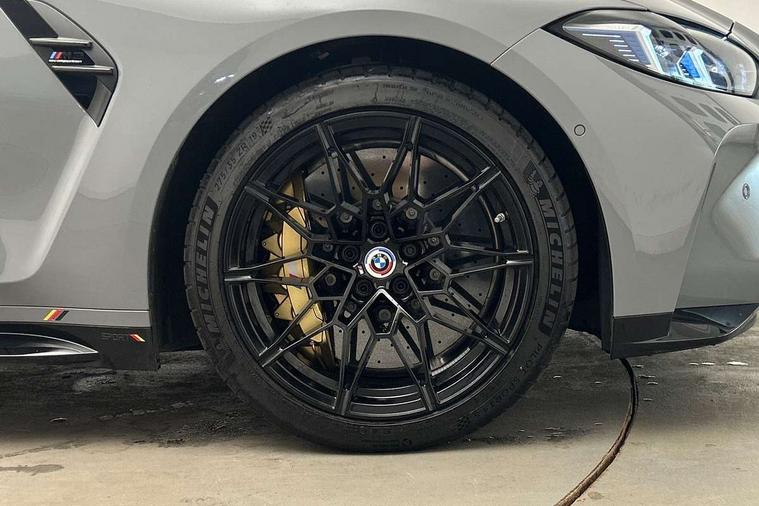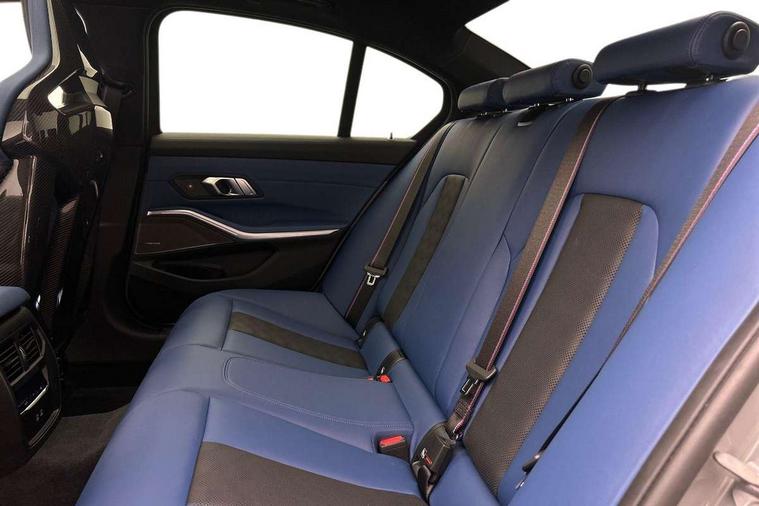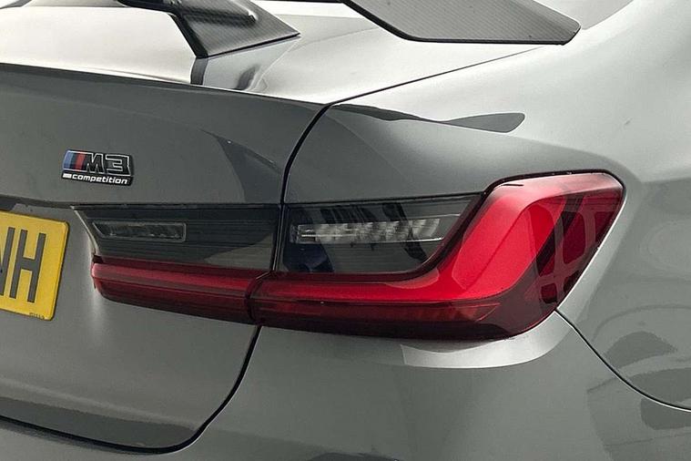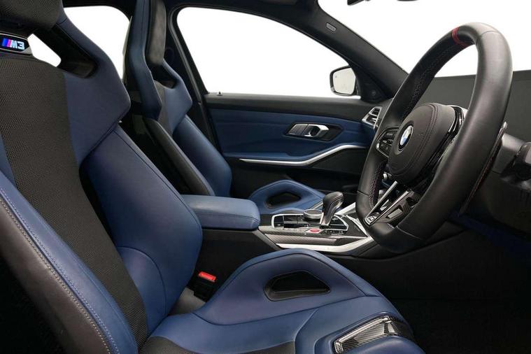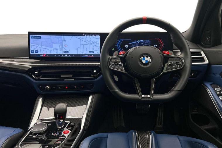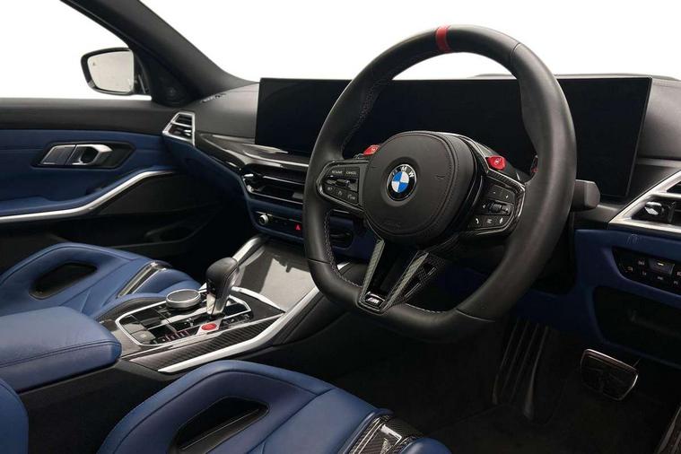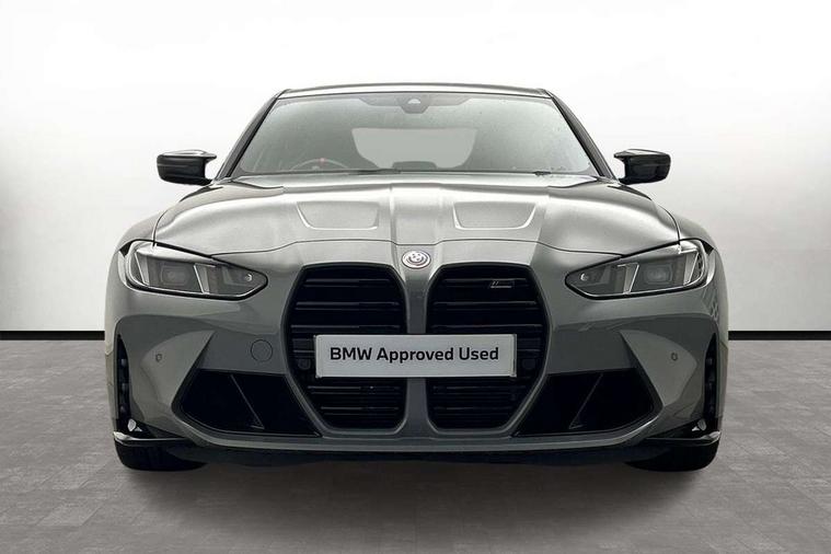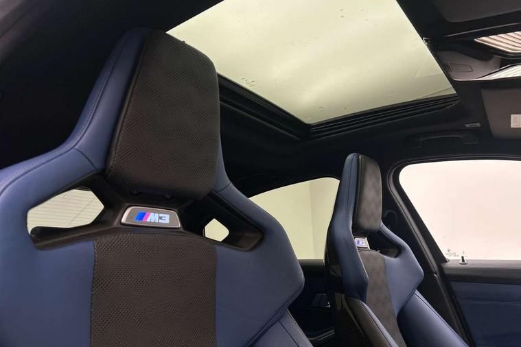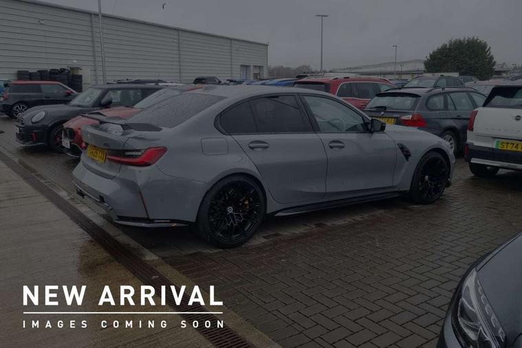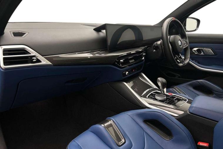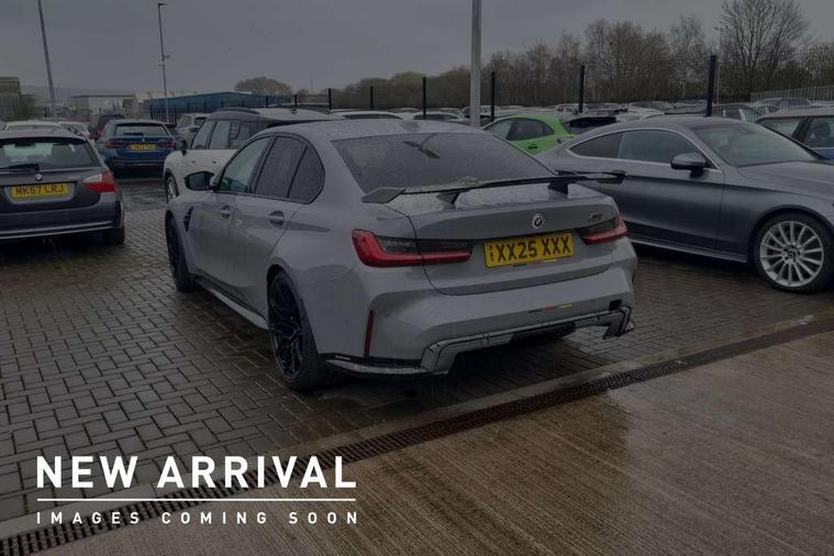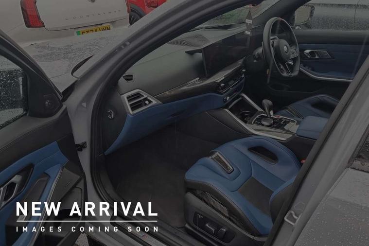 Active Guard, Automatic start/stop system, BMW ConnectedDrive online services, BMW legal emergency call, BMW Live Cockpit Pro with Head up display including 12.3" instrument display and 14.9" high resolution control display with navigation function, BMW Teleservices, Brake pad wear indicator warning light, Condition based service, Cruise control with braking function, Door/boot open warning light, Electric Power Steering (EPS) with Servotronic, Language version English, Lights on warning, M drive buttons, Oil sensor for level and grade, warning by check control system, Oil temperature gauge, On board computer, On board diagnostics, Optimum shift indicator, Outside temperature display, Park distance control, Pull away assistant, Run flat indicator, Service interval indicator, Shifting point display, Smartphone integration, Speed limiter, Start/stop button in red, Variable sport steering, Double joint spring strut front axle, Electronic differential lock control (EDLC), M Adaptive suspension, M Drive Professional including track mode, laptimer, traction control & Drift analyser, M Sport differential, Safety battery terminal clamp, Sport automatic transmission with gearshift paddles, Auxiliary point for auxiliary devices, DAB radio with bluetooth music capability, Harman kardon surround sound audio system, Personal eSim, Auto dimming driver's door mirror, Automatic headlights + automatic windscreen wipers, Automatic parking function on front passenger's exterior mirror, Black chrome exhaust tailpipes, Black model designation badges, BMW high gloss shadow line with extended contents, BMW radiator grille, frameless, with horizontal double blind slats, black high-gloss, with model badge, Body colour bumpers, Bonnet and tailgate badge, Carbon fibre reinforced plastic (CFRP) roof, Day time running light, Door mirror integrated indicators, Door sill finishers with aluminium inserts, Dynamic brake lights, Electric adjustable heated door mirrors, Electric folding door mirrors, Electrochromic exterior driver side mirror, Electrochromic interior rear view mirror with automatic anti-dazzle function, Entry sills with aluminium inserts and model badge, Follow me home headlights, Front and rear bumper system, Front and rear plastic apron in vehicle colour, Front door sill strips in aluminium inlays with M3 inscription, Front electric windows with open and close fingertip control, anti trap facility and comfort closing, Headlight beam throw control, Heat protection, sun protection glazing, Heated washer jets, High gloss black lower bumper edges, side sills and diffuser edge binding, LED 3rd brake light, LED tail lights with 3D L-shaped LED light design, M designation, Mirror glass aspheric on driver's side, convex on passenger side, Rain sensor, Rear boot, Rear fog lights, Rear reflectors, Rear side wing doors, Reversing light, Roof fin and roof trim strips in Black high-gloss, Shark fin roof aerial, Strakes in front side panel, black matt/high-gloss black, with model badge, Visible VIN plate, Welcome lighting, 2 cupholders in front centre console, 2 cupholders in rear armrest, 2 rear head restraints, 2 x 12 V Power sockets (luggage compartment and front centre console), 2 x USB Type C ports for charging and data transmission in front centre console, 3 seat bench in 2nd row, 40:20:40 split folding rear seat with loading system, Ambient inside door handle light, Ambient lighting for storage compartment, Ambient lighting front and rear, Anthracite headlining, Battery in luggage compartment, Centre console armrest with storage compartment, Contour lighting for door trim, Driver/passenger sunvisors with ticket holders + illuminated vanity mirrors, Driving experience mode switch, Dual zone automatic air conditioning, Dynamic ambient interior lighting, Electric front seats + driver memory, English handbook, Floor mats in velour, Front and rear door exit lights, Front door storage bins with bottle holder, Front footwell ambient lighting, Front interior light, Front isofix attachment + airbag deactivation, Front reading light, Front seat backrest width adjustment, Front/rear door armrests, Heated front seats, Height adjustable front headrests, Illuminated bow-type door handles in vehicle colour, driver's side with door lock, Interior mirror lighting, Isofix on 2nd row outer seats, Lockable/illuminated glovebox, Luggage compartment lighting, Multifunction steering wheel, Rake/reach adjustable steering wheel, Single front passenger seat, Storage compartment in rear doors, Storage tray and compartment with cover in centre console, Through loading system, Toolkit located in luggage compartment, Waterfall lighting for central air vent, Wireless charging tray, Connected package professional - M3, Extended storage pack - M3/M4, High gloss shadowline exterior trim pack - M3, 3 point seatbelts on all seats, ABS/EBD, Automatic Stability Control (ASC), Brake energy regeneration, Brake fade compensation, Compound structure brake discs, Cornering brake control (CBC), Crash sensor, Curtain airbags, Driver/Front Passenger airbags, Dry braking, Dynamic brake control, Dynamic stability control + (DSC+), Dynamic Traction Control - DTC, Electromechanical parking brake, Front and rear head airbags, Front seat side impact airbags, Front seatbelt pretensioners + load limiters, Hill start assist, M Sport seat belts, Rear child proof door locks, Seat occupancy detection for driver and passenger side, Seatbelt warning, Side impact protection, Two tone horn, Tyre pressure sensor, Warning triangle and first aid kit, Centre lock switch, Closing system with central locking, Electronic immobiliser, Locking wheel bolts, Remote central locking, Thatcham cat 1 remote alarm, Vehicle Key with 4 buttons including the integrated key, Galvanic embellisher for controls, Tyre repair kit,