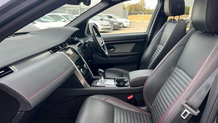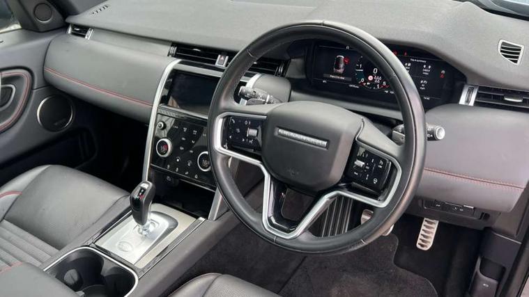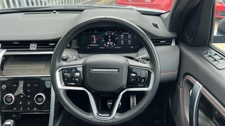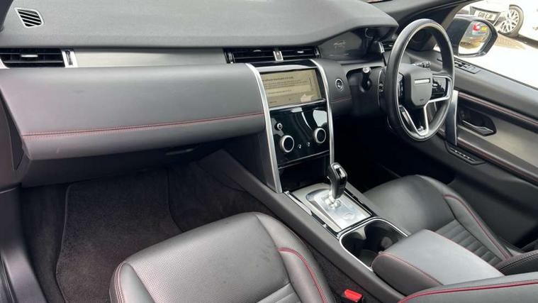 10" touch screen, Adaptive cruise control, Android Auto, Apple CarPlay, Blind spot assist, Clear exit monitor, Driver condition monitor, eCall emergency call system, Front and rear parking aid, InControl remote premium, Lane keep assist, Locking fuel flap, PAS, Pivi Pro connected navigation system with upgraded Infotainment, Powered tailgate/boot lid, Push button start, Rear collision monitor, Rear traffic monitor, Service interval indicator, Traffic sign recognition with adaptive speed limiter, Trip computer, Wade Sensing, All terrain progress control, Coil suspension system, Configurable dynamics, Diesel particulate filter, Dynamic stability control, Efficient Driveline, Terrain Response 2, Bluetooth connectivity including audio streaming, Digital Audio Broadcast radio-DAB, Steering wheel mounted audio controls, 3rd brake light, Automatic headlight levelling, Automatic headlights, Black number plate plinth, Electric front/rear windows, Electric heated/power fold door mirrors with approach lights and auto dimming driver side, Front and rear recovery eyes, Front fog lights, Heated rear window, Heated windscreen including heated washer jets, Illuminated metal front treadplates with R dynamic branding, Privacy glass, R Dynamic badge, Rain sensing windscreen wipers, Rear fog lights, Rear side wing doors, Rear wing door, Rear wiper, 2 seat bench in 3rd row, 3 seat bench in 2nd row, Bright metal pedals, Centre console with armrest, Configurable cabin lighting, Electrically adjustable steering column with memory, Footwell lights, Front and rear grab handles, Front passenger isofix child seat attachment, Front passenger seat, Heated steering wheel, Loadspace cover, Loadspace light, Manual third row seats, Overhead lighting console, Overhead stowage for sunglasses, Rear headrests, Satin chrome gearshift paddles, Sunvisors with illuminated vanity mirrors, Tilt/reach adjustable steering wheel, Black exterior pack - Discovery sport R-Dynamic SE/HSE, Online pack with data plan - Discovery, 3 point seatbelts on all seats, ABS, Brake hold function, Child locks on rear doors, Collision mitigation braking system, Cornering brake control (CBC), Driver/Front Passenger airbags, Drivers knee airbag, Electronic brake force distribution, Electronic parking brake, Emergency brake assist, ESP + traction control, Hill descent control, Hill launch assist, Pedestrian airbag system, Rear seat ISOFIX, Roll stability control, Side and curtain airbags for front and 2nd row seats, Trailer stability control, Tyre pressure monitoring system, Battery Back Up System (BBUS) with tilt sensor, Global lock and unlock switch on driver door, Intrusion sensor, Keyless entry, Locking wheel nuts, Centre stack rails in noble chrome,