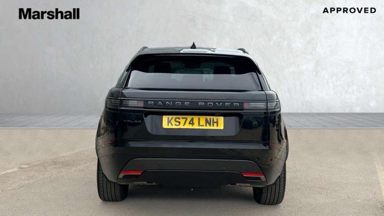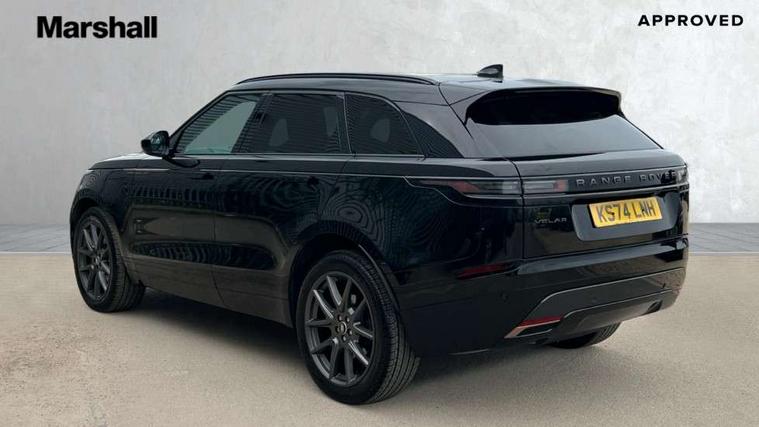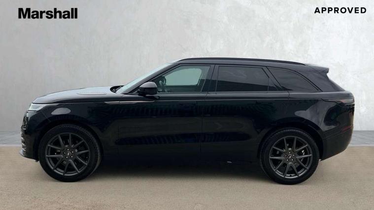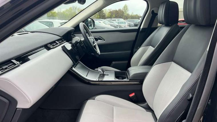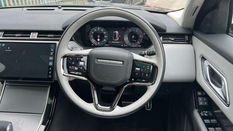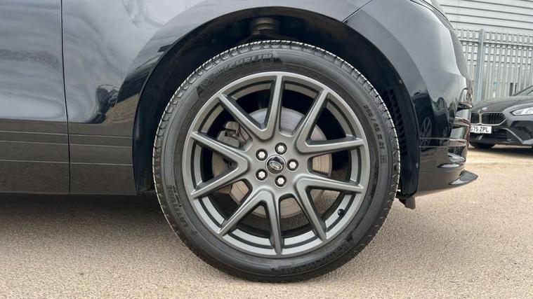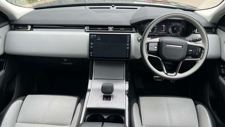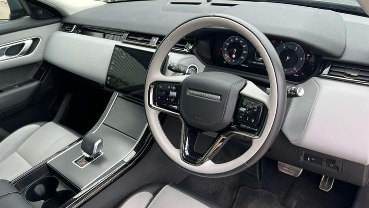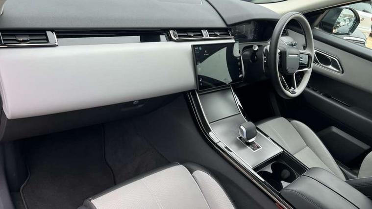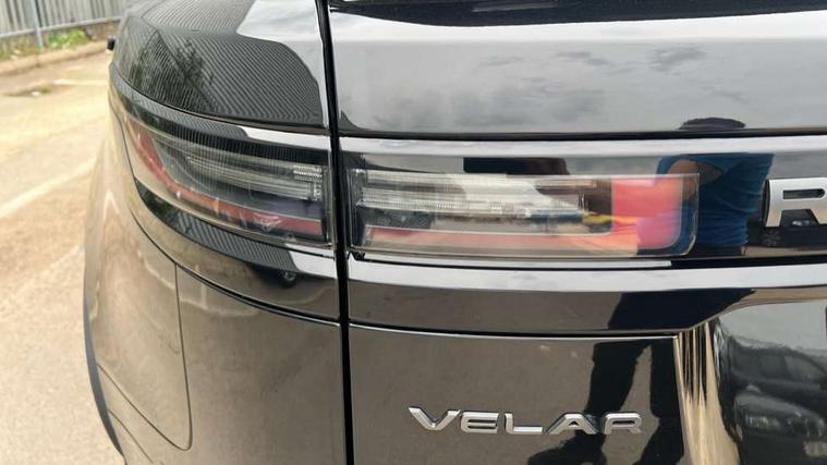 Adaptive cruise control with steering assist, Android Auto, Apple CarPlay, Blind spot assist, Bluetooth connectivity, Brake pad wear indicator warning light, Driver condition monitor, eCall emergency call system, Front and rear parking aid, InControl remote, Land Rover InControl apps, Lane keep assist, Pivi pro with connected navigation, Rear collision monitor, Rear traffic monitor, Service indicator, Speed proportional electronic power assisted steering (EPAS), Traffic sign recognition with adaptive speed limiter, Trip computer, Voice control system, Wireless device charging, 8 speed automatic transmission, Adaptive dynamics, All terrain progress control, Electronic air suspension, Open differential with torque vectoring by braking, Single speed transfer box, DAB radio, Steering wheel mounted controls, 3rd brake light, Acoustic laminated windscreen, Auto dimming interior rear view mirror, Automatic headlamp levelling, Automatic headlights, Body coloured bumpers, Boot protection plate, Electric windows with one touch open/close and anti trap, Flush deployable exterior door handles, Follow me home headlights, Heated rear window with timer, Heated washer jets, Heated windscreen, Metal front tread plates, Metal load space scuff plates, Pixel LED headlights with signature DRL, Power fold, auto-dimming, heated door mirrors with memory and approach lights, Rain sensor windscreen wipers, Rear animated directional indicators, Rear fog lights, Rear side wing doors, Rear wash/wipe, Tailgate/boot lid spoiler, Trailer stability assist, Velar badge, 3 seat bench in 2nd row, Ambient lighting, Bright metal pedals, Carpet mats, Driver/passenger sunvisors with illuminated vanity mirrors, Ebony morzine headlining, Electrically adjustable steering column, Extended leather upgrade, Heated steering wheel, Isofix system on outer rear seats, Loadspace cover, Overhead lighting console, Overhead stowage for sunglasses, Passive front headrests, Rear air vents, Rear centre headrest, Single front passenger seat, Twin front cupholders, Twin sliding front centre armrest, Online pack with data plan - Velar, Power socket pack 2 - Velar, 380mm front brakes and 325mm rear brakes, 3x3 point rear seatbelts, Anti-lock braking system (ABS), Cornering brake control, Curtain airbags, Customer configurable autolock, Door side intrusion beams, Driver airbag, DSC - Dynamic Stability Control, Electronic brake force distribution, Electronic parking brake, Electronic traction control, Emergency braking, Front and rear seatbelt reminder, Hill descent control, Hill launch assist, Low traction launch, Passenger airbag, Power operated child locks, Rear airbags, Roll stability control, Side airbags, Tyre pressure monitoring system (TPMS), Global lock and unlock switch on driver door, Immobiliser, Intrusion sensor, Keyless entry, Lock only switch on front passenger door, Locking wheel nuts, Perimetric alarm, Remote central locking, All season tyres,