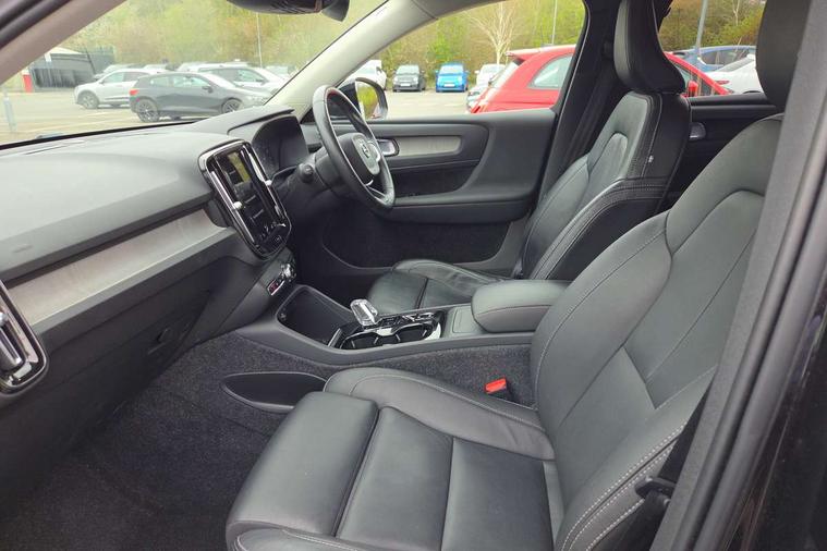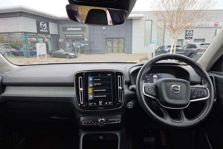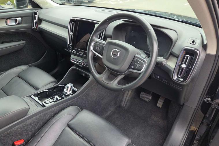 12.3" Active TFT crystal driver's instrument display, 9" centre console portrait touch screen, Adjustable steering wheel force, Bluetooth hands free telephone kit, Drive mode selector, Lane keep assist with driver alert control, Oncoming Lane Mitigation, Sensus navigation with European mapping and traffic information, Speed limiter, Speed sensitive steering, Voice activated control for key functions, Volvo on call, Dynamic chassis, DAB Digital radio, Steering wheel mounted remote controls, Active bending headlights, Adaptive brake lights with high level LED brake lights, Auto dimming interior mirror, Automatic headlamp levelling, Chrome window surround, Colour coordinated auto folding and heated power door mirrors, Dual exhaust pipes, Front aluminium tread plates, Front and rear electric windows, High gloss black front grille with chrome inserts, High gloss black sensus surround deco, High Gloss silver front and rear skid plate, Home safe and approach lighting, LED front fog lights with static cornering light function, LED Headlights + Active high beam incorporating daytime running lights, Rain sensor with automatic windscreen wiper activation, Rear side wing doors, Rear wiper, Roof antenna, Roof spoiler, Silver roof rails, Visible VIN plate, 12V socket in front tunnel console and cargo compartment, 2 zone electronic climate control and rear air vent, 3 seat bench in 2nd row, 3 spoke leather steering wheel with chrome trim, 60/40 split folding rear seat, Ambient front door and instrumental panel lighting, Bright metal luggage threshold, Centre console cupholders and storage, Driver's side lower dashboard credit card storage compartment, Front door pocket and front cupholder illumination, Front footwell illumination, Front headrests, Front reading light and theatre lighting, Front tunnel net pocket and integrated waste bin, Glovebox bag hook, Height/reach adjustable steering column, High gloss centre tunnel deco, Illuminated glovebox, Illuminated luggage compartment, Illuminated tailgate, Illuminated vanity mirrors, Isofix attachments on rear seats, Key integrated remote, Leather faced upholstery, Load protection net, Luxury floor mats, Multi directional lumbar support, Multicolour theatre lights, Orrefors Crystal Gear Lever Knob, Rear armrest / integral cup holders / storage tray, Rear coat hook, Rear reading and courtesy lights, Single front passenger seat, Underfloor cargo storage, Power seat pack - XC40, 3x3 point rear seatbelts, City safety includes pedestrian, cyclist and large animal detection and front collision warning with full auto brake, Drivers knee airbag, Dual stage driver/passenger airbags, Electronic parking brake with auto hold, First aid kit, Front and outer rear seatbelt reminder and pretensioners, Front seats SIPS airbags, Hill descent control, Hill start assist, Inflatable curtain, Passenger airbag cut-off device, Road sign information display, Run off Road Mitigation, Run off Road Protection, SIPS (Side Impact Protection System), Slippery road and hazard light alert, Stability and Traction Control with Spin control, Engine Drag Control and Corner Traction Control, Tyre pressure monitoring system, Vehicle deceleration control with Anti-lock Brake System, Electronic Brake Distribution and Emergency Brake Assist, Warning triangle, WHIPS whiplash protection system - front, Anti-theft alarm including immobiliser/volume sensor + level sensor, Care key with user defined top speed, Key integrated remote control central locking + fuel flap with deadlocking system and auto open/close power windows, Locking wheel nuts, Private locking for tailgate, Driftwood inlays,