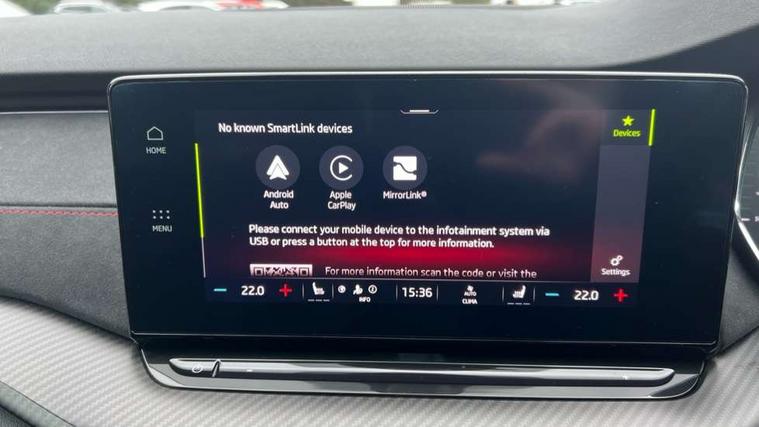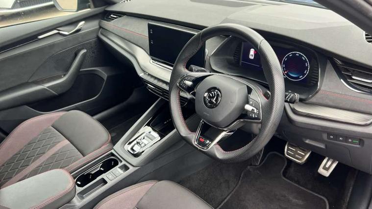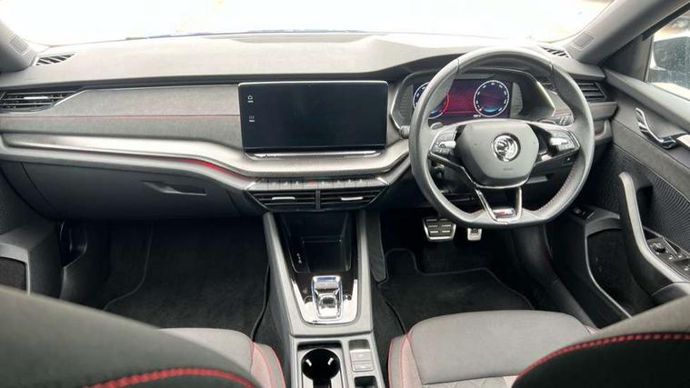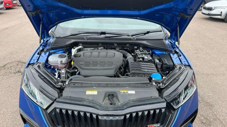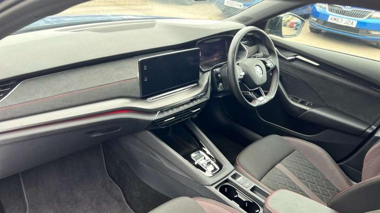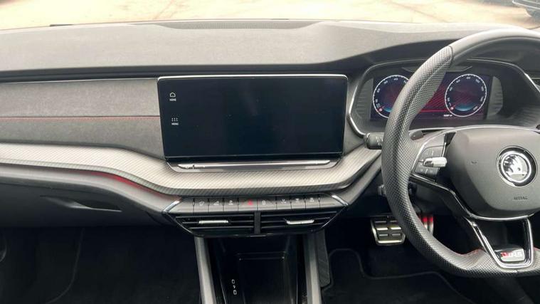 1x USB Type C port in rear view mirror (charging only), 2x USB Type C ports in rear of front centre armrest (charging only), Bluetooth system, Columbus satellite navigation with 10" touchscreen display, Driver fatigue sensor, eCall emergency system, Front and rear parking sensors with manoeuvre assist, Front assist system, Progressive dynamic steering, Speed limiter, Turn Assist, Virtual Cockpit - 10.25" digital display, Virtual pedal with electrically operated boot door (Rear LED lights (high functionality), dynamic indicators, Voice control system, Wireless SmartLink for Apple Car Play, Electronically controlled limited slip differential, Front and rear stabilizers, 2x USB Type C ports (for charging and data transfer), 8 Speakers, DAB Digital radio, Aero front windscreen wipers with intermittent function, Auto dimming rear view mirror, Body colour door handles, Chrome exhaust tailpipes, Door sills with vRS logo, Electric front and rear windows, Exterior gloss black sports styling including front grille, side strip, window surrounds, door mirror and badging, Full LED Matrix headlights with AFS, rear LED lights (high functionality) and dynamic indicators and cornering front fog lights, Headlight washers, Heated rear windscreen, High level third brake light, Ice scraper in fuel cap, LED daytime running lights, Rain and light sensors, Rear fog light on one side, Rear privacy glass, Rear side wing doors, vRS bumpers and lip spoiler, 3 rear headrests, 3 seat bench in 2nd row, 4 foldable roof handles, Aluminium pedals, Black headlining, Black microsuede padded dash panel with red contrast stitching, Chrome inner door handles, Front centre armrest, Front head restraints, Heated front seats, Illuminated glovebox, Leather trimmed gearshift lever, Luggage compartment lighting x1 light, Mechanical rear seat release, Parcel shelf - folding, Single front passenger seat, Sunglasses storage, Textile floor mat set, Three spoke leather sports multifunction steering wheel with paddles, Ticket holder, Umbrella in door panel, Unsplit rear bench seat and split folding backrest, LED interior light pack - Octavia, 3 point front/outer rear seatbelts+pre-tensioners, Alarm with interior monitoring, tilt sensor and back up horn, Automatic door unlocking in case of crash, Automatic fuel cut off in case of crash, Automatic warning lights in case of emergency braking, Curtain airbags and front side airbags, Driver and front passenger airbags, Drivers knee airbag, Electronic parking brake, ESC including ABS, EBV, MSR, ASR, EDS, HBA, DSR, Front and rear disc brakes, Front central airbag, Hill hold control, Hill start assist, ISOFIX on front passenger seat and outer rear seats, Manual rear child locks, Passenger airbag deactivate switch, Pro active services, Red brake calipers, Two tone horn, Tyre pressure monitor, Visual and acoustic seat belt reminder, Warning reflectors in front door, Door locks with immobiliser, Keyless entry and start/stop including rear doors, Remote central locking, Carbon optic decorative inserts, Gloss black air vent surrounds, 19" Altair anthracite alloy wheels,