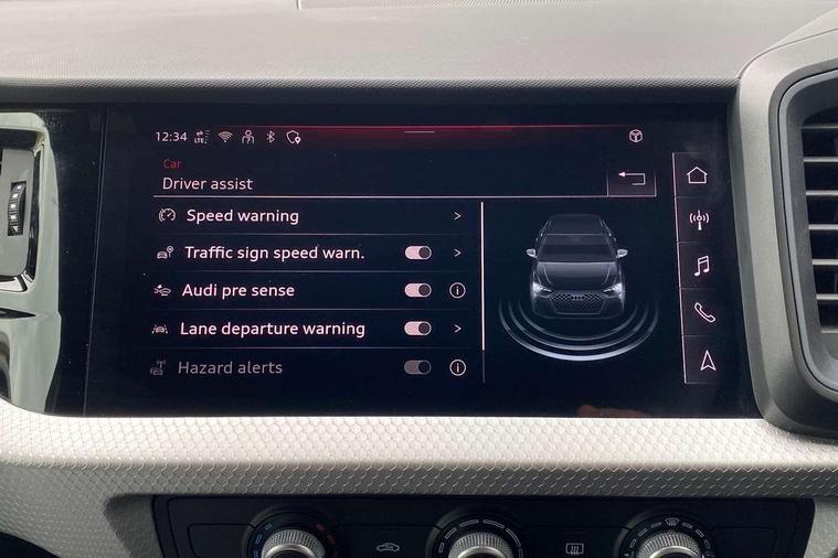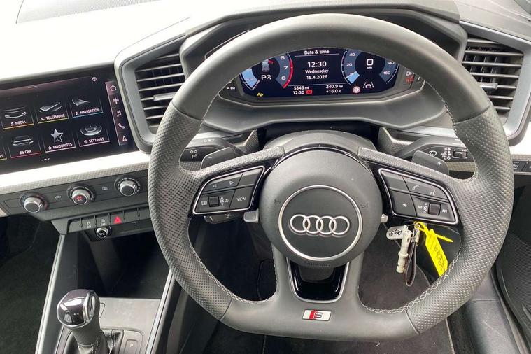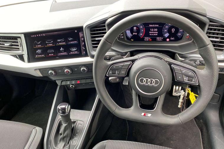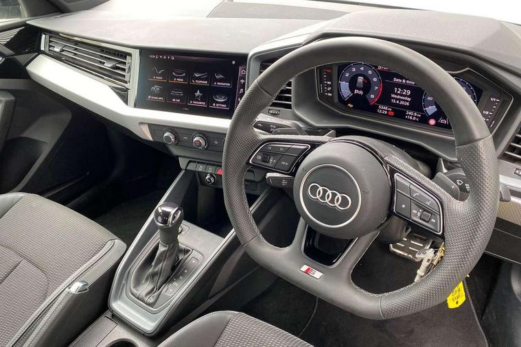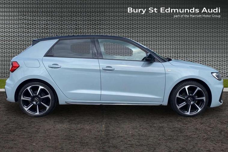 10.25" Digital instrument cluster display classis style instrument dials + speed, odometer, time, outside temperature, telephone menu + fuel level warning, Advanced driver attention and drowsiness monitor, Audi connect emergency call and service, Audi remote connect and control, Audi smartphone interface, Bluetooth interface, Camera based traffic sign recognition, Cruise control, Driver's information system, Electromechanical power steering, Lane departure warning system, Rear parking sensor, Service interval indicator, Speed limiter, Start stop system with recuperation, Voice control system, Washer fluid level indicator, Sports suspension, 2 x USB type C connection points, 6 loudspeakers, DAB Digital radio, MMI radio plus with 10.1" colour MMI display screen and MMI touch, Auto dimming rear view mirror, Black side skirts, Body coloured bumpers, Door sill trims with aluminium inlays and logo, Electric front and rear windows, Electrically adjustable, heated, folding door mirrors with integrated LED side indicator, Front side air inlets in grained matt black and C frame in anthracite black, Front wing badges, Headlight cleaning system, Heat insulating glass windscreen and side windows, Heated rear windscreen, High level LED brake light, LED daytime running lights, LED headlights with range control LED rear lights + dynamic rear indicators, Privacy glass, Radiator grille and rear diffuser in matt anthracite black, Radiator protective grille frame in matt aluminium silver, Rain and light sensors, Rear fog lights, Rear side wing doors, Rear wiper, Side front spoiler lips in grained matt black, 12V socket in centre console with two cup holders, 3 rear seats with headrests, 3 seat bench in 2nd row, 3 spoke flat bottomed multi-function plus leather steering wheel with S badging, grips in preforated leather, contrast stitching and paddle shift, 40:60 Split folding rear seat or fully collapsed, Black cloth headlining, Front and rear velour black floor mats with contrast stitching in fine silver, Front head restraints, Front passenger seat, Height and reach adjustable steering wheel, Interior lighting includes roof module, front and rear reading lights and right luggage compartment lighting, ISOFIX child seat mounting for front passenger and outer rear seats including top tether attachment point of outer rear seats, Leather gear knob with aluminium trim, Leather handbrake grip, Manual air conditioning, Manual height adjustable for driver and front passenger seat, Manually adjustable lumbar support in front seats, Stainless steel pedals, Ambient lighting package - A1, Black styling pack - A1 Sportback Black Edition, Luggage compartment pack - A1, 3x3 point rear seatbelts, Audi pre-sense front with pedestrain and cyclist recognition, Brake assist function, Driver and front passenger airbag with front side and head airbags, Electronic Stability Control including ABS, EBD, ASR and EDL, Front passenger airbag deactivation switch, Hill hold assist, Manual rear child locks, Seatbelt height adjustment for front seats, Seatbelt monitoring, Tyre pressure loss indicator, Warning triangle and first aid kit, Anti theft alarm, Anti theft wheel bolts, Immobiliser, Remote control key with safelock, Aluminium trim for control switches, air vents and digital instrument cluster, Black dashboard, Silver grey inlays polygon structure in diamond paint finish, Structured grey accent surfaces insert of air vents, interior door handle recesses and centre console in quartz paint finish,