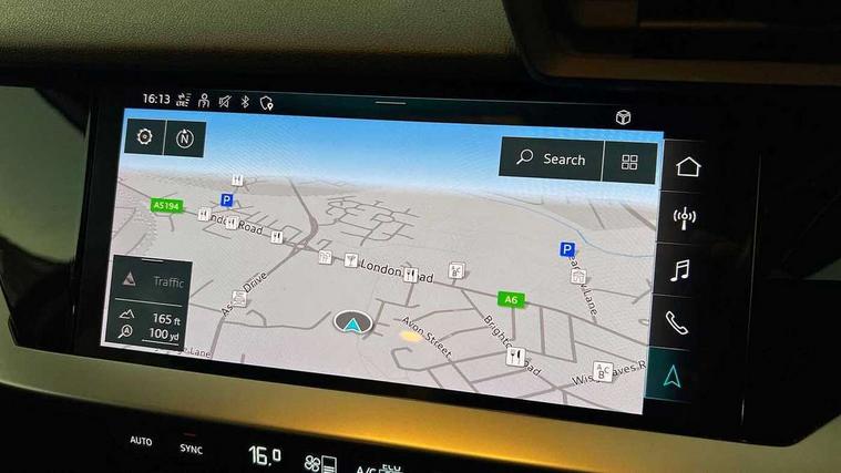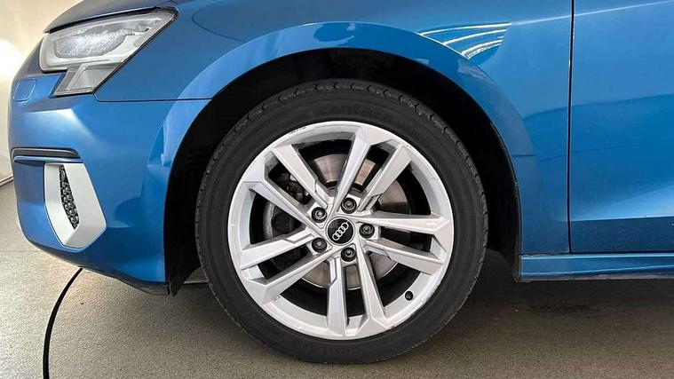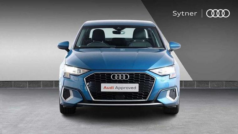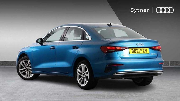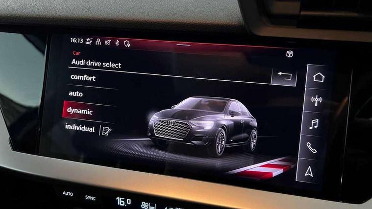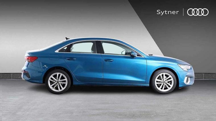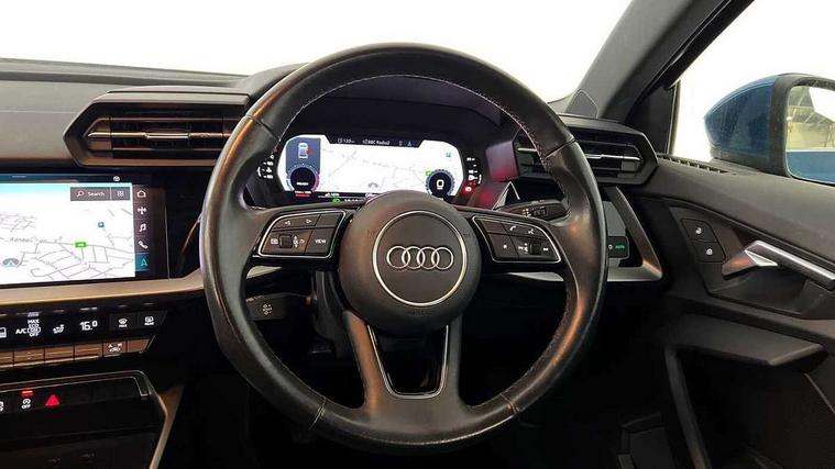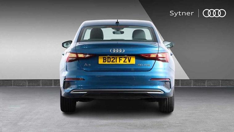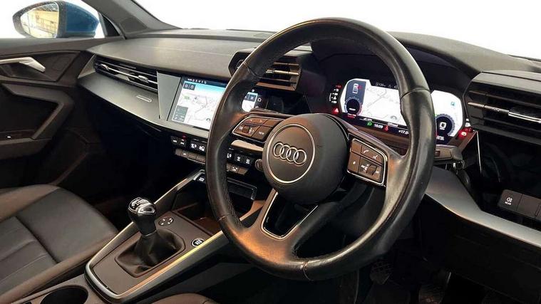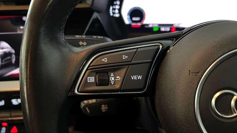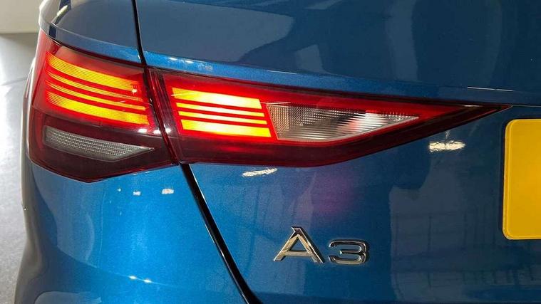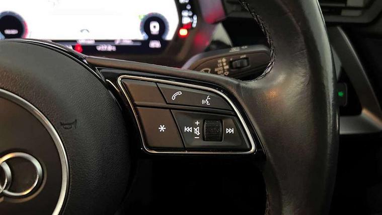 Audi connect emergency call and service, Audi drive select (Auto, Comfort, Dynamic and Individual), Audi smartphone interface, Audi Virtual Cockpit - 10.25" digital and colour instrument cluster, Automatic start/stop system with recuperation, Bluetooth interface, Collision avoidance assistant, Cruise control + speed limiter, Electromechanical power speed sensitive steering, Lane departure warning system, MMI Navigation Plus with high resolution 10.1" colour touch screen display, Rear parking sensors, Service indicator, Voice control system with natural language interaction, Standard suspension, 2x USB Type C ports (for charging and data transfer), 6 passive loudspeakers, CD player, DAB Digital radio, Acoustic glass windscreen, Aluminium window trim, Auto dimming frameless rear view mirror, Body colour exterior mirrors, Body colour roof spoiler, Electrically adjustable/heated/folding/auto dimming door mirrors with integrated LED indications + kerb view function for passenger side, Front electric windows, LED daytime running lights, LED headlights and halogen rear lights, Light and rain sensors, Model and engine designation badges at rear, Rear electric windows, Rear window, rear door windows and rear side windows in clear glass, 12V socket and storage compartment in front centre console, 40/20/40 split folding rear seat bench with cupholder, Dual zone electronic climate control, Front and rear headrests, Front centre armrest, Front door sill trims with aluminium inlay, Front/rear floor mats, Height and reach adjustable steering wheel, Interior lighting - Front and rear roof module including reading lights, glove compartment light and right hand side, Luggage compartment floor covering, Manual boot compartment lid, Manually adjustable front seats, Seat side bolsters, Steel grey cloth headlining, Twin leather upholstery, Aluminium interior elements pack - A3, Sport styling pack - A3 Saloon, 3x3 point rear seat belts, Driver and front passenger airbag with passenger airbag deactivation, Electronic Stabilisation Control (ESC) including ABS, ASR and EDL, First aid kit with warning triangle and 2 safety vests, Front side airbags with head airbags and interaction airbag, Hill hold assist, Pre-sense front with pedestrian and cyclist detection, Seatbelt monitoring, Tyre pressure loss indicator, Anti theft alarm, Anti-theft wheel bolts, Electronically operated child lock, Immobiliser, Remote control central locking, Aluminium air vent surrounds, Aluminium trim elements, Inlays with silk effect paint in platinum grey,