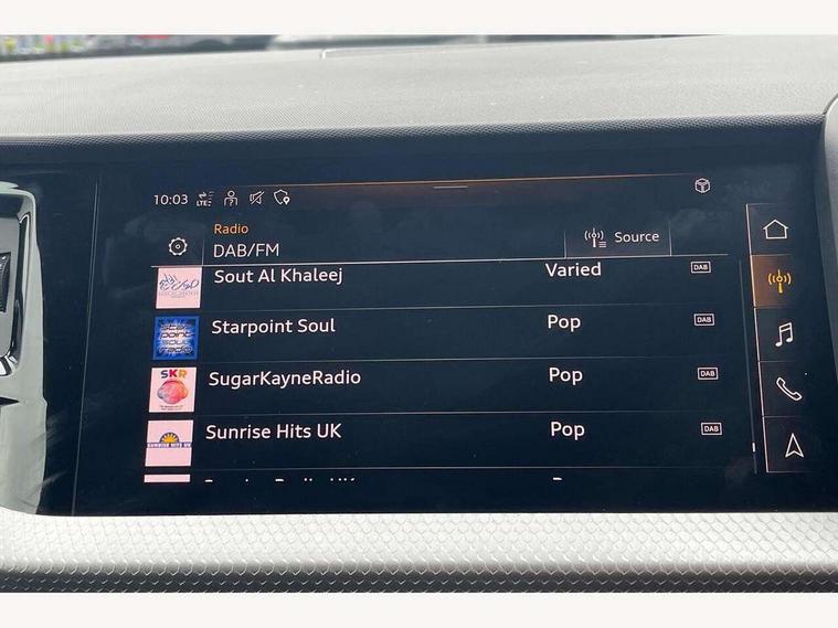 10.25" Digital instrument cluster display classis style instrument dials + speed, odometer, time, outside temperature, telephone menu + fuel level warning, Advanced driver attention and drowsiness monitor, Audi connect emergency call and service, Audi remote connect and control, Audi smartphone interface, Bluetooth interface, Camera based traffic sign recognition, Cruise control, Driver's information system, Electromechanical power steering, Lane departure warning system, Rear parking sensor, Service interval indicator, Speed limiter, Start stop system with recuperation, Voice control system, Washer fluid level indicator, Sports suspension, 2 x USB type C connection points, 6 loudspeakers, DAB Digital radio, MMI radio plus with 10.1" colour MMI display screen and MMI touch, Auto dimming rear view mirror, Body coloured door mirrors, Door sill trims with aluminium inlays and S line logo in front, Electric front and rear windows, Electrically adjustable, heated, folding door mirrors with integrated LED side indicator, Front side air inlets in grained matt black and C frame in anthracite black, Headlight cleaning system, Heat insulating glass windscreen and side windows, Heated rear windscreen, High level LED brake light, LED daytime running lights, LED headlights with range control LED rear lights + dynamic rear indicators, Light and rain sensors, Privacy glass, Radiator grille and rear diffuser in matt anthracite black, Radiator protective grille frame in matt aluminium silver, Rear fog lights, Rear side wing doors, Rear wiper, S line badges on front wings, Side front spoiler lips in grained matt black, 12V socket in centre console with two cup holders, 3 rear seats with headrests, 3 seat bench in 2nd row, 3 spoke leather multi-function plus steering wheel features S badging and grips in perforated leather with contrast stitching, 40:60 Split folding rear seat or fully collapsed, Black cloth headlining, Front and rear velour black floor mats with contrast stitching in fine silver, Front head restraints, Front passenger seat, Height and reach adjustable steering wheel, Interior lighting includes roof module, front and rear reading lights and right luggage compartment lighting, ISOFIX child seat mounting for front passenger and outer rear seats including top tether attachment point of outer rear seats, Leather gear knob with aluminium trim, Leather handbrake grip, Manual air conditioning, Manual height adjustable for driver and front passenger seat, Manually adjustable lumbar support in front seats, Stainless steel pedals, Ambient lighting package - A1, Luggage compartment pack - A1, S line exterior styling pack - A1 Sportback, 3x3 point rear seatbelts, Audi pre-sense front with pedestrain and cyclist recognition, Brake assist function, Driver and front passenger airbag with front side and head airbags, Electronic Stability Control including ABS, EBD, ASR and EDL, Front passenger airbag deactivation switch, Hill hold assist, Manual rear child locks, Seatbelt height adjustment for front seats, Seatbelt monitoring, Tyre pressure loss indicator, Warning triangle and first aid kit, Anti theft alarm, Anti theft wheel bolts, Immobiliser, Remote control key with safelock, Aluminium trim for control switches, air vents and digital instrument cluster, Black dashboard, Silver grey inlays polygon structure in diamond paint finish, Structured grey accent surfaces insert of air vents, interior door handle recesses and centre console in quartz paint finish,