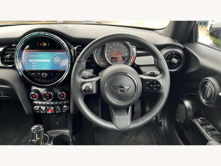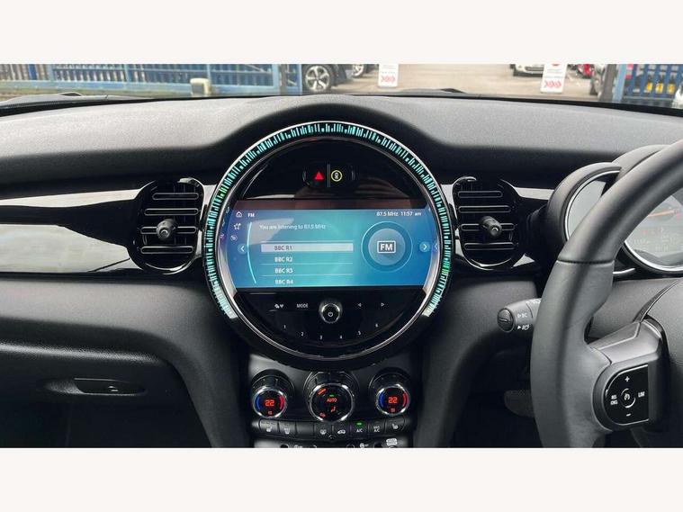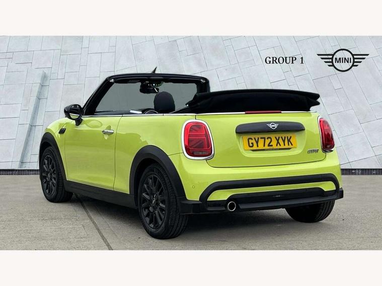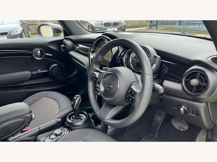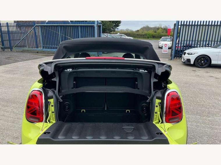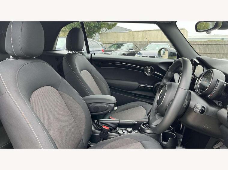 Apple CarPlay, Automatic start/stop function with brake energy recuperation, Compatible mobile phone bluetooth with audio streaming, Cruise control with brake assist, Electro-mechanical speed dependant steering assistance, Instrument cluster, Mini E-call, MINI TeleServices, On board computer, Rear park distance control, Service interval indicator, Double Vanos system, Fully variable valve control, High precision injection, Performance Control, Steptronic transmission with double clutch, FM tuner and DAB digital radio, Automatic headlight activation switch, Body colour fuel filler cap, Chrome border high gloss black slats radiator grille, Dynamic brake lights, Electric windows, Fully electric black softtop with integrated sunroof functionality, Heated rear window, Heated windscreen washer jets, LED headlight with closed ring and daytime driving lights, Left exhaust tailpipe with chrome finisher, Metal door sill strips with MINI imprint, Model logo Cooper on right of tailgate, Rain sensor window wipers, Rear boot, Rear fog lights, Rear LED lights with union jack design, Side scuttle panel with integrated indicator, Sun/heat protection glass, Third brake light, White indicator lenses, 12V Accessory socket in centre console, 2 seat bench in 2nd row, 4 lashing eyes in luggage compartment, 50/50 split folding rear seats, Chrome interior highlights, Colour line - Carbon black, Cupholders, Easy Load boot handles, Front and rear head restraints, Front and rear isofix with front passenger airbag deactivation, Glove compartment, Height and length steering column adjustment, Interior lighting with 12 different colours running across the dashboard, underneath door bezel illuminated laser engraved design on central display, Leather gearshift lever and handbrake gaiters, LED reading lights, vanity mirror lights, front foot well light and spotlight on front seats, Manual air conditioning, Mechanical seat adjustment, driver seat height adjust, forward/back and front seats backrest, Multifunction steering wheel, Single front passenger seat, Sports steering wheel, Storage compartments in doors, Sunvisors with vanity mirrors, Three spoke steering wheel with speed limiter and audio/communication controls, Velour floor mats, Convertible pack with comfort access - Mini Convertible, Navigation pack without Apple car play - Mini Convertible, 3 point seatbelts on all four seats, 6 Airbags - front, side and seat belt tensioners, Active rollover protection, Anti-lock braking system (ABS), DSC - Dynamic Stability Control, Front and rear disc brakes, Hill start assist, Single tone fanfare horn, Tyre pressure monitoring system, Alarm system with tilt sensor, monitoring doors, bonnet interior and tailgate, Electronic vehicle immobiliser, Keyless Go, Piano black interior trim, Tool kit, Tyre repair kit,