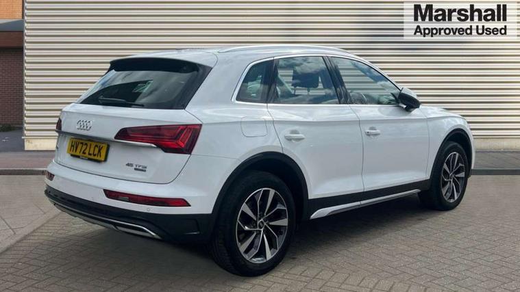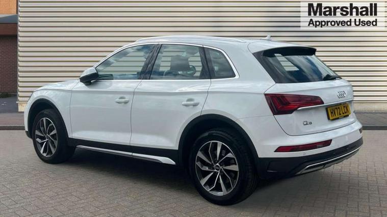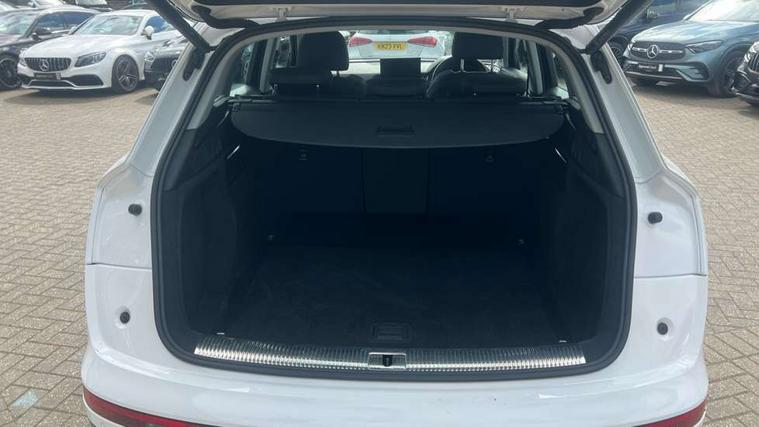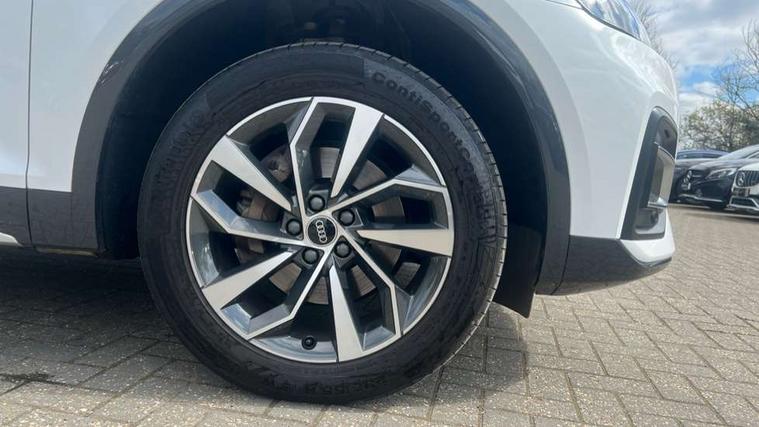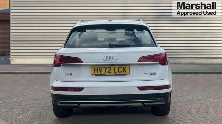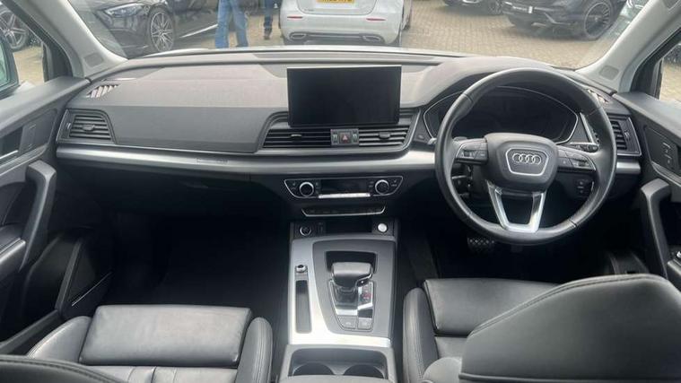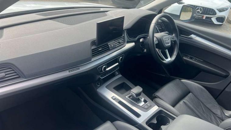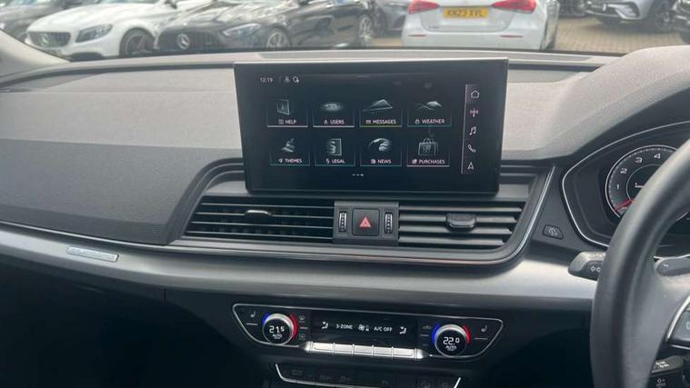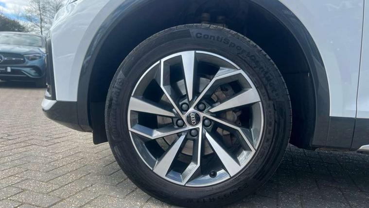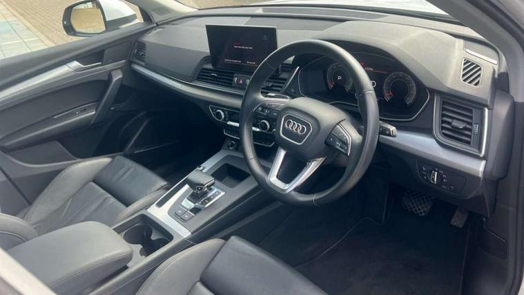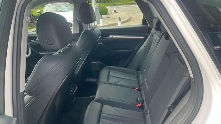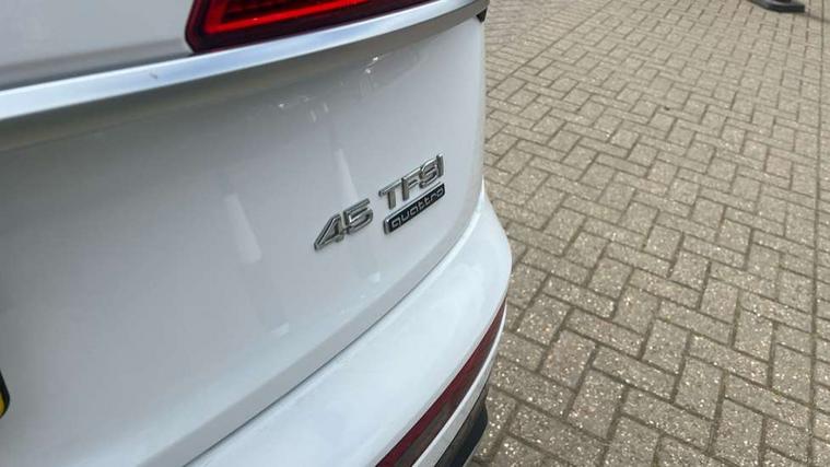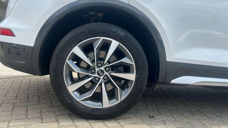 Audi connect safety and service (e-call), Audi connect with Amazon Alexa Integration, Audi drive select, Audi virtual cockpit plus with 12.3" screen and three different layout designs, Audi wireless smartphone interface, Automatic start-stop system with coasting functionality and efficiency programme, Bluetooth interface, Cruise control + speed limiter, Electro - mechanical power assisted steering, MMI navigation plus with 10.1" touch screen, Power tailgate, Reversing camera, Service interval indicator, Voice control system with Audi hotword activation "Hey Audi", Dynamic suspension, Quattro on demand, DAB Digital radio, 3rd brake light, Acoustic windscreen, Air inlets in matt titanium black with blades in matt aluminium silver, Aluminium roof rails, Auto dimming door mirrors, Auto dimming rear view mirror, Automatic headlight adjustment, Automatic headlights and windscreen wipers, Body colour bumpers, Body colour door mirrors, Chrome plated exhaust trims, Daytime running lights, Door sills in Selenite silver, Electric adjustable/heated/folding door mirrors, Front and rear electric windows, LED headlights and LED tail lights, Lower bumpers painted in contrast Manhattan grey, Matt selenite silver underbody protection, Matt twilight grey radiator grille with chrome vertical struts, Rear chrome trim strip below lights, Rear diffuser strip in selenite silver, Rear side wing doors, Rear spoiler, Rear wiper, Roof bars, 2 x USB charging port with aux input socket, 3 rear headrests, 3 spoke multifunction leather steering wheel with shift paddles, 40:20:40 split folding 3 rear bench seat in 2nd row with rear centre armrest, Comfort front centre armrest, Deluxe 3 zone electronic climate control, Door sills trims with aluminium inlays, Front/rear floor mats, Heated front seats, Height adjustable front head restraints, Height/reach adjustable steering column, ISOFIX child seat mounting and top tether, Luggage compartment cover, Manual seat adjustment with 4-way electric lumbar support, Removable luggage compartment floor, Silver cloth headlining, Single front passenger seat, Sunvisors with vanity mirrors, Twin leather upholstery + front sports seats, High gloss pack - Q5, LED interior light pack - Q5, 3 point seatbelts on all seats, 6 airbags - Driver, front passenger, curtain and side airbags, Electrically operated child locks on rear doors, Electromechanical parking brake, Electronic stabilisation control including ABS, ASR and EDL, Front passenger airbag deactivation, Hill descent control, Hill hold assist, Multi collision brake assist, Pop-up bonnet for pedestrian protection, Pre sense city, Seat belt force limiter, Seatbelt monitoring, Tyre pressure warning, Warning triangle and first aid kit, Anti theft alarm, Anti-theft wheel bolts, Keyless Go access/ignition system, Remote central locking, Aluminium rhombus inlay,