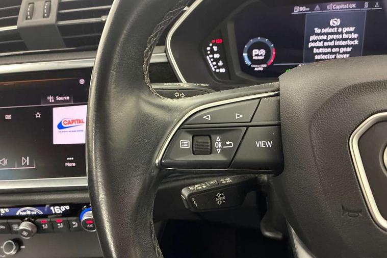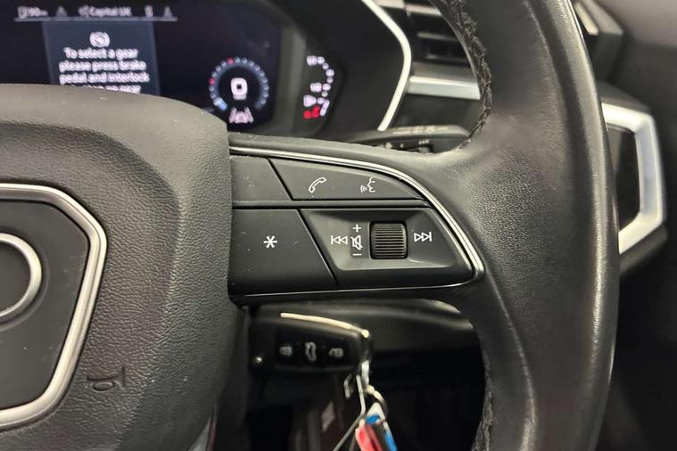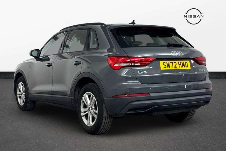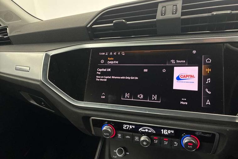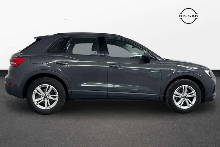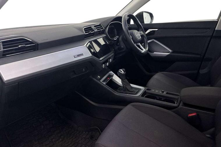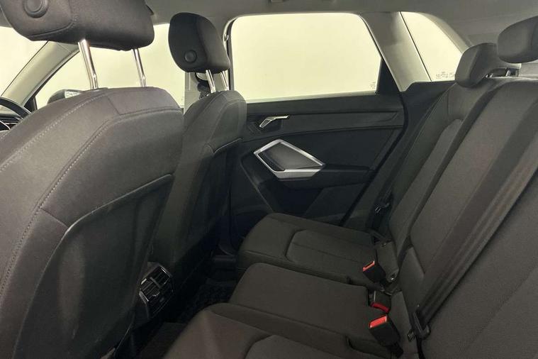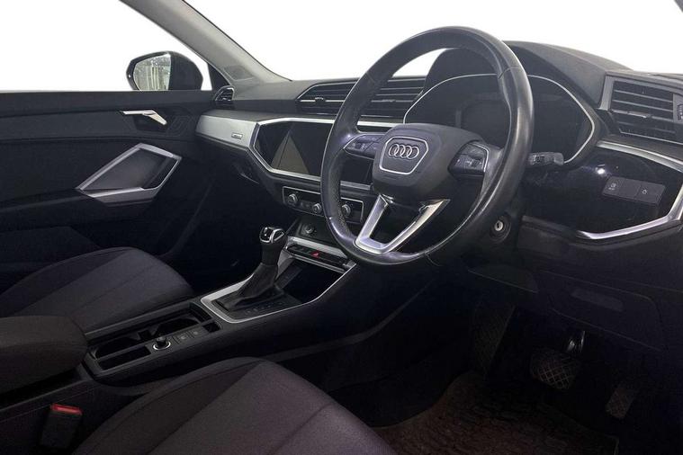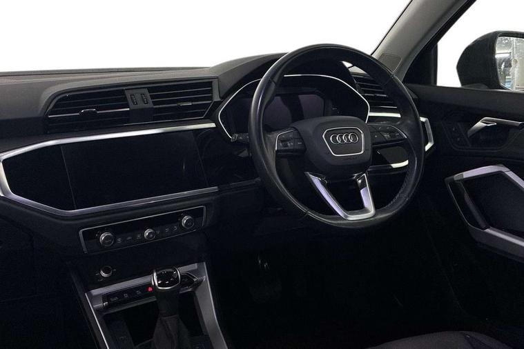 Amazon alexa Integration, Audi drive select, Audi lane departure warning, Audi Virtual Cockpit - 10.25" display, Bluetooth interface, Camera based traffic sign recognition, Legal emergency call, MMI Navigation Plus with high resolution 10.1 inch touchscreen colour display, Power operated tailgate, Progressive steering, Service interval indicator, Smartphone interface includes wireless Apple carplay/Android Auto, Start stop system with recuperation, Voice control system with natural language interaction, Standard suspension, 2 USB-C ports with charge and data functions, 6 passive loudspeakers, DAB digital radio module, Acoustic windscreen, Auto dimming frameless rear view mirror, Black roof rails, Body colour door mirrors, Diffuser in grained anthracite, Electrically folding, adjustable and heated door mirrors with integrated LED side indicators and kerb view function for passenger side, Exterior bumper with wheel arch trims and side sill trims in grained black matt, Front and rear electric windows, Grained radiator protective grille, Halogen rear lights, LED headlights with LED daytime running lights, Rain and light sensors, Rear side wing doors, Rear wiper, Third brake light, Variable front intermittent wipers, 12V socket in rear centre console, 3 seat bench in 2nd row, 3 spoke multi-function leather steering wheel, 40:20:40 folding with manual adjustment for 60:40 forwards/backwards position and backrest angle, Dual zone electronic climate control, Front and rear floor mats, Front and rear headrests, Front and rear roof module including reading lights, Front centre armrest, Glove compartment lighting, Height and reach adjustable steering wheel, ISOFIX child seat mounting for front passenger with airbag deactivation and outer rear seat including top tether attachment point for outer rear seats, Luggage compartment light, Lunar silver cloth headlining, Manual front seats with height adjustment, Single front passenger seat, Stainless steel luggage compartment sill finisher, Non smoking pack - Q3, 3x3 point rear seatbelts, 6 airbags - Driver, front passenger, curtain and side windows, Audi pre-sense front with pedestrain and cyclist recognition, Electrically operated child locks on rear doors, Electromechanical parking brake, Electronic stabilisation control including ABS, ASR and EDL, Front seatbelt reminder, Hill descent control, Hill hold assist, Pre sense basic, Seatbelt monitoring, Tyre pressure warning, Warning triangle and first aid kit, Anti theft alarm, Anti theft wheel bolts, Immobiliser, Remote central locking, Detail dashboard around MMI touch colour display in glass look, black with surround in aluminium look, Micrometallic silver inlay, 17" 5 twin spoke design alloy wheels,