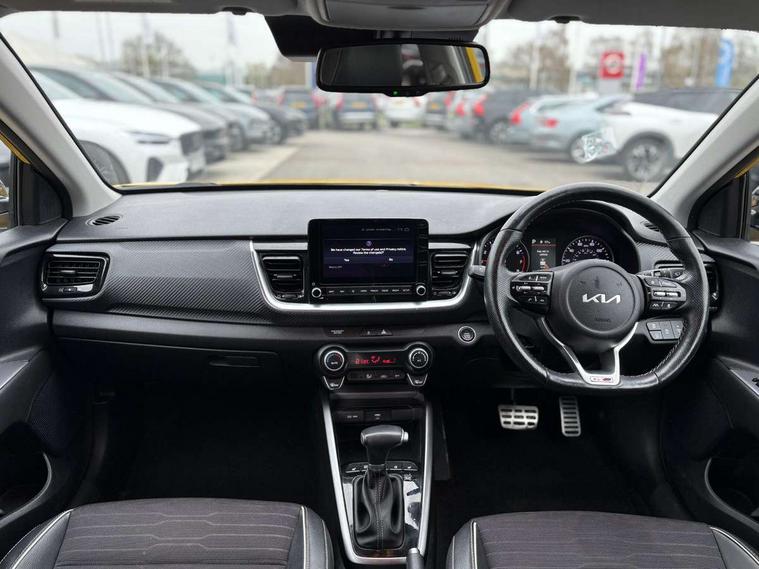 4.2" supervision colour cluster display, 8" touchscreen navigation, Apple car play/Android Auto with voice control, Blind spot collision avoidance assist, Blind spot collision warning, Drive mode selector, Electric power steering, Emergency call service, Emergency stop signalling system, External temperature display, Forward Collision-Avoidance Assist (FCA) - City/Pedestrian/Cyclist, Front parking sensors, Intelligent speed limit warning, Lane keeping assist system (LKAS), Driver attention warning (DAW) and High beam assist (HBA), Rear parking sensor, Reversing camera system, Smart cruise control, Trip computer, Intelligent Stop and Go, Audio system with 6 speakers, Bluetooth with music streaming, Front USB port, Steering wheel mounted controls, All round electric windows with drivers auto up/down function, Auto dimming rear view mirror, Automatic defog system, Automatic headlights control, Black side sill, door garnish and wheel arch trims, Black/body colour bumpers, Body coloured exterior door handles, Chrome side window trim, Electrically adjustable/heated/folding door mirrors with LED indicators, Front and rear silver skid plates, Gloss black door mirrors with matt black lower housing, GT-Line body kit, Headlight levelling device, Heated rear window, High gloss black and satin radiator grille, LED Bi-function projection headlights with static bending, LED daytime running lights, LED front fog lights, LED position light, LED rear combination lights, Privacy glass - Rear windows and tailgate, Rain sensing front wipers, Rear fog lights, Rear side wing doors, Rear wash/wipe, Roof coloured rear spoiler with high mounted braking light, Roof rails, Shark fin antenna, Solar windshield glass, Speed variable front aeroblade wipers, Tinted glass, Welcome and follow-me home light functionality, Windscreen Washer Level Warning, 12V power point front, 3 seat bench in 2nd row, 60/40 split folding rear seat, Air filter, All-round height adjustable headrests, Aluminium pedals, Automatic air conditioning, Centre armrest storage box, Centre console with cupholders, D-Cut perforated leather trimmed steering wheel, Dash illumination dimmer switch, Driver's seat height adjuster, Front and centre cabin lights, Front and rear door map pockets with bottle holder, Gear shift indicator, Glovebox illumination, GT-Line cloth/faux leather upholstery, Heated front seats, Heated steering wheel, ISOFIX Child seat top tethers and anchor fixings outer rear seats, Leather trimmed gearshift, Luggage area light, Luggage area parcel shelf, Luggage net, Luggage net with hooks, Overhead console lamp, Overhead console with sunglasses cases, Passenger front seatback pockets, Passenger seat height adjuster, Rear USB charging port, Satin chrome interior door handles, Single front passenger seat, Sunvisors with vanity mirror illumination (Driver and front passenger), Tilt/telescopic adjustable steering wheel, ABS with Electronic Brakeforce Distribution (EBD) and Brake Assist System (BAS), All round 3-point seatbelts, Electronic stability control (ESC) and vehicle stability management (VSM), Front passenger airbag cut-off switch, Front seatbelt pretensioners + load limiters, Height adjustable front seatbelts, Hill start assist control (HAC), Impact sensing auto door unlocking, Manual child lock in rear doors, Rear seat Occupancy alert, Seatbelt reminder warning, Twin curtain airbags, Twin front airbags, Twin front side airbags, Tyre pressure monitoring system, Alarm system, Door deadlocks, Engine immobiliser, Locking wheel nuts, Smart key with engine start/stop button, Speed sensitive auto door locking, Visible vehicle identification number, High gloss black centre fascia, 17" GT-Line alloy wheels, Tyre mobility kit,