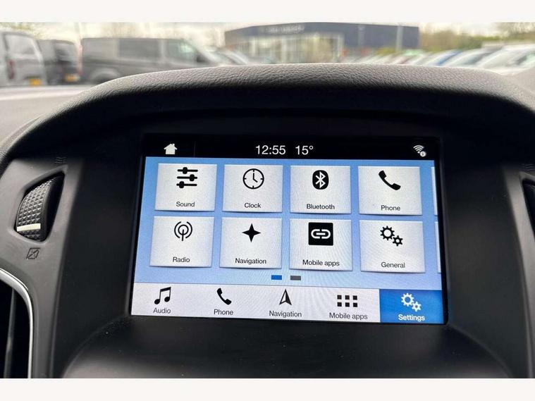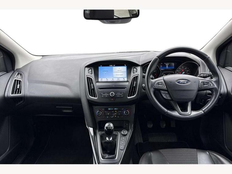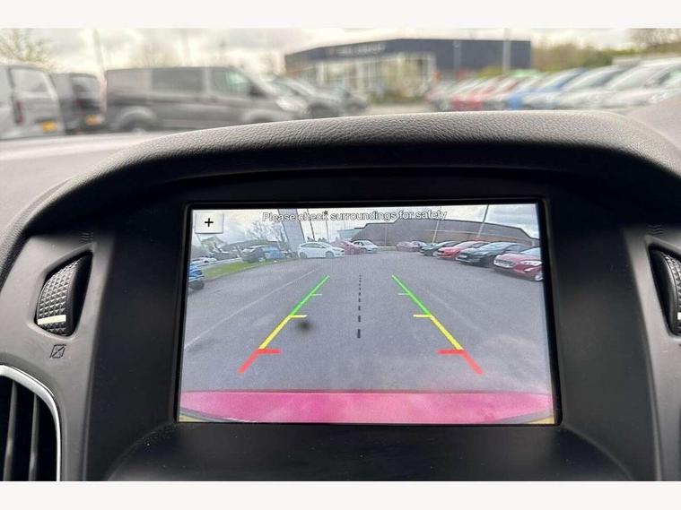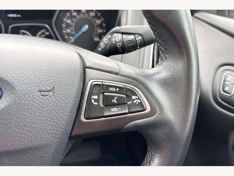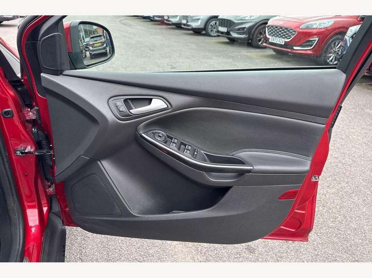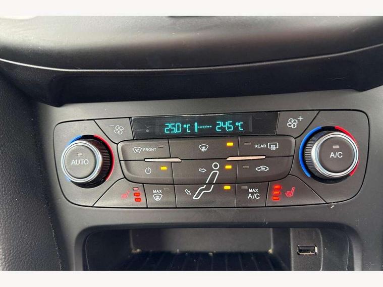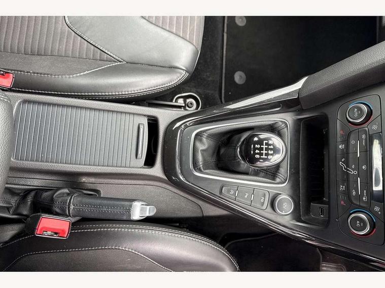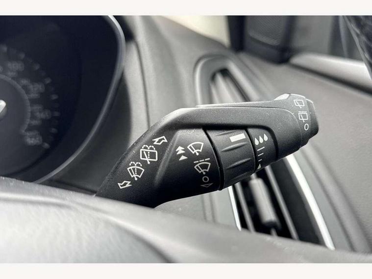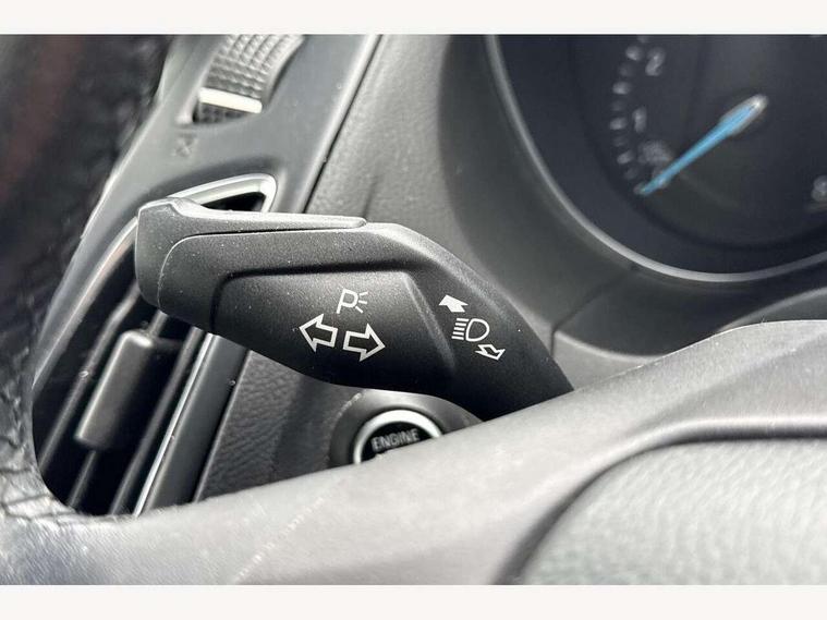 Cruise control + speed limiter, Digital clock, Easy fuel capless refuelling system, Eco mode, Electric boot release, Front and rear parking sensors, Park assist system with steering assist, PAS, Rear view camera, TFT cluster screen, Trip computer, 6 speakers, Aux input, Steering column with mounted audio controls, SYNC 2 DAB radio/CD, 8" colour touch screen, emergency assistance, Bluetooth connection, advanced voice control, USB connection, 'Quickclear' heated windscreen/heated washer jets, Adaptive front lighting system, Auto dimming rear view mirror, Automatic headlights, Automatic rain sensing wipers, Bi-Xenon headlights and headlight washers, Body colour bumpers, Body colour door handles, Body colour door mirrors, Body colour rear spoiler, Chrome finish on upper door line, Chrome radiator grille and surround, Electric adjustable heated door mirrors, Front fog lights, Front variable intermittent wipers with electric wash, Heated rear window, LED daytime running lights, Tailgate wash/wipe, 3 spoke leather steering wheel, 60/40 split back and cushion rear seats with 2 height adjustable headrests, Advanced multicolour ambient light and LED interior light, Centre console storage box/armrest, Driver's seat electric height adjustment, Driver's seat with adjustable lumbar support, Dual electronic automatic temperature control air conditioning - CFC-free, Height adjustable front headrests, Isofix child seat preparation, Passenger seat height/lumbar adjustment, Reach + rake adjustable steering column, Sports style front seats, ABS+Electronic Brake force Distribution, Active city stop, Driver airbag, ESP with traction control + emergency brake assist, Front inertia reel height adjustable seatbelts with pre-tensioners, Front passenger airbag, Front side airbags, Hill start assist, Side curtain airbags, Three rear inertia reel lap/diagonal seatbelts, Torque vectoring brake, Tyre pressure monitoring system, Immobiliser-Passive Anti-Theft System (PATS), Key free system, MyKey system, Remote central double locking, Thatcham Cat.1 alarm, Mini steel spare wheel,