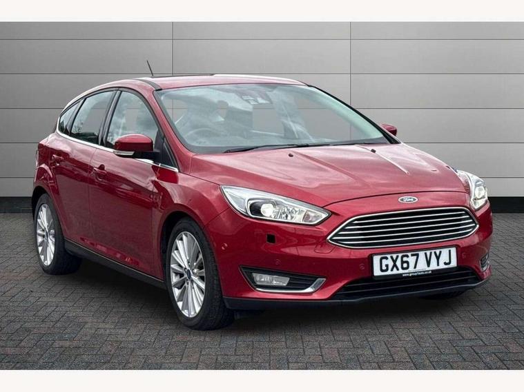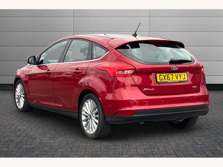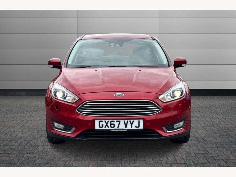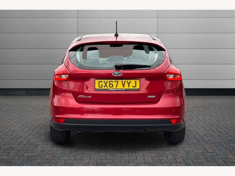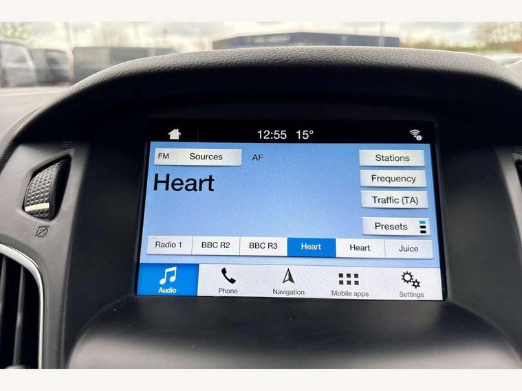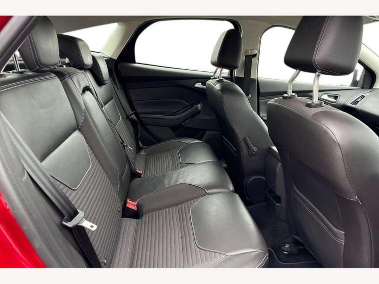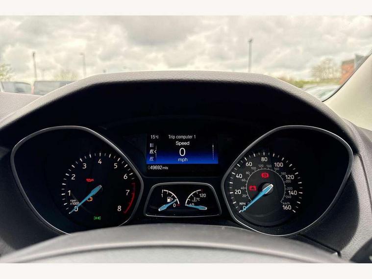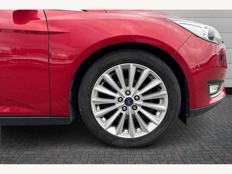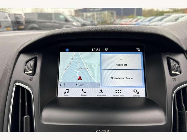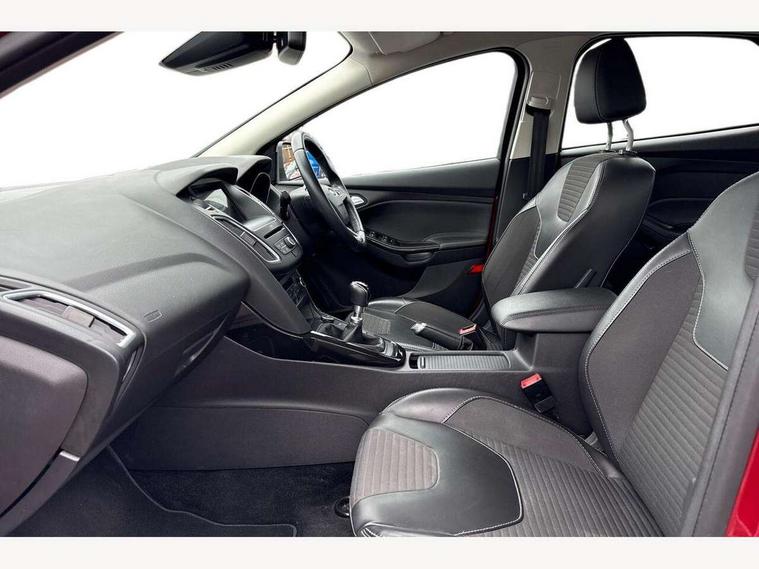 Cruise control + speed limiter, Digital clock, Easy fuel capless refuelling system, Eco mode, Electric boot release, Front and rear parking sensors, Park assist system with steering assist, PAS, Rear view camera, TFT cluster screen, Trip computer, 6 speakers, Aux input, Steering column with mounted audio controls, SYNC 2 DAB radio/CD, 8" colour touch screen, emergency assistance, Bluetooth connection, advanced voice control, USB connection, 'Quickclear' heated windscreen/heated washer jets, Adaptive front lighting system, Auto dimming rear view mirror, Automatic headlights, Automatic rain sensing wipers, Bi-Xenon headlights and headlight washers, Body colour bumpers, Body colour door handles, Body colour door mirrors, Body colour rear spoiler, Chrome finish on upper door line, Chrome radiator grille and surround, Electric adjustable heated door mirrors, Front fog lights, Front variable intermittent wipers with electric wash, Heated rear window, LED daytime running lights, Tailgate wash/wipe, 3 spoke leather steering wheel, 60/40 split back and cushion rear seats with 2 height adjustable headrests, Advanced multicolour ambient light and LED interior light, Centre console storage box/armrest, Driver's seat electric height adjustment, Driver's seat with adjustable lumbar support, Dual electronic automatic temperature control air conditioning - CFC-free, Height adjustable front headrests, Isofix child seat preparation, Passenger seat height/lumbar adjustment, Reach + rake adjustable steering column, Sports style front seats, ABS+Electronic Brake force Distribution, Active city stop, Driver airbag, ESP with traction control + emergency brake assist, Front inertia reel height adjustable seatbelts with pre-tensioners, Front passenger airbag, Front side airbags, Hill start assist, Side curtain airbags, Three rear inertia reel lap/diagonal seatbelts, Torque vectoring brake, Tyre pressure monitoring system, Immobiliser-Passive Anti-Theft System (PATS), Key free system, MyKey system, Remote central double locking, Thatcham Cat.1 alarm, Mini steel spare wheel,