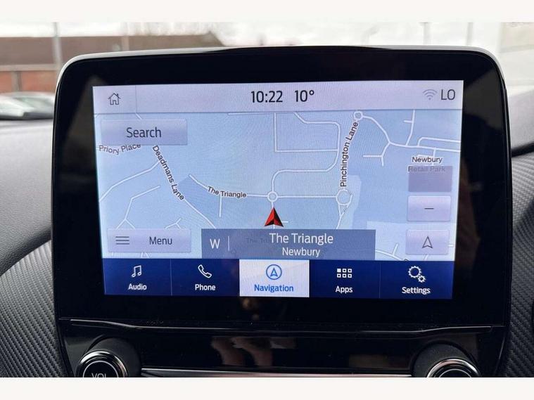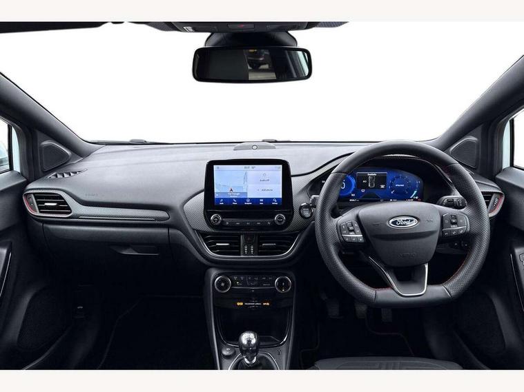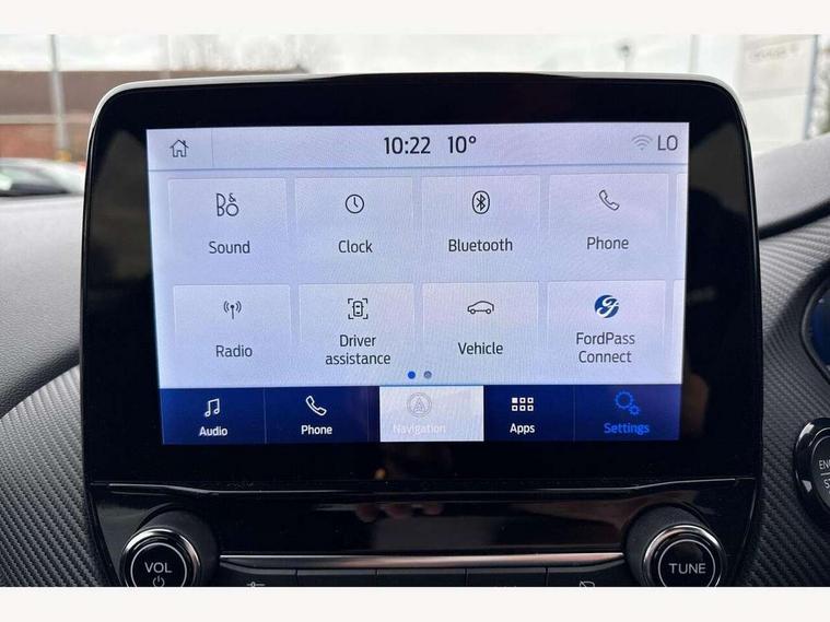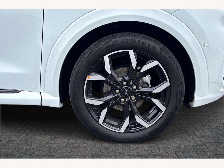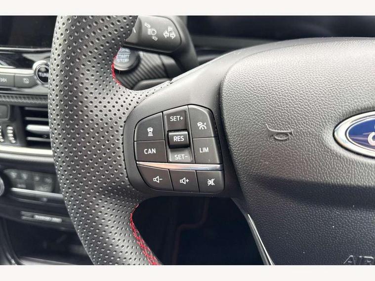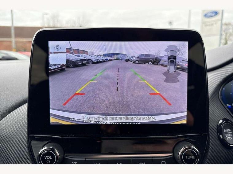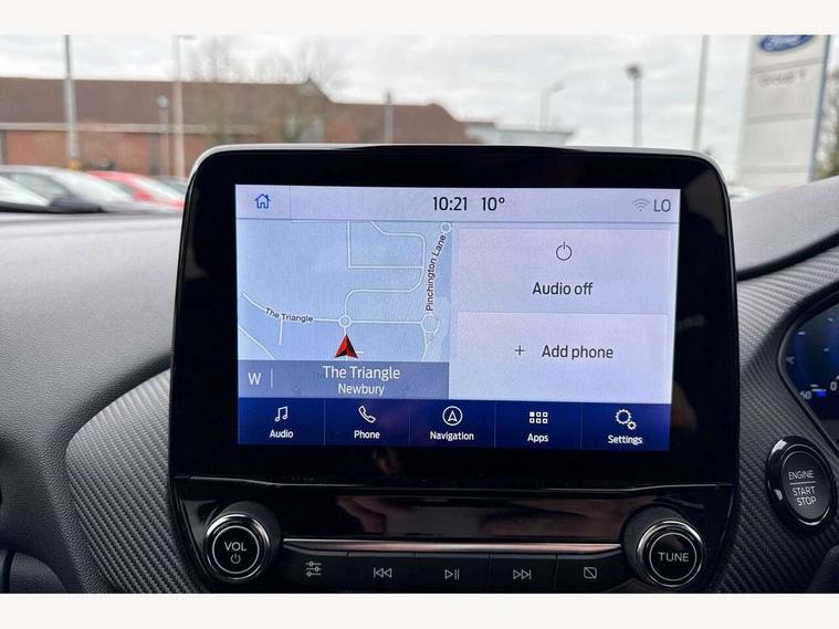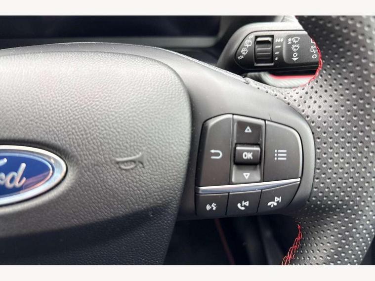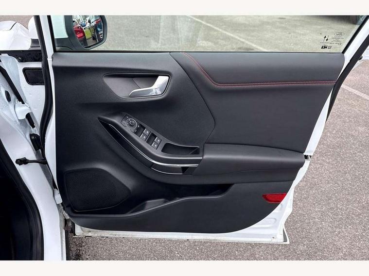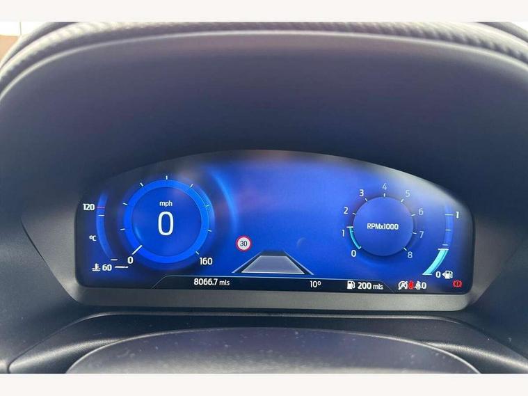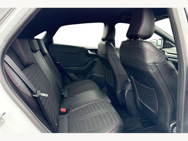 Driver impairment monitor, Emergency call service, Ford easy fuel, Full digital 12.3" instrument cluster, Lane keeping aid with lane departure warning, Power assist steering, Power start button, Rear parking sensor, Selectable drive modes(Normal, Eco, Sport, Slippery and Trail), Speed sign recognition, Sport suspension, Automatic headlights with auto high beam, Automatic rain sensing wipers, Front fog lamps, LED daytime running lights, LED rear lamps, Power foldable heated door mirrors with puddle lamps, Privacy glass to side rear windows and tailgate glass, Quickclear heated windscreen, Rear side wing doors, Rear wiper, ST-Line body styling kit with unique grille, Third brake light, 3 seat bench in 2nd row, Centre console with armrest and stowage, Ford megabox extended bootspace, Front and rear head restraints, Front floor mats, Manual 4 way driver seat adjust with lumbar adjustment, Manual 4 way passenger seat with lumbar seat adjustment, Sensico partial premium upholstery, Single front passenger seat, ST-Line flat bottomed sensico leather steering wheel with leather handbrake and aluminium gear knob, Wireless charging pad with electronic air temperature control (EATC), B&O Premium Audio system + Ford SYNC 3 navigation pack - Puma, 3 rear seatbelts, Child safety lock, Electronic stability control (ESC) and hill start assist, Pedestrian/cyclist detection & post-collision braking, Pre collision assist system, Tyre pressure monitoring system (TPMS), Thatcham alarm, Carbon look interior deco spears,