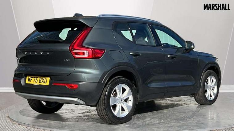 12.3" Progressive Driver Display, 9" centre console portrait touch screen, Adaptive cruise control, Adjustable steering wheel force, Android auto (Wired), Apple carplay (wired), Bluetooth handsfree system, Driver alert control, E-call, Front and rear parking sensors, Google automotive services - Enabled entertainment apps, navigation with google maps, voice recognition with google assistant, Intelligent speed assistance, Lane keeping aid, Oncoming Lane Mitigation, Power operated tailgate, Speed sensitive steering, Volvo cars services with app - Driving journal, engine remote start, remote door locking/unlocking and vehicle dashboard, Wireless/Inductive Mobile Phone Charging, Automatic transmission with start/stop and manual change functions, Dynamic chassis, DAB Digital radio, High performance sound, 8 speakers/250W, 2 front type C and 2 rear type C USB, Steering wheel mounted remote controls, Adaptive brake lights with high level LED brake lights, Auto dimming interior mirror, Auto folding and heated power door mirrors, Automatic headlamp levelling, Automatic LED Headlights + Active high beam incorporating daytime running lights, Colour coordinated door mirrors, Dark grey front grille with chrome surround, Front and rear electric windows, High Gloss silver front and rear skid plate, Home safe and approach lighting, Integrated roof rails in silver, Rain sensor with automatic windscreen wiper activation, Rear side wing doors, Rear wiper, Roof antenna, Roof spoiler, Visible VIN plate, 12V socket in front tunnel console and luggage compartment, 2-Zone electronic climate control with CleanZone air quality system and pollen filter, 3 seat bench in 2nd row, 3 Spoke tailored steering wheel with chrome trim, 60/40 versatile split folding rear seat, Centre console cupholders and storage, Charcoal carpet and floor mats, Charcoal headlining, City block textile upholstery, Front headrests, Glovebox bag hook, Heated front seats, Height adjustable passenger seat, Height/reach adjustable steering column, Height/tilt adjustable driver's seat, Integrated waste bin, Isofix attachments on outer rear seats, Load cover, Load protection net, Mid level illumination - Front footwell, luggage & glovebox compartment, front cabin courtesy & reading lights, illuminated vanity mirrors+ticket holder, Multi directional lumbar support for driver and passenger seat, Rear armrest with cupholders, Rear headrests, Single front passenger seat, Underfloor luggage compartment storage, 3x3 point rear seatbelts, City safety with steering support with Pedestrian + cyclist + front collision warning with full auto brake and rear auto brake, Driver and passenger airbags, Drivers knee airbag, Electronic parking brake with auto hold, First aid kit, Front and outer rear seatbelt reminder and pretensioners, Front seats SIPS airbags, Hill descent control - Off-road drive mode, Hill start assist, IC (Inflatable Curtains) - Full Length, Passenger airbag cut-off device, Power child locks on rear doors, Road sign information display, Run off Road Protection, SIPS (Side Impact Protection System), Slippery road and hazard light alert, Stability and Traction Control with Spin control, Engine Drag Control and Corner Traction Control, Tyre pressure monitoring system, Vehicle deceleration control with Anti-lock Brake System, Electronic Brake Distribution and Emergency Brake Assist, Warning triangle, WHIPS whiplash protection system - front, 2 x Key integrated remote control central locking including with deadlocking system and auto open/close windows, Anti-theft alarm including immobiliser/volume sensor + level sensor, Keyless start, Locking wheel nuts,